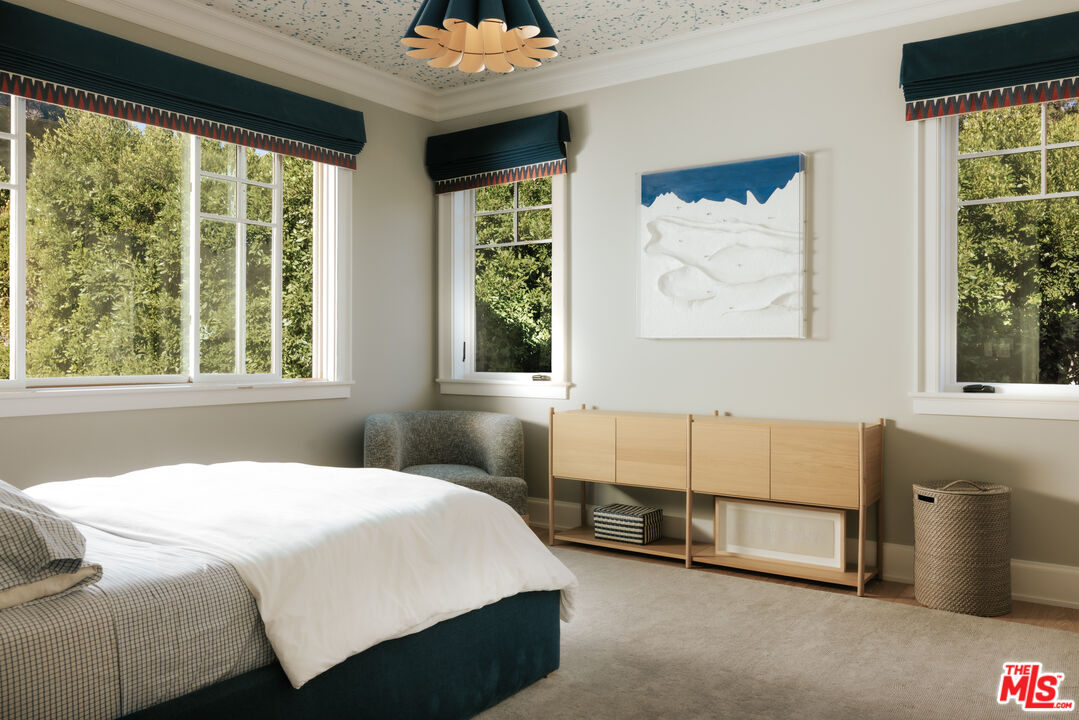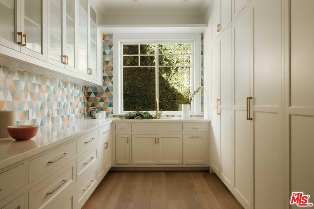 Nestled in the coveted enclave of Lower Mandeville Canyon, there is a quiet kind of prestige where both serenity and privacy are uniquely yours to experience. This elevated compound situated on nearly one acre offers expansive grounds with two large flat grassy areas for relaxation and play, a sports court, and stunning pool with spa. The main residence that was designed in collaboration with interior design firm, Maurice Gadson Design, reflects a beautiful balance of elevated design, warmth, and craftsmanship. The main level offers one guest bedroom with five additional bedrooms on the second floor. At the heart of the home, the dramatic living room and kitchen rise with soaring ceilings and open effortlessly to the gardens beyond, creating a seamless dialogue between indoors and out. A custom wood-paneled media room and secondary family room offer space designed for both comfort and versatility. Throughout the home, every element has been thoughtfully curated: Samuel Heath and Waterworks fixtures, vintage French lighting, textiles by Holly Hunt, Thomas Lavin, and Schumacher, Missoni runners, Calcutta stone, bespoke millwork, and striking Christian Lacroix wallpaper. These layers of texture speak to a home of substance where quality construction meets authentic character. Outdoors, an inviting entertaining space with outdoor kitchen, fireplace and dining area overlook your very own vineyard. Tucked away at the end of the garden is a lovely pool house for work, entertaining or rest. Boca de Canon is not simply a property, but a rare and irreplaceable setting. We welcome you to come and visit!