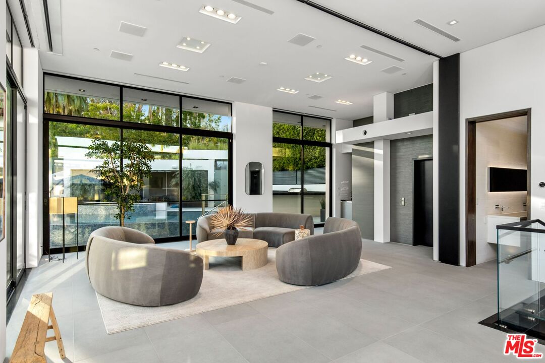 Have it all in this architectural Bird Streets compound that is set behind gates and floating just above the buzz of the city. With floor-to-ceiling glass windows throughout, open the automated shades to enjoy the iconic palm-tree lined view of the Sunset Strip that surrounds and feel the energy of Los Angeles outside. This property was made for entertaining, with Fleetwood sliding doors that pocket fold in true indoor-outdoor California fashion and multiple levels to host guests both indoors and outdoors on the various terraces or on the 3,500 square foot, 180-degree view rooftop deck. Additional features include 7,332 square feet of living, five bedrooms, nine baths, a dedicated club space with theater, elevator, four-car garage, Control 4 system and incredible resort-style yard and pool area set amidst the LA backdrop and city lights. A perfect sanctuary with access to everything.
