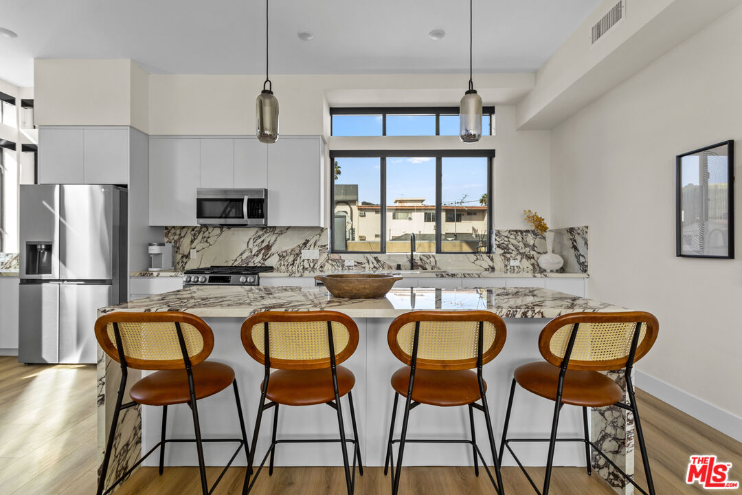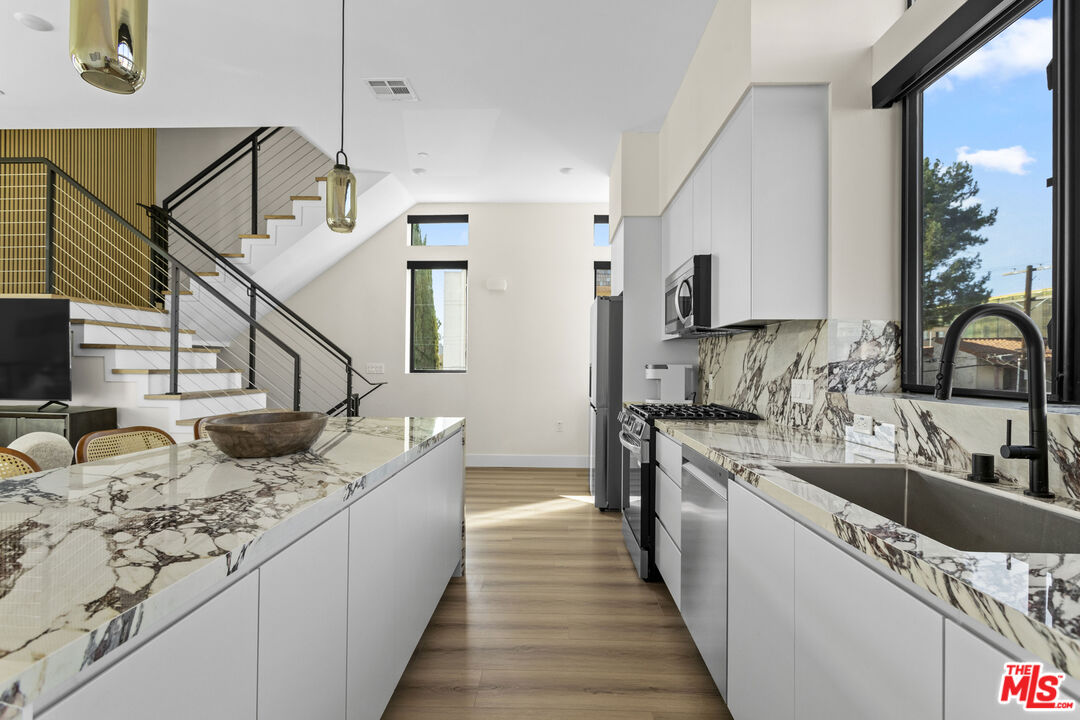 Set within an exclusive collection of five freestanding residences, this sophisticated modern home offers the rare comfort of no shared walls in a prime location bordering West Hollywood and Hollywood. Thoughtfully designed with soaring ceilings and abundant natural light, the residence features three spacious bedrooms and three and a half beautifully appointed bathrooms, blending refined design with everyday functionality. Interiors showcase wide-plank white oak floors, custom cabinetry, designer window treatments, built-in closets, and a curated selection of premium stainless-steel appliances. Zoned heating and air conditioning on each level provide optimal comfort, while in-home laundry adds convenience. An expansive rooftop deck captures sweeping city views, creating an ideal setting for entertaining or relaxing above it all. Additional highlights include a private two-car garage with direct access. Modern architecture and timeless finishes come together in a vibrant, centrally located neighborhood just moments from premier dining, shopping, nightlife, parks, and the trails of Runyon Canyon. HOA dues are projected at no more than $100 per month. Property also available for lease. Contact Agent for Interest Rate Buy-Down Incentive! We are offering the lowest Rates in the market!