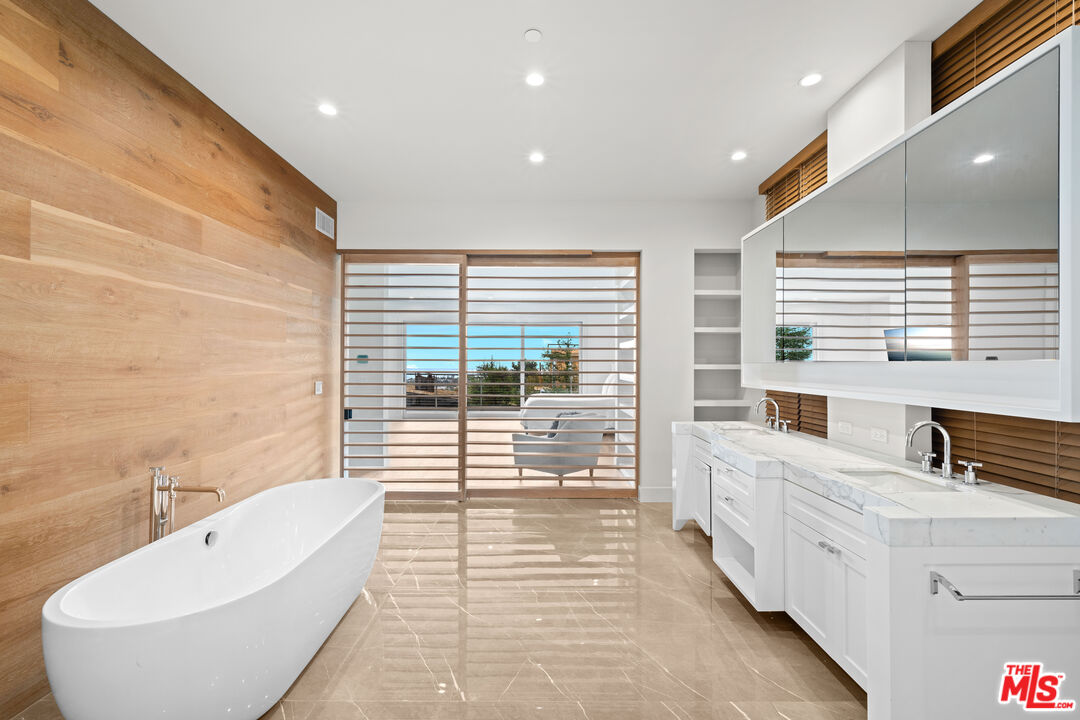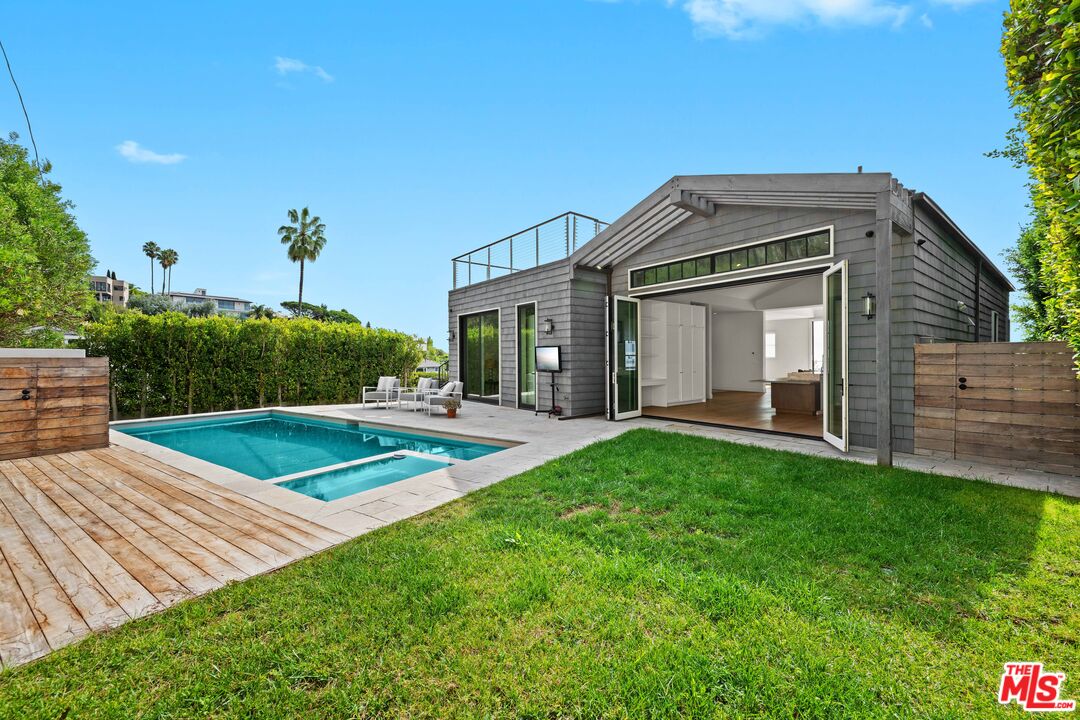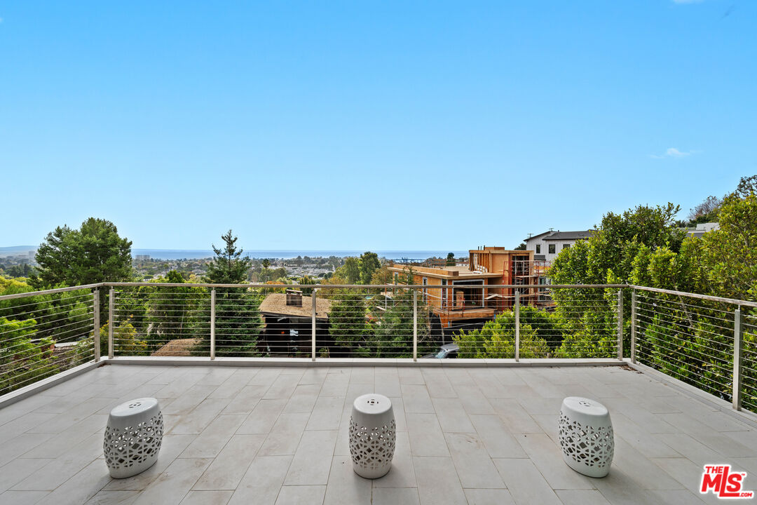 No need to rebuild, this home is ready now! Perched on a quiet street above the Palisades Village, this stunning Cape-Cod inspired residence built in 2019 offers sweeping views of the Pacific Ocean and the city skyline. Thoughtfully designed across three expansive levels, this stunning contemporary masterpiece features 5 bedrooms, 7 bathrooms, and effortlessly blends refined interiors with seamless indoor-outdoor living. Crafted for modern living, this smart home includes a spacious media room with wet bar, a sparkling pool and spa, and an expansive rooftop deck showcasing spectacular ocean vistas. The gourmet kitchen flows into both the private backyard and the elegant formal dining and living areas, complete with a fireplace and a sunlit terrace. The luxurious primary suite is a tranquil retreat, boasting panoramic ocean views from its private patio, a cozy fireplace, an oversized walk-in closet, and a spa-inspired bathroom with steam shower and soaking tub. Each additional bedroom is en suite, offering privacy and comfort. Additional highlights include an oversized two-car garage, a private elevator, full laundry and utility rooms, and smart-home technology throughout. Located in the coveted Alphabet Streets of Pacific Palisades, this exceptional home is just moments from the shops, restaurants, and charm of the Palisades Village.