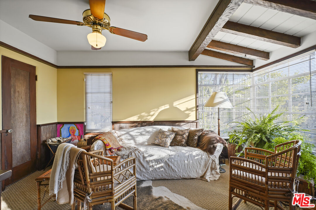 The Peterson House. Glendale historic resource #50 and available for the first time in 50 years. Tucked along one of Glendale's most desirable tree-lined streets north of Mountain, this romantic 1920s Spanish home carries a rare distinction: official Mills Act designation, offering both significant property tax savings and the pride of owning a protected piece of local history. From the moment you arrive, the home's character reveals itself in layers. A timeless facade draped in bougainvillea, framed by a graceful mature olive tree and lush landscaping, leads to an arched front door that opens into an entry rich with original magnesite floors and wrought-iron detailing. The house has a grounded grace, with rooms that flow naturally from one to the next. Inside, rooms feel both generous and inviting, designed for connection and quiet moments alike. The two-story floorplan unfolds with an easy sense of proportion and warmth. To the right, a generous living room with beamed ceilings, a fireplace, and hardwood floors speaks to the home's early Spanish revival craftsmanship. Sunlight filters through arched openings into a cozy library lined with built-ins, perfect for reading or quiet reflection. To the left, the formal dining room sets an elegant tone with textured plaster walls, coved ceilings, and French windows framed by wrought-iron details. The kitchen, centered around a La Cornue range and copper hood, feels like a step back in time, filled with old-world charm and the kind of patina that only decades of care can create. A cheerful breakfast room connects the kitchen and dining area, offering a casual spot for morning coffee surrounded by vintage texture and light. Upstairs, three bedrooms and two baths continue the home's architectural narrative. The primary suite includes a private office framed by windows overlooking the neighborhood, an inspiring space for work, writing, or creative projects. French doors open to Juliet balconies that bring in soft light and a connection to the surrounding trees. Throughout the upper floor, period details such as built-ins, handcrafted railings, and plaster finishes preserve the home's integrity while offering space for thoughtful updates that respect its history. Outdoors, the backyard feels like a private retreat. A spacious deck and pergola overlook a tiled pool bordered by greenery, creating a peaceful setting for gatherings or quiet afternoons in the sun. The garden and pool create their own quiet rhythm, tying the home's indoor spaces to the landscape. Hidden just beyond is a converted garage that now serves as a guest studio, complete with a modern kitchenette and bright interior. Ideal for creative use, workspace, or future potential, it adds another layer of flexibility to this distinctive property. This is a home that carries its history with quiet joy, a place where light and texture tell the story of its past while inviting its next chapter to unfold. One of the few true Mills Act opportunities in Glendale, it stands as a lasting example of Spanish architecture at its most soulful and enduring.