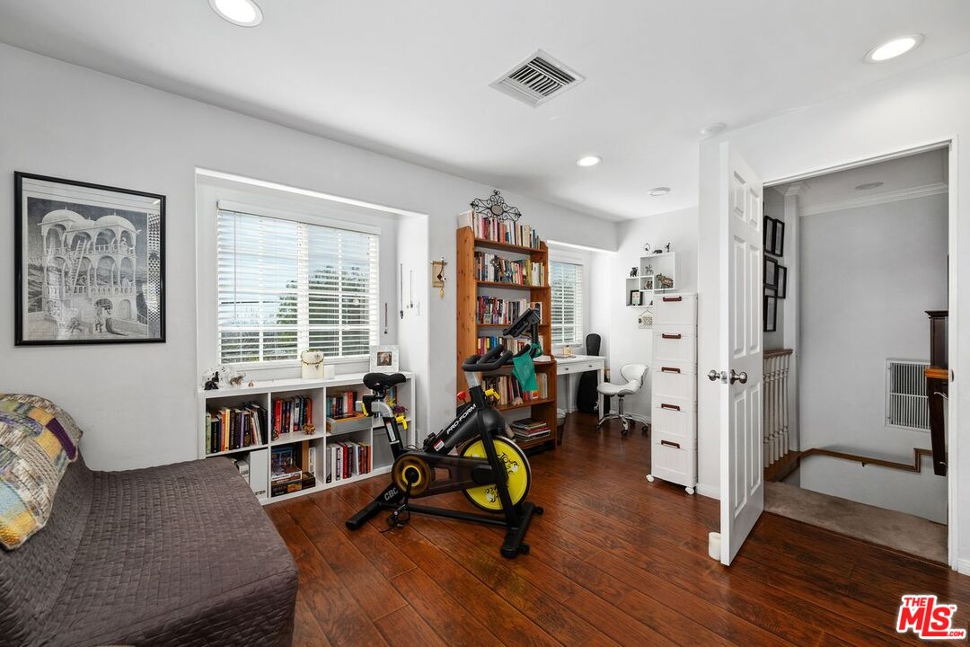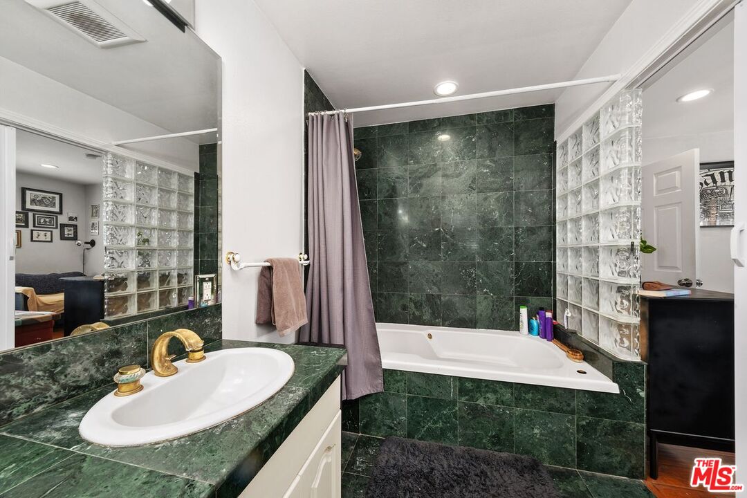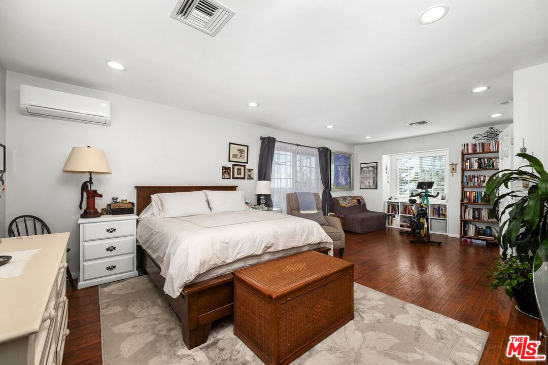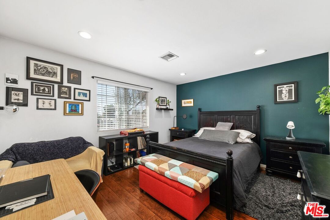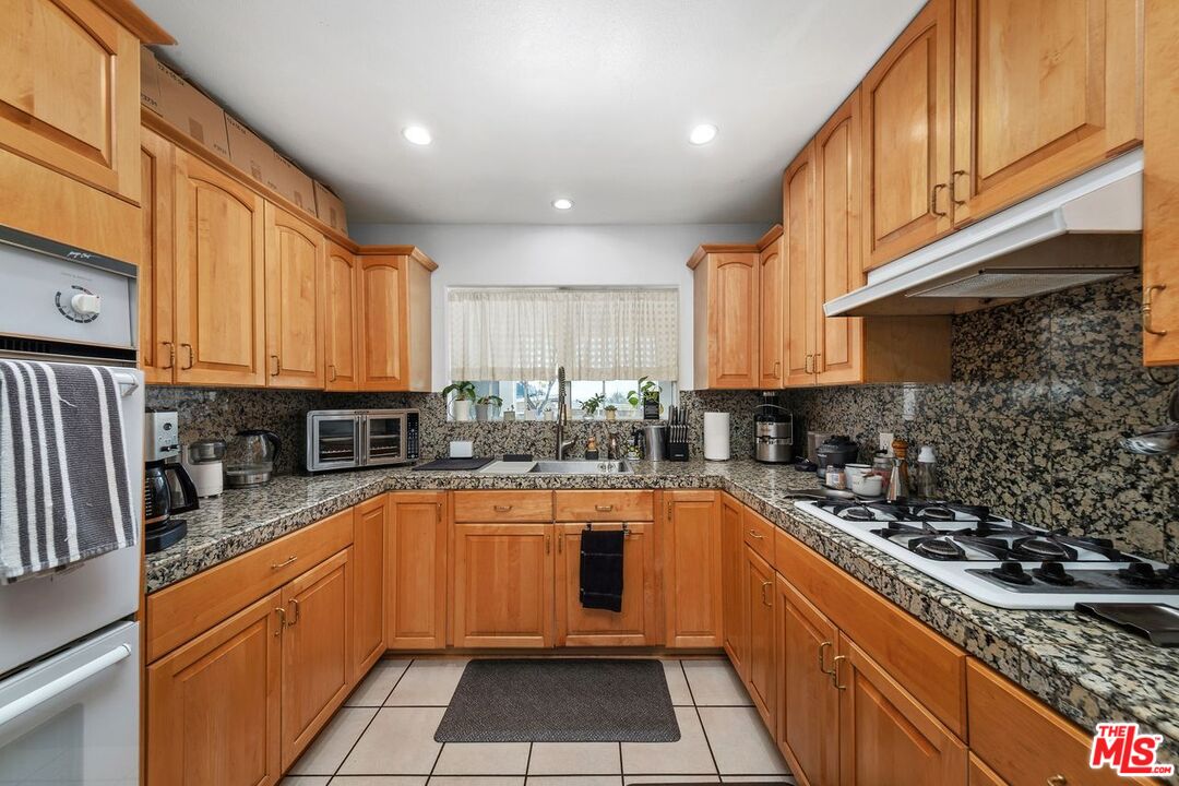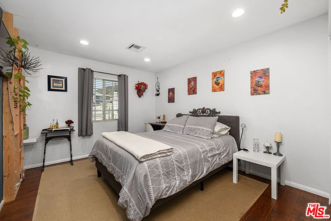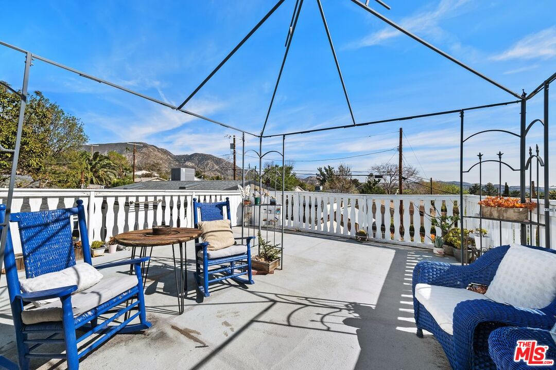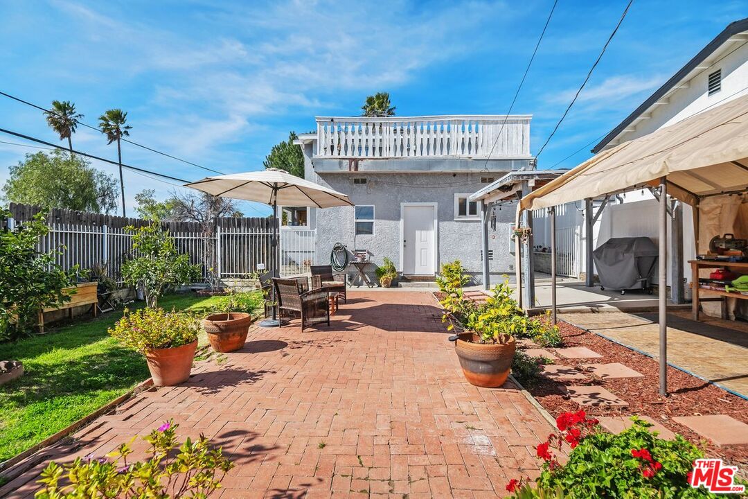 Nestled in the tranquil foothills of Sylmar, this charming 2-story home on a desirable corner lot offers the perfect blend of comfort, privacy, and functionality. Designed with family living in mind, the home features two primary suites, one upstairs and one downstairs, along with two additional bedrooms and full bathroom in the hallway, providing ample space for families of all sizes. The upstairs primary suite is a true retreat, complete with a spacious private deck that overlooks the serene backyard and surrounding hills, ideal for relaxing and enjoying peaceful views. Entertain guests in the formal dining room or prepare meals in the well-appointed kitchen, featuring beautiful granite countertops, abundant storage, and ample counter space. The cozy living room, highlighted by a welcoming fireplace, adds warmth and charm to the home. In addition to the four bedrooms in the main house, a large bonus suite with its own private entrance, bathroom and kitchen offers excellent potential as a guest suite, extended family residence, or income-generating rental. Currently operated as an Airbnb, this space brings in approximately $1,200 per month, adding valuable income potential to the property. The fully gated lot offers a spacious backyard with multiple fruit trees, a dedicated workspace, and a bonus storage area. A side-by-side laundry area and leased solar panels add further convenience. The expansive driveway with an automated gate provides ample parking for multiple or large vehicles. Ideal for multi-generational families or those seeking both privacy and room for gatherings, this home is conveniently located just minutes from hiking trails, El Cariso Park & golf course, Veterans Memorial Park, Los Angeles Mission College and the 210 freeway. Don't miss the chance to make this beautiful residence your own and experience the best of Sylmar living.