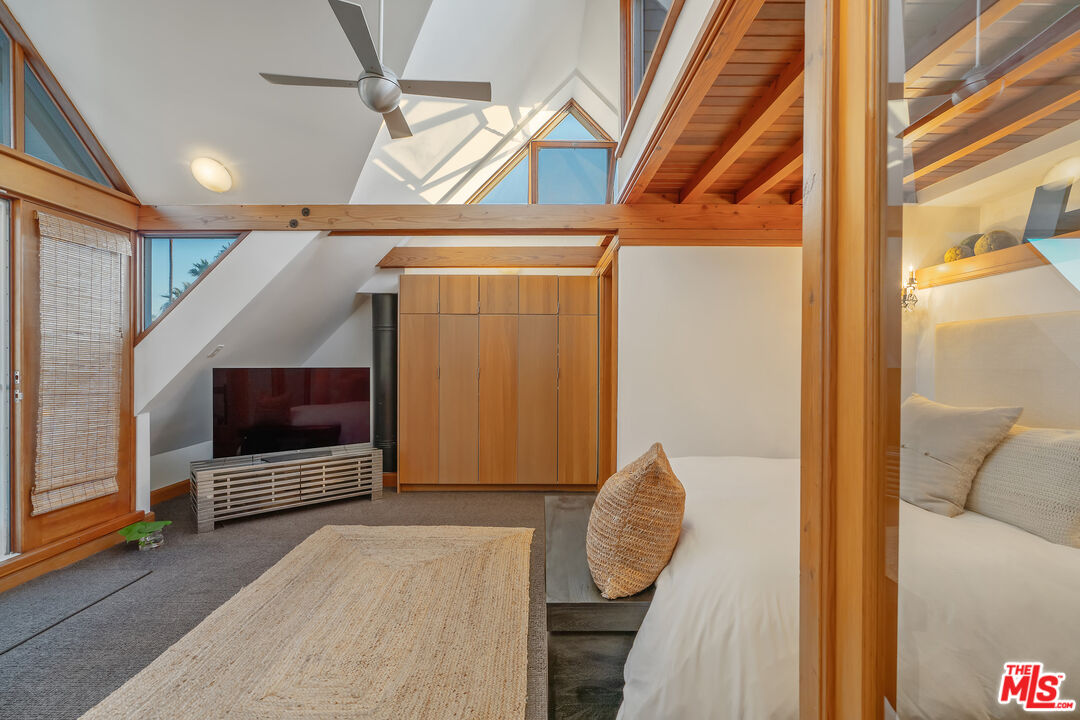 Steps to the Ocean! This Architecturally stunning Ocean Park Craftsman Home is located 1/2 block to the ocean, beach parks, Main Street and the most incredible sunsets from your spacious roof deck. Welcome to this exceptional modern Craftsman, nestled just steps from the sand in the heart of Santa Monica's coveted Ocean Park neighborhood. This location is quiet and private. With only 133 homes between Neilson Way and the beach, this is a truly rare opportunity to own a beautiful beach home within a great community. Showcasing impeccable craftsmanship and soaring high wood-beamed ceilings, this architecturally impressive home radiates pride of ownership throughout. The open layout, infused with natural light, creates a warm and inviting atmosphere that perfectly complements the beachside lifestyle. Enjoy seamless indoor-outdoor living with a private ground level spacious patio with a built-in barbecue and a private rooftop deck offering spectacular ocean views - perfect for morning coffee, evening sunsets, or entertaining under the stars. Additional highlights include: beautifully designed high-end interior finishes, 2 en-suite bedrooms, ample closet space throughout, a fireplace in the living room & primary bedroom, walk-in primary closet, whirlpool bathtub, alarm system, a private 2-car garage with direct access & Tesla charge station, and a location that blends serenity and convenience. Just moments from the beach and vibrant Main Street, this home allows you to live car-free - everything you need is within walking or biking distance. Experience the magic of beachside living - this is more than a home, it's a lifestyle.