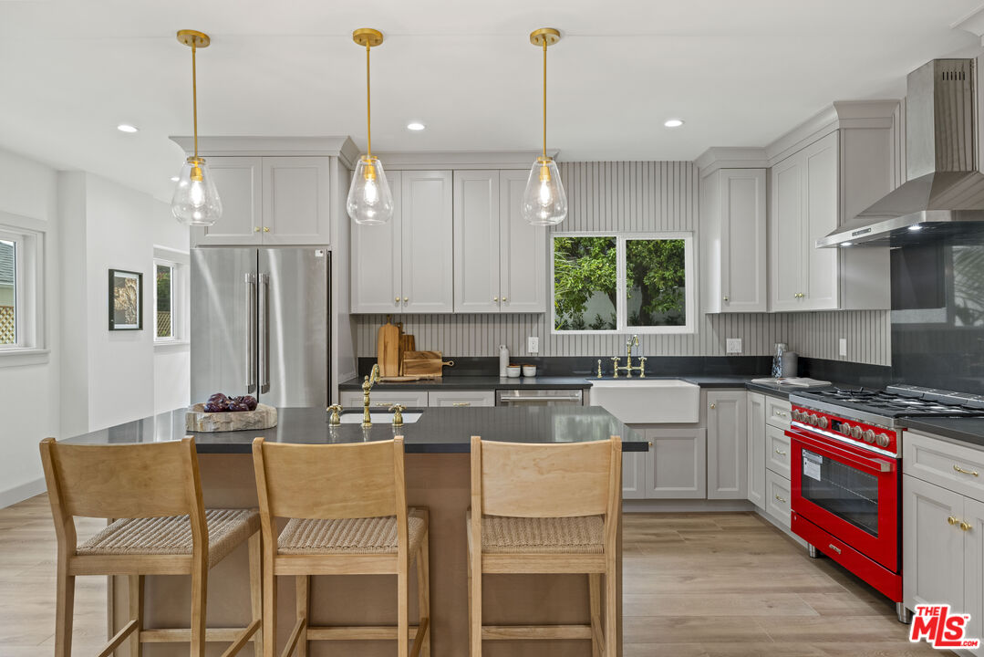 Nestled in the heart of coveted Spaulding Square, this meticulously reimagined three (3) bedroom, four (4) bathroom home seamlessly blends classic charm with modern luxury. Step inside the formal living room which features a stately fireplace and an adjacent flex space, perfect for use as a home office or a den. The floorplan seamlessly connects the living space with the dining room and kitchen which opens to a serene patio through elegant French doors, perfect for both relaxation and entertaining. The chef's kitchen boasts a high-end appliance package, a spacious island, and custom cabinetry. Each of the three bedrooms features a spacious closet, natural light, and an ensuite bathroom complete with tasteful finishes and meticulous attention to detail. The oversized lot features lush new landscaping and ample green space, along with a finished one-car garage, a prime opportunity for an ADU conversion, and additional parking. Additional upgrades include a brand-new roof, HVAC, plumbing, and electrical, ensuring your comfort and safety. Situated on one of L.A.'s most picturesque, tree-lined streets, moments away from Sunset Boulevard and the very best of West Hollywood's restaurants, shopping, and entertainment, this is an exceptional opportunity to own a turn-key home in one of L.A.'s most sought-after historic enclaves. Welcome home!