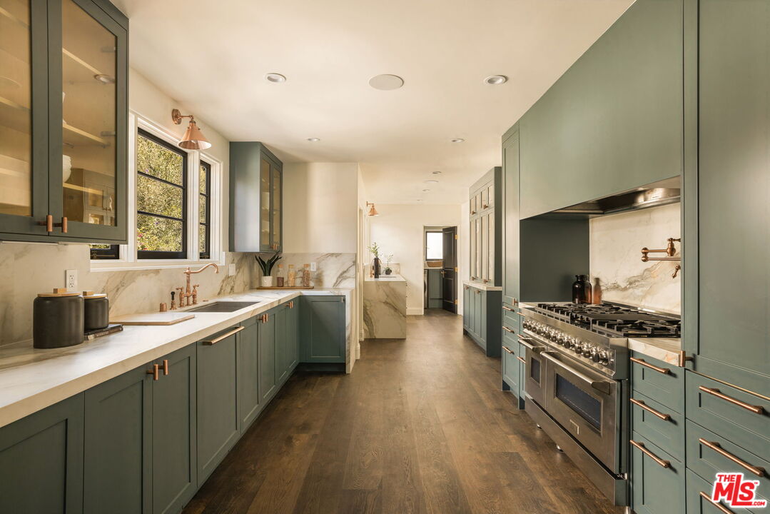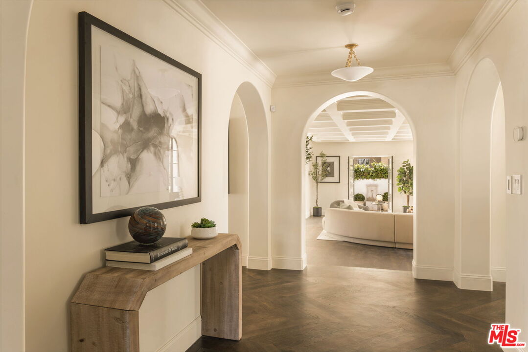 Private, Majestic, gated Spanish Revival compound in the heart of Hancock Park, masterfully reimagined with designer finishes while preserving its timeless architectural integrity.A dramatic entry sets the tone, leading to expansive living and dining rooms where walls of steel-framed French doors open seamlessly to the outdoors, creating the ultimate indoor-outdoor California lifestyle. Designed for both intimate evenings and large-scale entertaining, the home exudes warmth, scale, and effortless elegance throughout.The chef's kitchen is beautifully appointed with top-of-the-line appliances, custom cabinetry, and refined finishes, offering both functionality and elevated design.The residence features five luxurious ensuite bedrooms, including a main-level suite ideal for guests or a private office, and four upstairs retreats that provide exceptional comfort, privacy, and space.The resort-style backyard is a true sanctuarycomplete with a newly built pool, multiple lounge and dining areas, and lush, curated landscaping that creates a serene, boutique hotel-like setting.Enhancing the property's versatility and value, a newly constructed detached guest residence (ADU) with its own address offers a full kitchen and living space on the main level, a one-bedroom suite above, and a stunning rooftop balcony perfect for guests, a private workspace.A rare offering that seamlessly blends historic character, modern luxury, and a true compound lifestyle in one of Los Angeles' most prestigious neighborhoods.