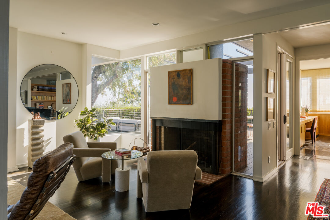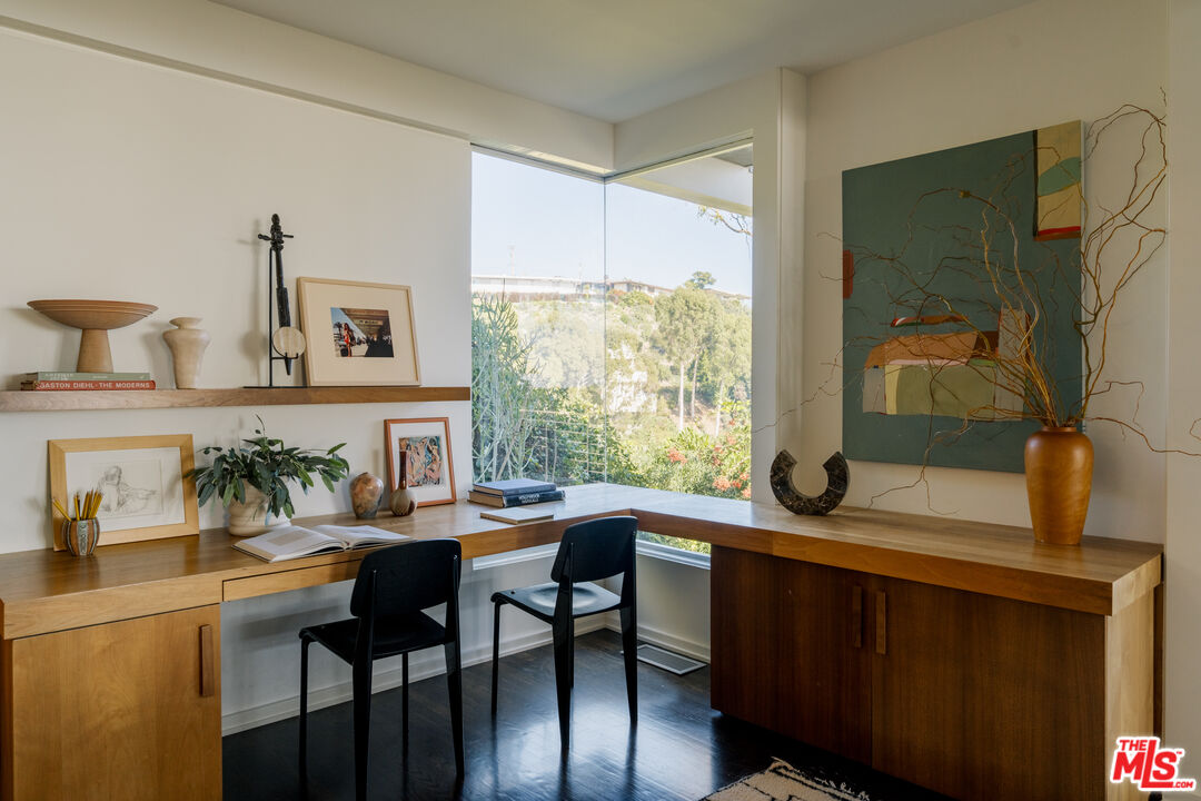 Perched in the architectural enclave of Crestwood Hills, this reimagined Mid-Century Modern sanctuary captures sweeping ocean, city, and mountain vistas from nearly every vantage point. Designed for those who value privacy, the home sits discreetly tucked away from the street, welcoming you into an airy open floor plan where walls of glass immediately frame the dramatic panorama beyond. Thoughtfully remodeled with sophistication and attention to detail, the residence blends timeless mid-century lines with contemporary refinement. The main living spaces transition effortlessly from the entry to the office/third bedroom and into the primary suitecomplete with its own balconycreating a sense of seamless flow anchored by natural light and captivating scenery. Just off the entry, a secondary bedroom is bathed in light from multiple exposures and enjoys serene views of a water feature and mature landscaping just beyond the sliding window, complemented by an additional upper window and an elegant en-suite bathroom. A true indoor-outdoor experience defines the home: French doors and expansive sliders open to view terraces ideal for entertaining or unwinding above the city lights. Unobstructed glass corners dissolve the boundary between interior and landscape, creating the sensation of reaching out and touching the horizon. Each of the three bedrooms and three stylishly updated baths reflects quality craftsmanship and a curated design sensibility. Moments above Sunset Boulevard and just minutes to Brentwood Village, the shops on San Vicente, and the iconic Brentwood Country Mart, this residence delivers a rare combination of architectural pedigree, modern comfort, and unmatched convenience. A refined retreat with unforgettable views, this is Crestwood Hills living at its most inspired.