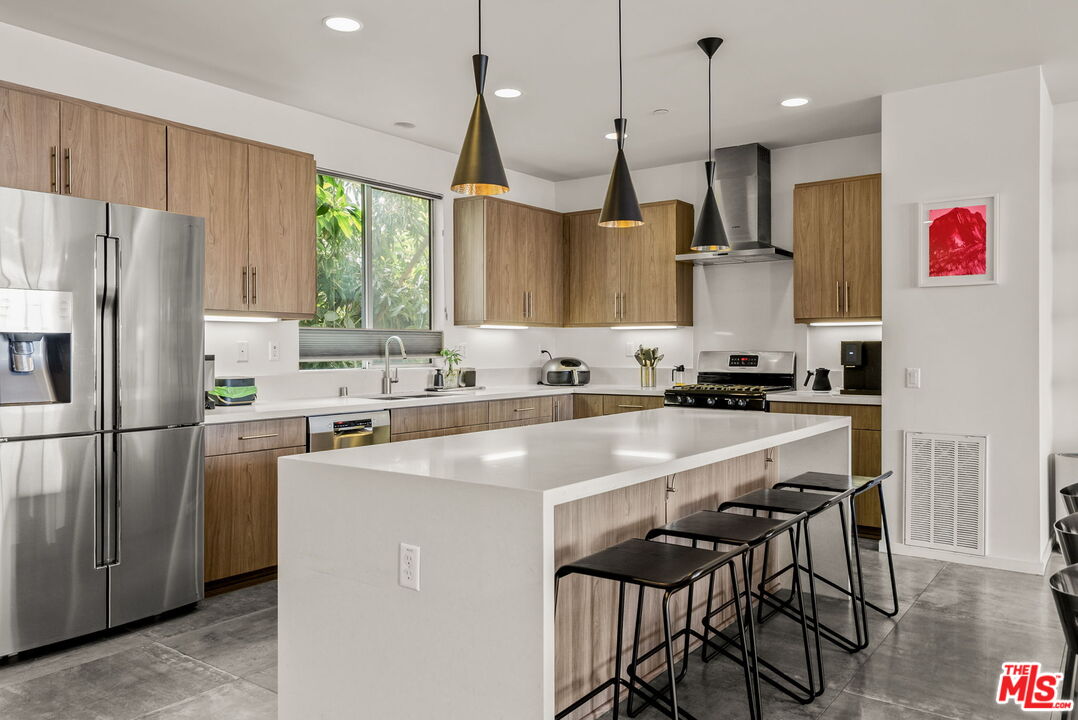 Perched high above the electric energy of Echo Park, 1344 Douglas Street is a show-stopping modern residence that delivers on style, substance, and those stunning iconic downtown skyline views. With 3 bedrooms, 3.5 baths, and over 2,000 square feet of thoughtfully designed living space, this tri-level stunner is a rare blend of architectural edge and everyday livability. Step inside and be instantly drawn into the open-concept main level, where sunlight floods through oversized windows and drenches the modern slate flooring. The gourmet kitchen is simply modern design streamlined quartz countertops, a full suite of Bosch appliances, under-cabinet lighting, and a spacious waterfall-edge island perfect for cocktails or casual brunches. Glass railings to allow light to flow through out the home. All framed by clean lines, subtle sophistication, and an effortless indoor-outdoor flow. Each of the three bedrooms is its own private retreat, with en-suite bathrooms that feel like boutique hotel escapes. The primary suite tucked away for maximum privacy features a spa-inspired bath and custom touches that elevate the everyday. The crown jewel, An expansive rooftop deck with sweeping, cinematic views of Downtown Los Angeles. Whether you're hosting sunset soires or sipping morning coffee as the city wakes up, this is where the magic lives. Additional perks include direct- entry two-car garage, central HVAC, recessed lighting throughout, and low monthly dues. And when you're ready to step out, you're just minutes from Echo Park Lake, Elysian Park trails, Dodger Stadium, and some of the East side's best coffee shops, wine bars, and creative culture.1344 Douglas isn't just a home it's a lifestyle. Bold. Elevated. Entirely you.