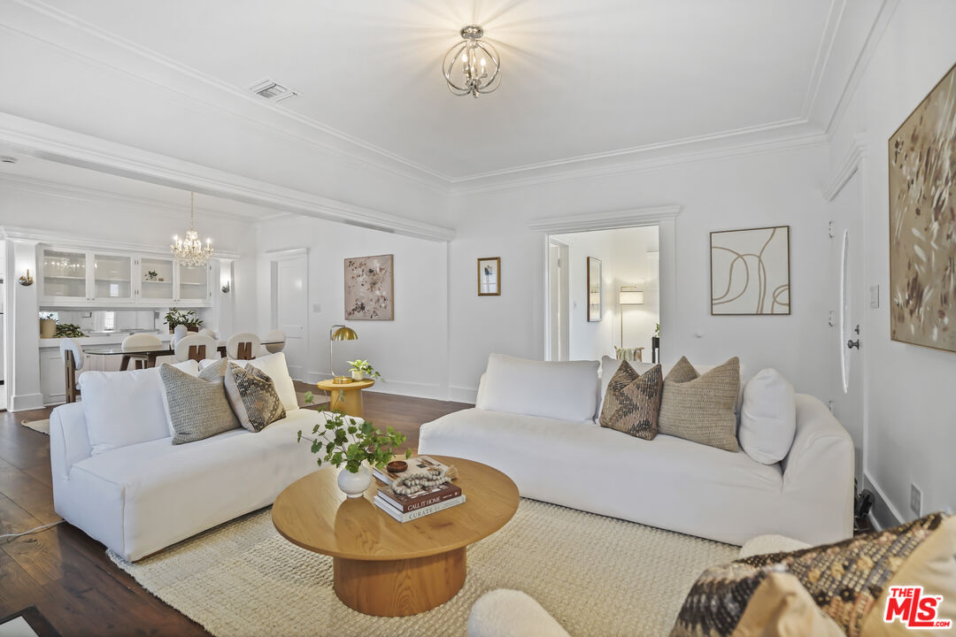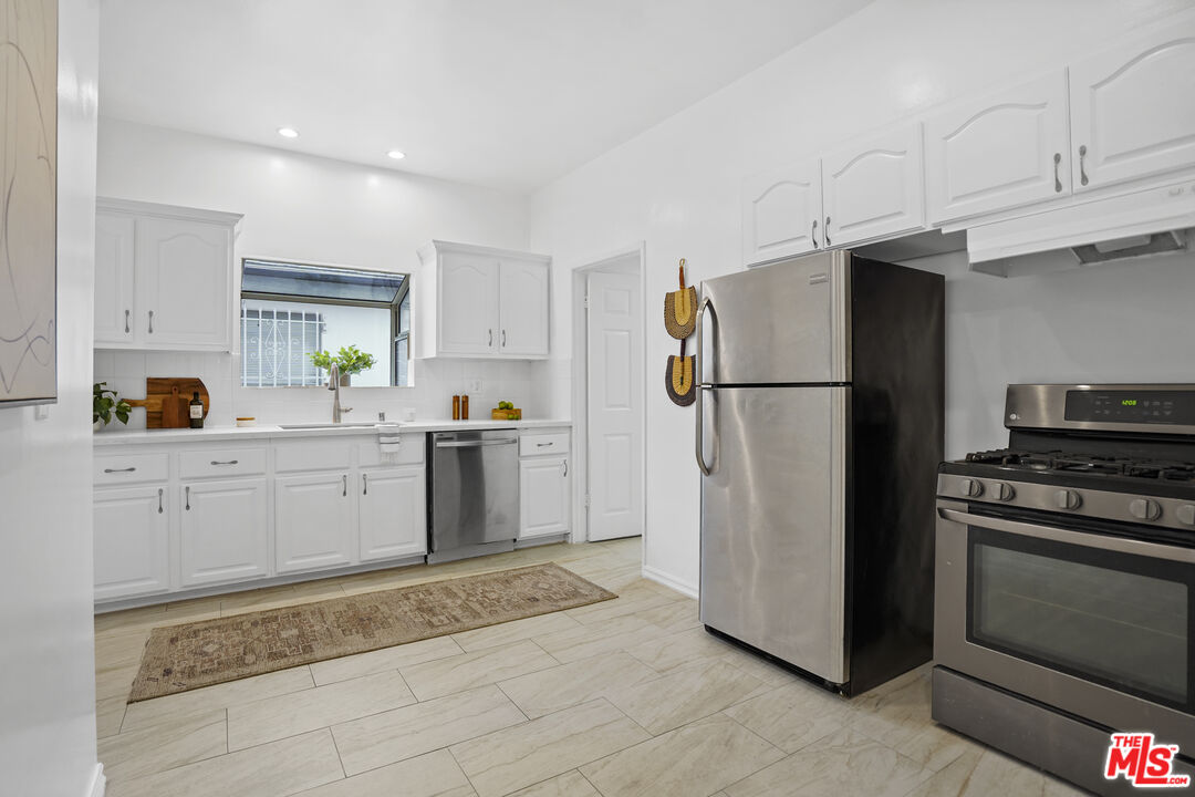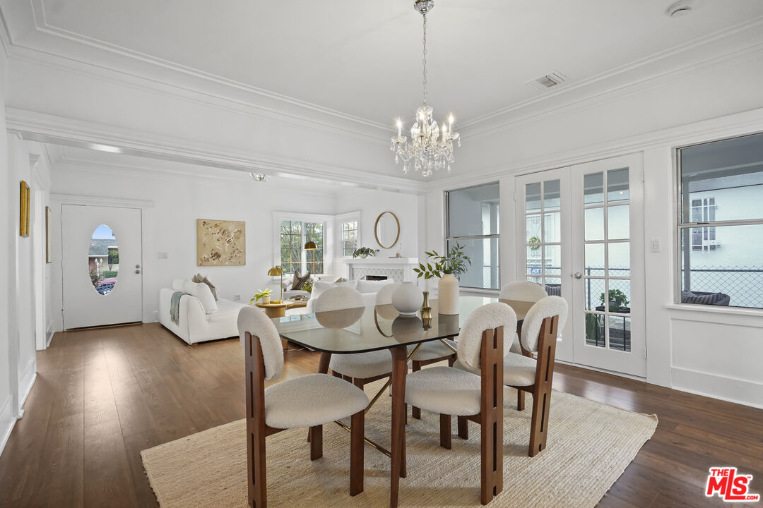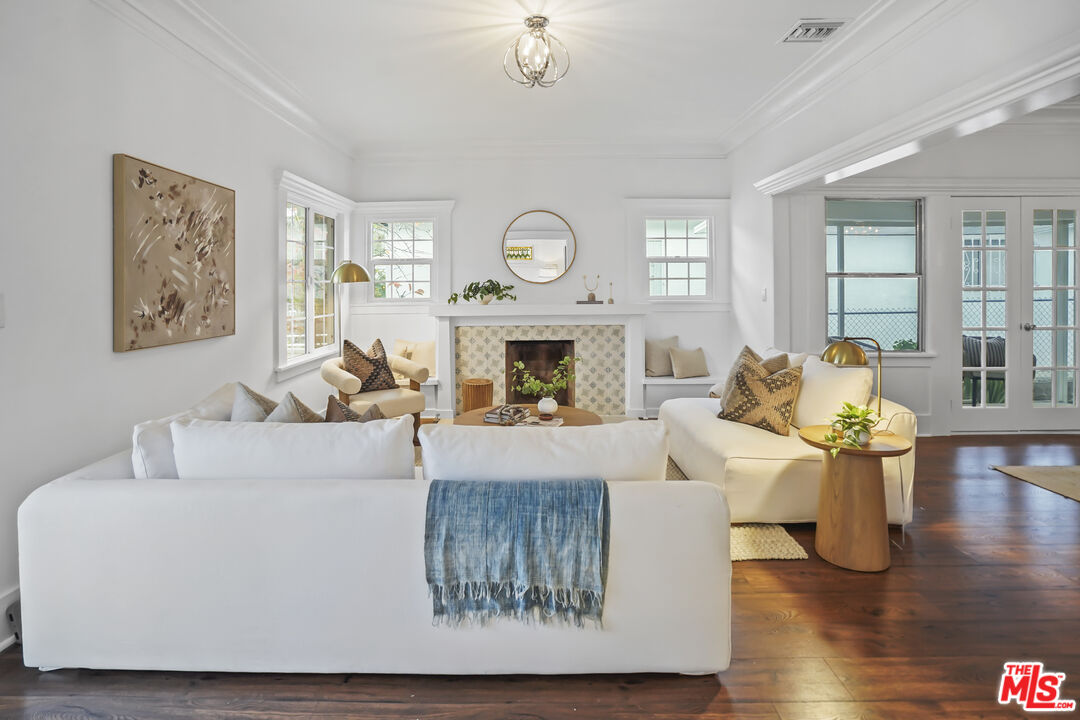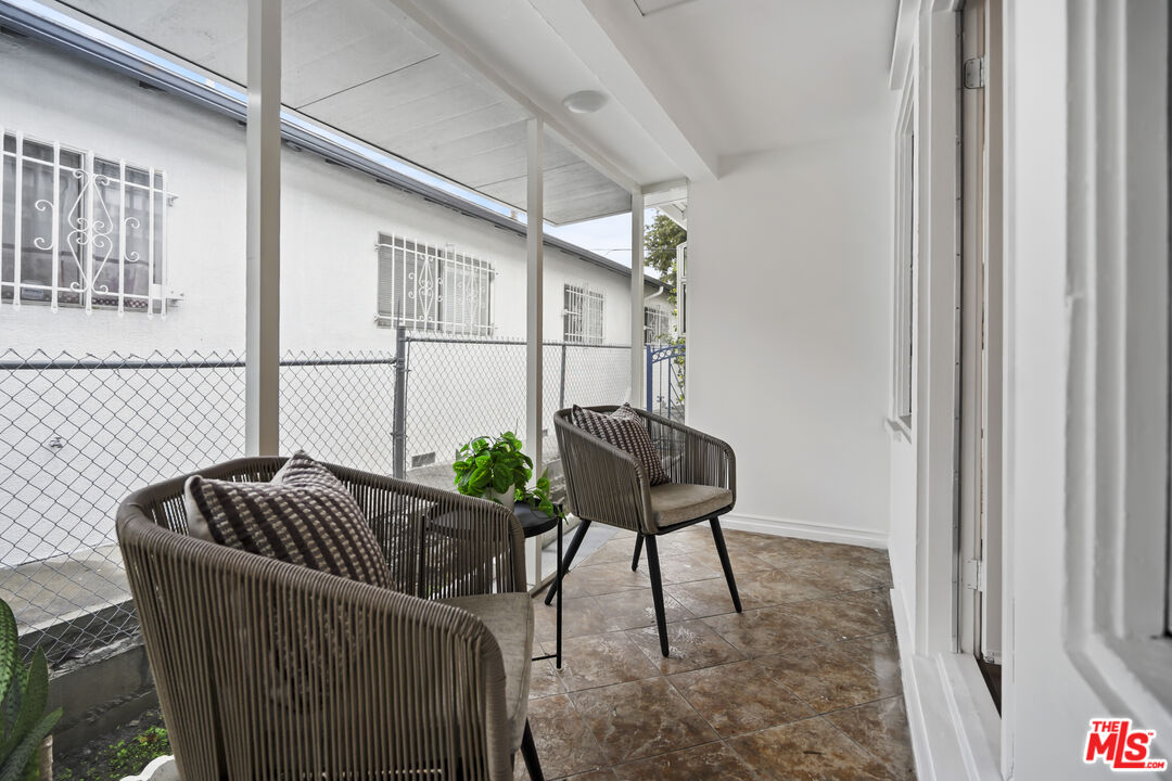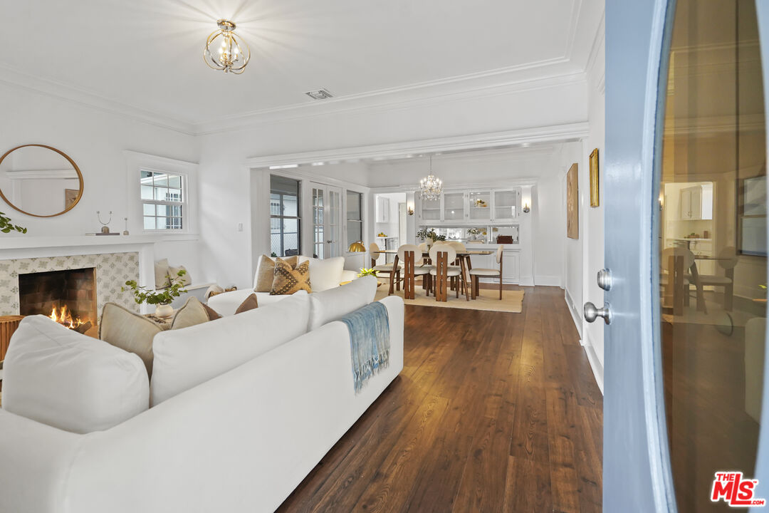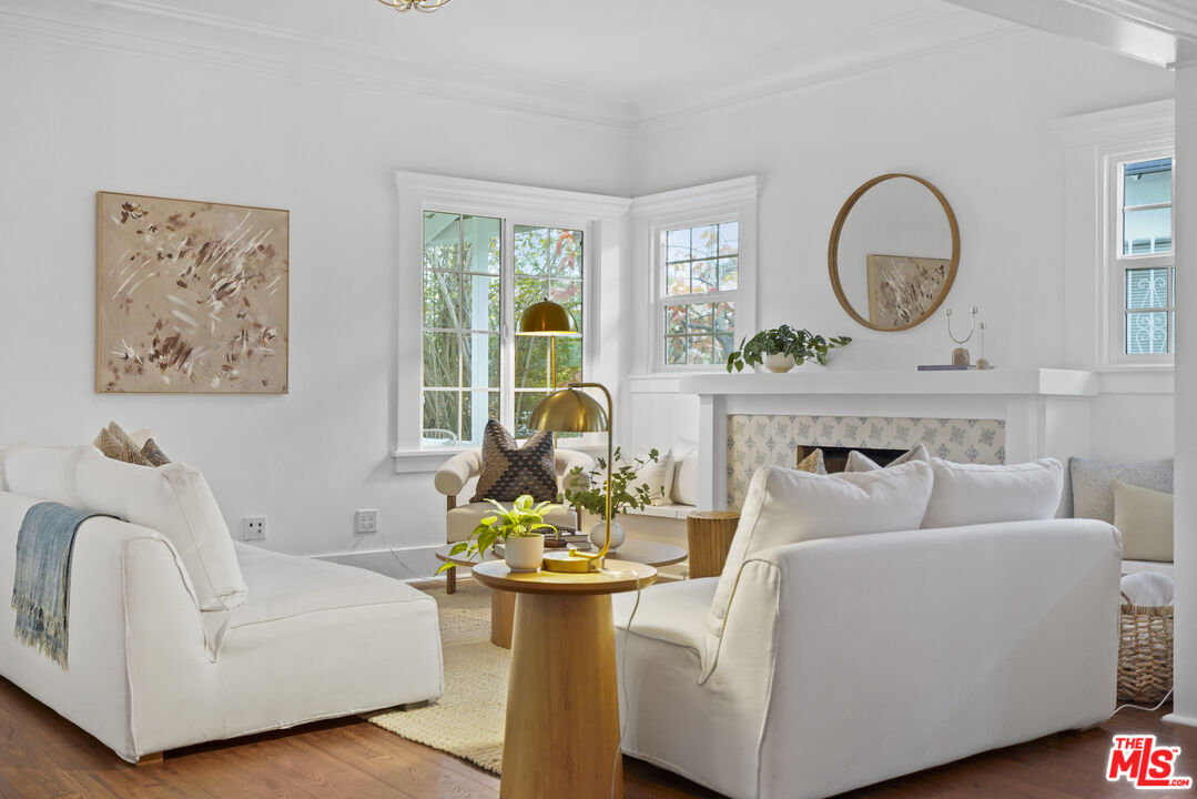 Set along a residential block in Rampart Village, this TWO-ON-A-LOT property includes a 1912 Craftsman at the front of the lot and a detached one bedroom/one bath rear residence. Together, the homes offer approximately 2,078 square feet and a configuration well suited to owner-occupants, rental income, or multi-generational living. The front house presents a classic Craftsman profile, with a deep covered porch, wide roof overhangs, and tapered columns that establish its proportions before entry. Inside, wood floors run throughout the main living areas, paired with high ceilings and substantial trim work. The living room is organized around a wood-burning fireplace with newly installed patterned tile surround and broad mantle. Built-in seating and storage flank the fireplace, with windows bringing in steady natural light. Wide cased openings lead from the living room into the formal dining room. Original built-in cabinetry with glass-front uppers and lower storage spans one wall, offering both display and function. The room is generously sized and clearly defined while remaining connected to the surrounding spaces. French doors open toward a secondary porch, extending the dining area outward. The kitchen sits just beyond the dining room and offers a clean, functional layout with white cabinetry, new countertops, newly tiled surfaces, and stainless steel appliances. The front residence includes two bedrooms, two bathrooms, and a separate den, allowing flexibility for a home office, library, or additional living space. Period details such as leaded and stained glass accents, substantial baseboards, and consistent window casings remain intact throughout, giving the interior a cohesive and authentic feel. Positioned at the rear of the lot, the detached second home offers a one-bedroom, one-bath layout with a straightforward, modern feel. An open living area receives light from multiple windows, while tile flooring runs throughout for durability and ease of care. The kitchen provides ample cabinetry and space for a small dining table. The bedroom is well-proportioned, and the bathroom is easily accessible from both the living area and sleeping space. A separate entrance and defined approach give the rear home a sense of independence from the front residence. Whether used as a rental, guest house, or extended family space, it functions comfortably on its own while remaining part of a cohesive property. Centrally located, the property sits within close reach of Echo Park, Silver Lake, and Downtown Los Angeles. What distinguishes this offering is the balance between the two homes: one rooted in architectural history, the other offering simplicity and flexibility, together forming a property that adapts easily to changing needs. The systems have all been upgraded within the past five years with freshly painted exterior and interior. There are no appliances provided in the rear house. Offer due deadline: Monday, January 19, 2026.