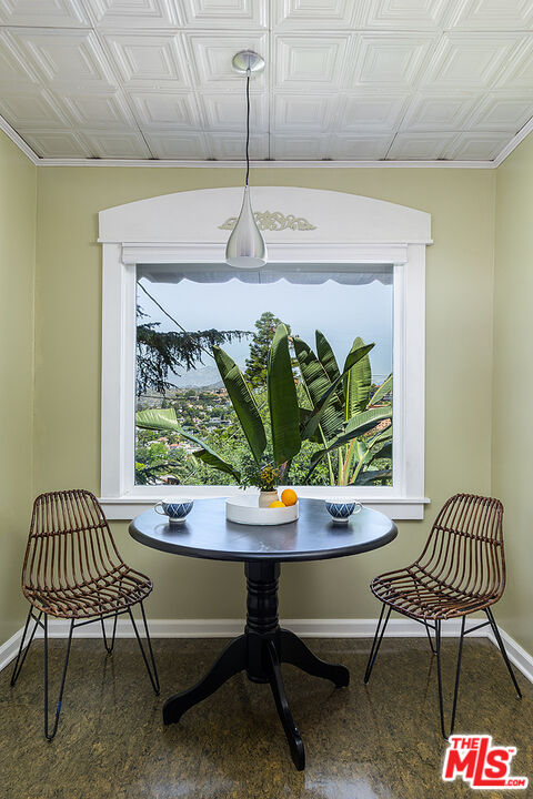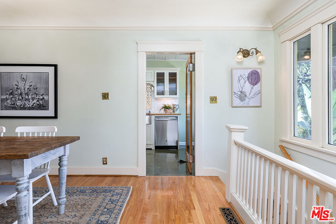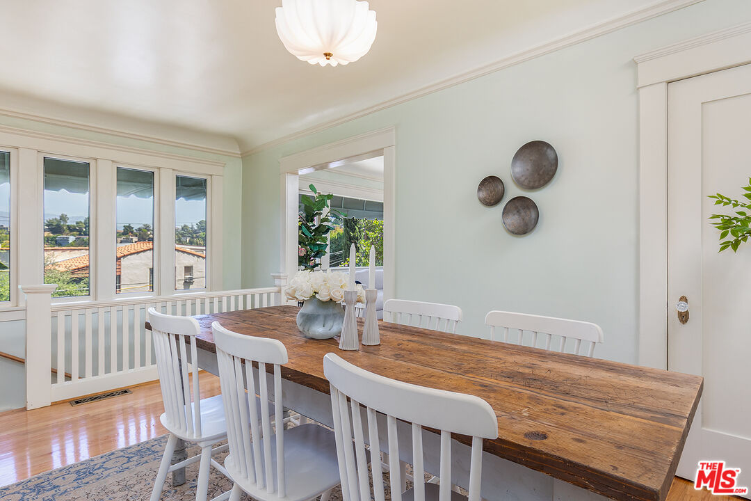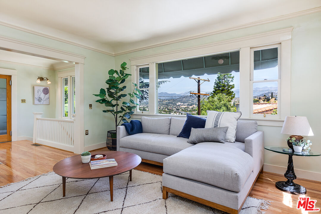 At the peak of Adams Hill, this 1924 Period Revival feels right at home in its hillside setting where mountain views, soft breezes, and a sense of calm define daily life. The three-bedroom, two-and-a-half-bath residence offers over 1,800 square feet of living space, with sweeping vistas of the San Gabriel Mountains from every room. Inside, sunlight pours into the living room, illuminating hardwood floors, built-in shelving, and classic crown molding that speak to the home's enduring character. The formal dining room invites long, leisurely gatherings, while the kitchen brings a playful note with its soda-fountain-inspired design, updated with modern appliances that blend seamlessly with its vintage feel. Upstairs, the primary bedroom catches the morning light, creating a gentle start to the day. A second bedroom offers a quiet retreat, while a flexible third room easily shifts between guest space, office, or den. The hall bath is standout, with handmade stained-glass windows and a deep soaking tub set in original tile. Just off the bedrooms is a glass-ceiling patio room that blurs the line between the indoors and out. Outside, the terraced backyard unfolds as a natural sanctuary, filled with native plants that attract butterflies, and hummingbirds. Two decks create inviting spots for morning coffee or evening unwinding, with mountain views and the occasional call of owls in the distance. Lovingly maintained by the same family for more than four decades, the home reflects thoughtful stewardship, with updates including a replaced foundation, copper and ABS plumbing, updated electrical, a new electric water heater, and a full suite of appliances installed in 2024. Adams Hill itself offers a welcoming, close-knit feel, where neighbors greet one another on morning walks and local favorites are just moments away. From nearby Adams Square Mini Park, KAFN, and Little Ripper the setting strikes an easy balance between peaceful retreat and everyday convenience. With its blend of historic charm, considered updates, and a setting that captures the essence of hillside living, this is a home that invites you to settle in and stay awhile.