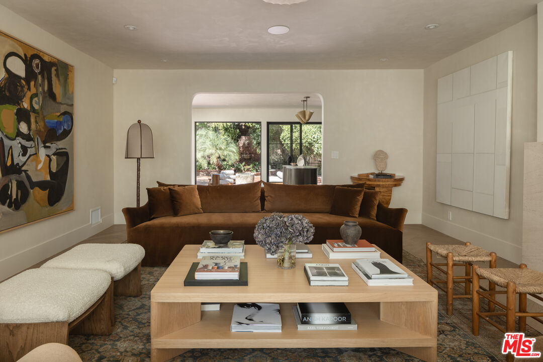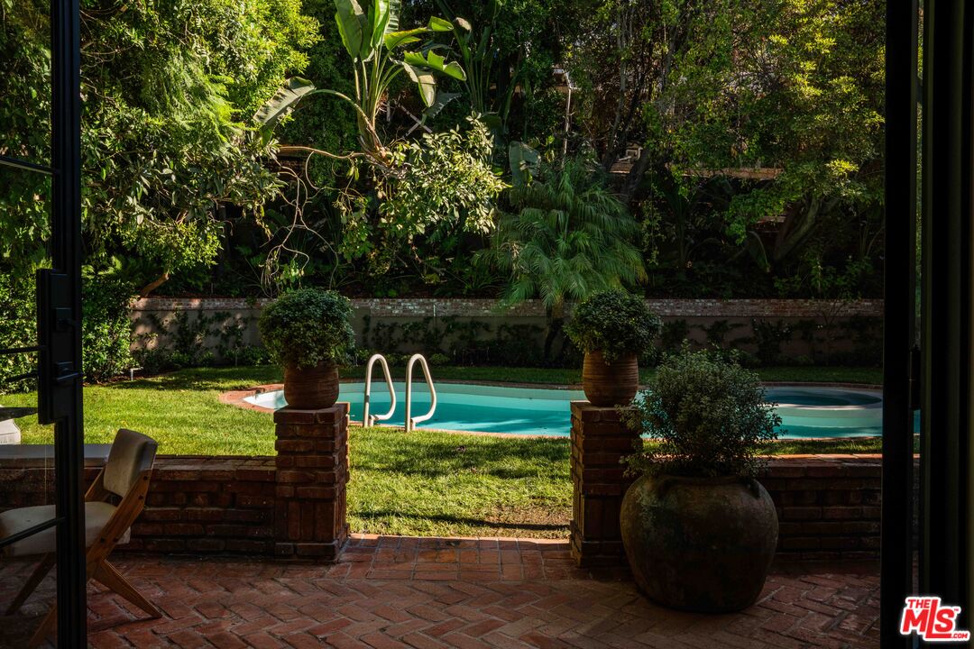 A rare French Regency estate on coveted flat half-acre parcel in lower Hollywood Hills reimagined by Studio OSKLO. Set-back behind a towering hedge and gated driveway, the secured home spans nearly 4,200 square feet of meticulously curated interiors with second floor views of downtown LA and westside Los Angeles. A rare combination of privacy and scale, an expansive grassy yard featured multiple entertaining areas and pool, as well as multiple water features and the ultimate private retreat. Designed for both grand entertaining and intimate gatherings, the home boasts extraordinary flow, with bespoke steel doors and windows framing sun-drenched spaces that blur the line between indoors and out. Each of the four spacious bedroom suites has an en-quiet bathroom, showcasing distinct character and detail while maintaining a cohesive thread of understated elegance. Grand dining room, stunning kitchen with breakfast nook, and solarium-style bar wrapped in glass. Throughout the home, hand-finished plaster walls and ceilings add warmth and texture, serving as a timeless backdrop for flawless craftsmanship and unrivaled contemporary design accustomed to $10-million + homes. This residence embodies the very best of Los Angeles living - polished, cool, and effortlessly chic close to Beverly Hills and West Hollywood.