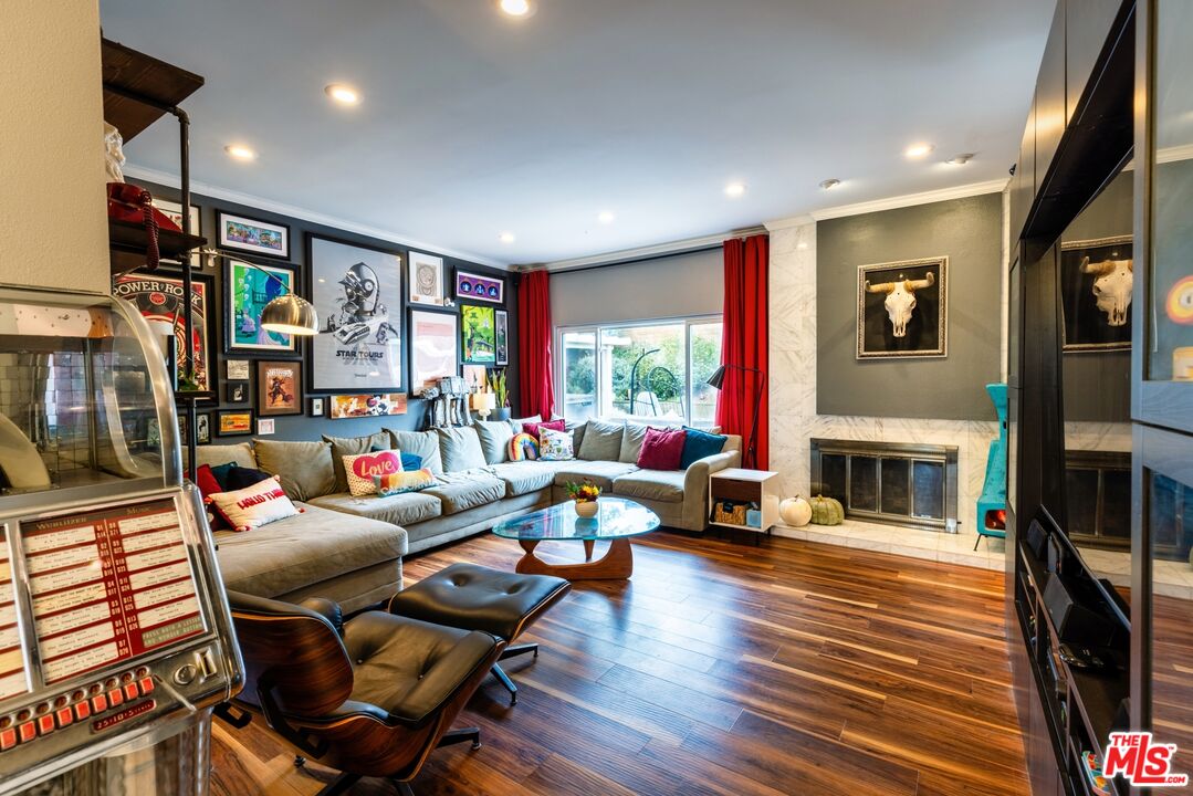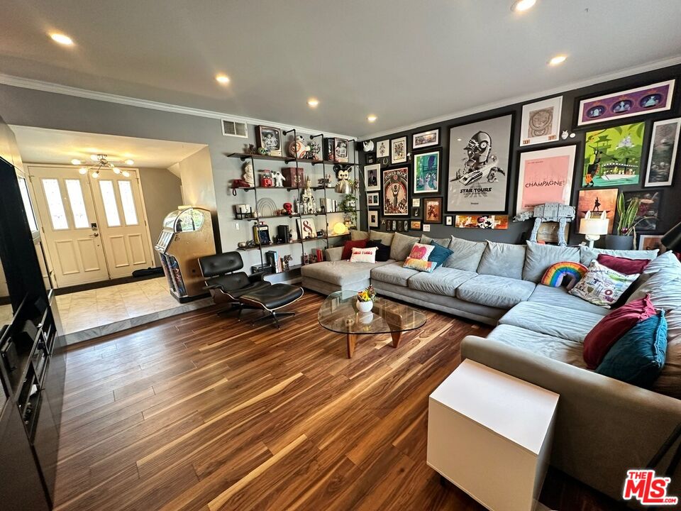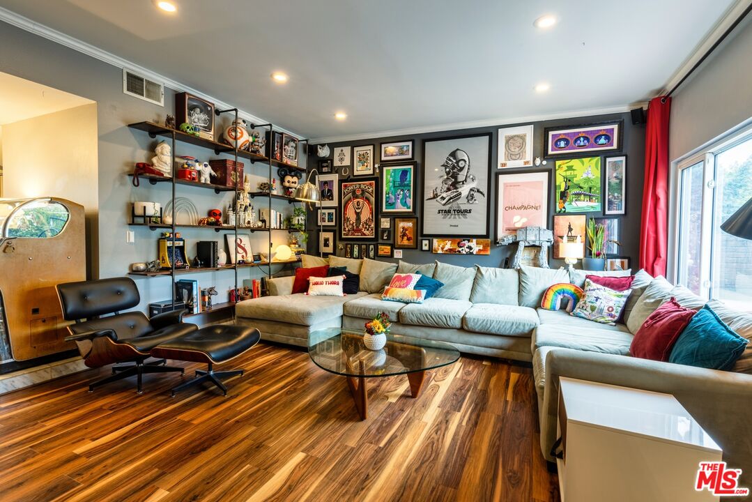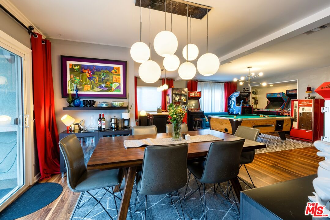 Welcome to this beautifully reimagined mid-century home, with picture perfect low-maintenance landscaping and striking breezeway leading to the cheerful double door entry and marble foyer. Designed for entertaining, the home offers a large living room with high ceilings, marble fireplace and backyard views, next to a spacious great room with wet bar and dining area adjoining a granite kitchen with excellent built-ins. Durable waterproof Acacia-style vinyl flooring adds warmth and striking design. Enjoy lounging in the pool-sized yard with covered dining, saltwater hot tub, drought-tolerant landscaping and classic block walls. Bedrooms conveniently separated from the living spaces with their own wing hosting 3 guest rooms with a full guest bathroom and a large Primary bedroom suite, with double doors, walk-in closet and ensuite bathroom with glass-enclosed shower. A turnkey home thoughtfully updated for modern living. Additional highlights include central heat and air, dedicated laundry room, leased and owned solar panels, saltwater hot tub, high-quality artificial grass, keyless entry system, front door and motion-sensor light cameras, and attached 2-car garage with smart entry HomeKit system.