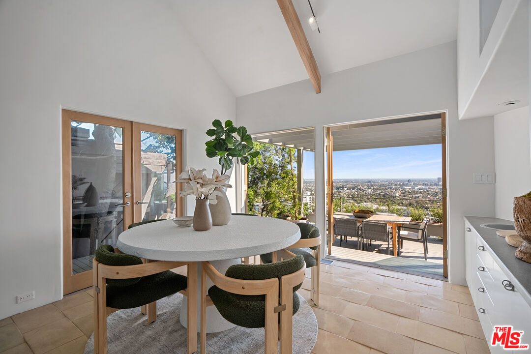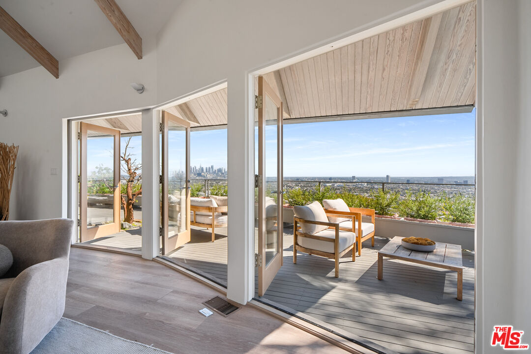 Welcome to "The Miller MCM," a mid-century modern gem perched on a striking overlook just above the Sunset Strip. THE VIEWS ARE UNINTERRUPTED. THESE VIEWS ARE EXCEPTIONAL AND RARE. From dawn to dusk, sweeping panoramic vistas stretch from the glittering skyline of Downtown Los Angeles to Century City and the Pacific Ocean, placing the city's most iconic views entirely at your fingertips. Bright, spacious interiors with high vaulted ceilings offer an architectural statement, blending Zen-inspired calm with mid-century modern elegance. The open kitchen, equipped with dual refrigerators and generous counter space, provides a perfect backdrop for entertaining against endless city-to-ocean panoramas. The top floor is a private master retreat, complete with expansive walk-in closets, a cozy fireplace, and a sun-drenched terrace capturing the horizon in every direction. A dedicated studio space offers a tranquil and creatively inspiring environment, ideal for yoga, meditation, or use as a home office. This is paired with a primary bathroom suite featuring a sauna, creating a sanctuary for wellness and reflection. Outside, secret garden enclaves and terraces provide privacy and serenity, while the expansive lot is perfectly oriented to frame the panoramic views and elevate the outdoor experience. "The Miller MCM" is more than a home, it's a canvas to manifest your private peaceful retreat, combining mid-century modern elegance, architectural creativity, and the dramatic panoramas of Los Angeles.