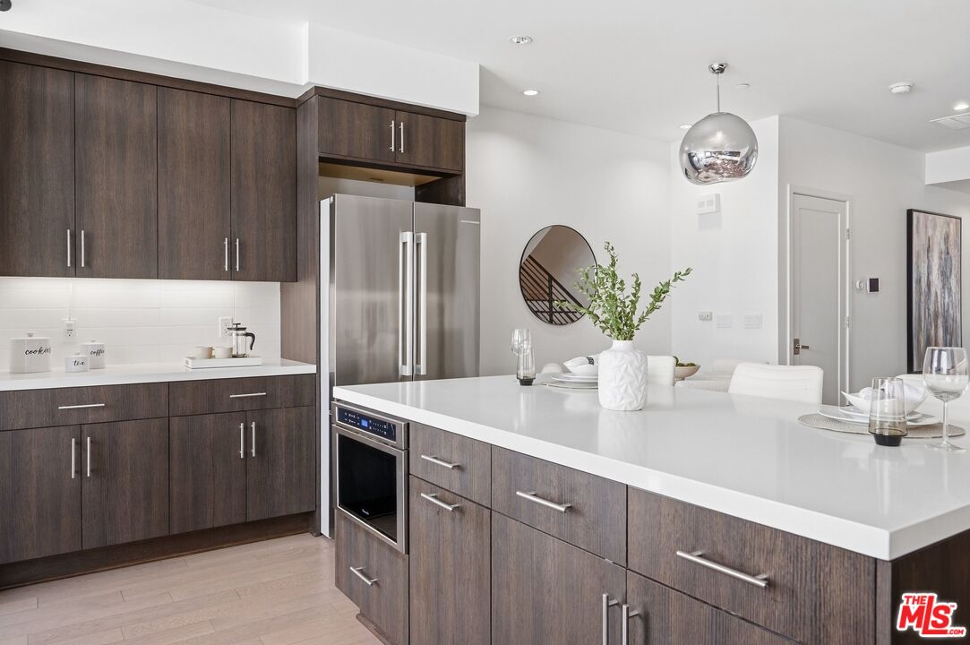 Stunning panoramic city and sparkling city light views from double rooftop terraces crown this beautiful modern 3 stories residence in the heart of Hollywood. Professionally designed, this 3BD/4BA home showcases exceptional craftsmanship, high-end finishes, and a bright open-concept floor plan with soaring ceilings, wide-plank wood floors, and floor-to-ceiling windows. The gourmet kitchen features a large center island, custom cabinetry, Caesarstone countertops, and premium Bertazzoni, Bosch, and Thermador appliances. Spa-inspired bathrooms include Toto toilets, bidets, Italiana Ceramica sinks, and Grohe fixtures. The top level is an entertainer's dream with expansive rooftop decks, wood decking, retractable awning, BBQ, and breathtaking views. Additional highlights include direct access from a private 2-car garage, custom walk-in closets, filtered water system, LED lighting, Sono's audio, and smart home features with Alexa and Nest. Ideally located near Runyon Canyon, West Hollywood, and top dining and nightlife.