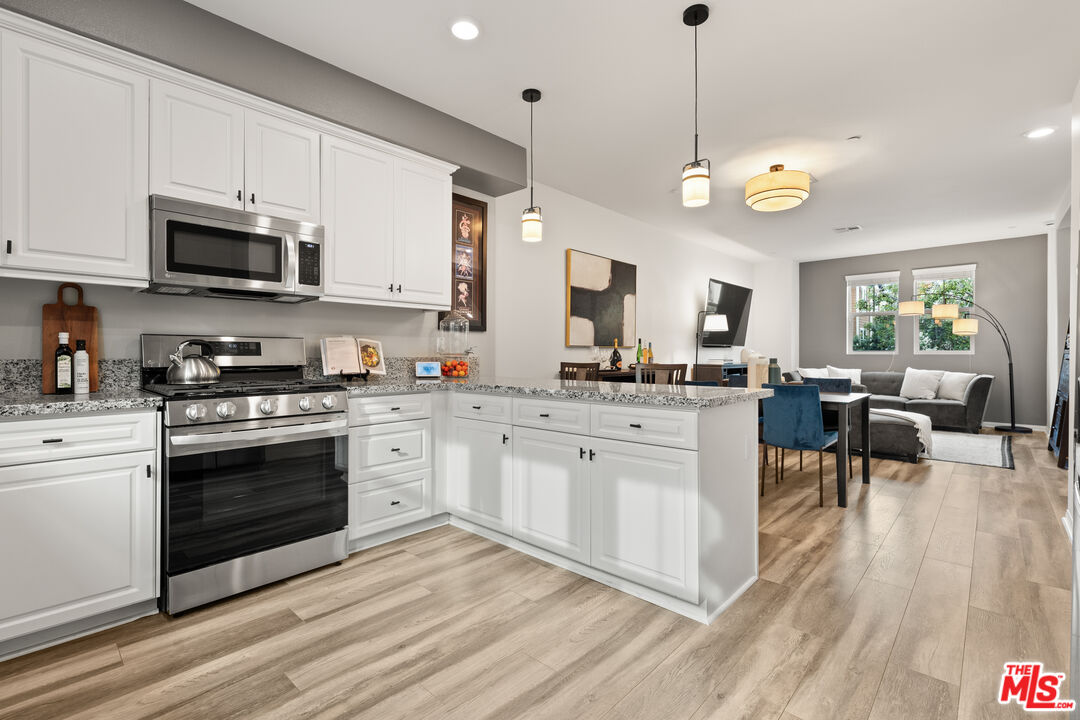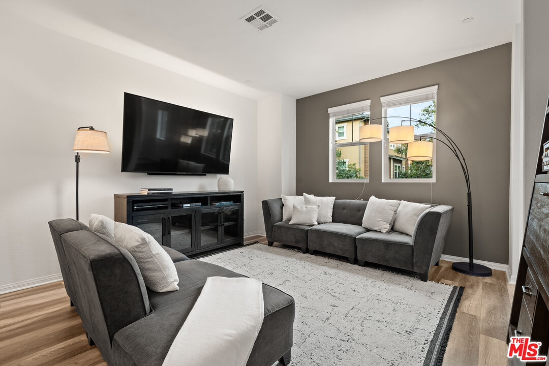 Welcome to 14109 W Birch Ln, a contemporary 3-story townhome offering the perfect blend of elegance and practicality in one of the San Fernando Valley's most convenient locations. Featuring 2 bedrooms, 2.5 bathrooms, and 1,520 square feet of thoughtfully designed living space, this residence showcases modern updates and refined finishes throughout. Step inside to discover an inviting open-concept layout highlighted by laminate flooring, recessed lighting, and granite countertops that elevate every detail. The kitchen shines with white cabinetry & newer stainless steel appliances for effortless functionality. New light fixtures and updated half bath add a touch of sophistication to the main level. Upstairs, the primary suite offers comfort and style with a dual vanity bath and walk-in closet, while smart home features such as a Nest thermostat, doorbell camera, and security system provide modern peace of mind. Enjoy the convenience of an attached 2-car garage, central heat and A/C, and eco-friendly readiness with prewiring for solar and an EV charger.Ideally situated in the center of the valley, this home is just minutes from top shopping, dining, parks, and entertainment. Whether you're relaxing at home or exploring all Van Nuys has to offer, this townhome presents a rare opportunity to experience urban comfort with modern flair.