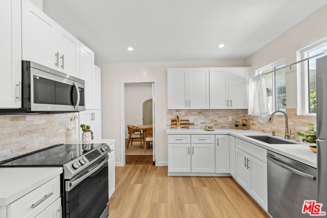 Welcome to this Charming Historical Tudor Revival Home. A timeless and beautifully maintained residence, nestled on a spacious lot offering endless possibilities for expansion, income generation, or multi-generational living. Set on nearly 10,000 sq. ft. of land, this property is ideal for those seeking classic charm, modern comfort, and incredible potential including space for a detached ADU, guest house, or studio. Step through the inviting arched entryway into a sun-filled living room where original character details meet contemporary style. Gorgeous curved ceilings, gleaming hardwood floors, and a statement fireplace create a warm and welcoming ambiance, while oversized windows flood the space with natural light and offer lovely views of the landscaped front yard. The dining room is an entertainer's dream, featuring elegant French doors that open to the backyard, creating a seamless indoor-outdoor flow perfect for gatherings, al fresco dining, or relaxing evenings. The thoughtfully updated kitchen is bright and functional, boasting stainless steel appliances, quartz countertops, and ample cabinetry with an adjacent breakfast nook that overlooks the garden, ideal for casual meals or morning coffee.The home's bedrooms are light, airy, and designed with comfort in mind, while the bathroom retains its vintage charm with tasteful updates. Throughout the home, original architectural elements have been carefully preserved, blending character and modern convenience.The expansive lot is the true showstopper offering more than enough room to add a detached ADU, build a guest house, expand the main residence, or create the ultimate outdoor oasis with a pool, garden, or entertaining space. The detached garage also presents opportunities for conversion into a workspace, studio, or additional unit.Centrally located in a desirable neighborhood close to parks, shops, dining, and major freeways, this home combines charm, versatility, and investment potential a rare find that's ready to be enjoyed today and grown into tomorrow.