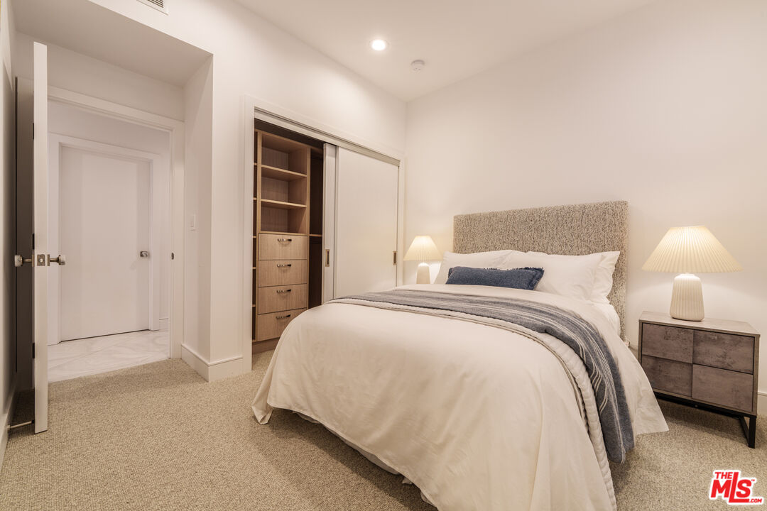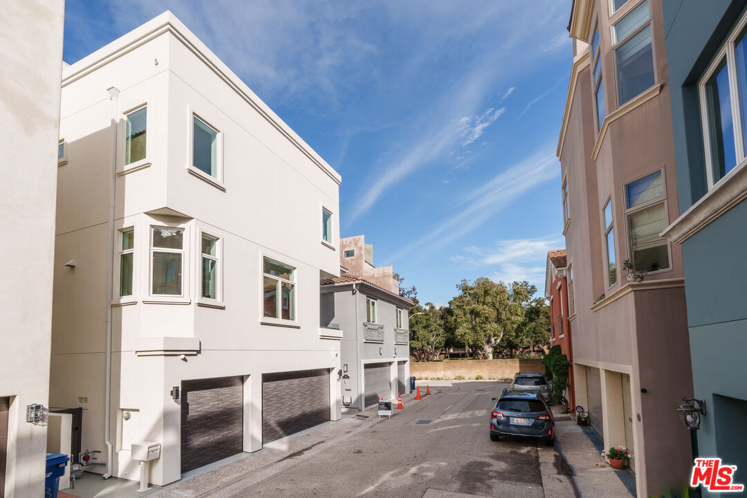 Recently completed multi-million-dollar renovation elevates this four-story architectural residence, discreetly nestled on a cul-de-sac walk street that evokes the serenity of a hidden park. This exceptional home offers an atmosphere of tranquility just steps from the beach and the Ballona Lagoon, and moments from the Marina's premier dining, boutique shopping, theaters, and picturesque canal paths. Thoughtfully designed with 4 bedrooms and 5.5 baths, the residence showcases an open-concept layout bathed in natural light, featuring Onyx white porcelain tile floors, refined custom finishes, and recessed LED lighting throughout. The gourmet kitchen is a masterpiece of design, appointed with Quartzite Naica countertops, a waterfall island, marble Arabescato Silver Honed backsplash, luxe high-gloss and soft-close cabinetry with maple and birch interiors, and Wolf/Sub-Zero appliances. A sit-up island bar and adjoining kitchen dining area complete with a cozy fireplace and view patio create an inviting central gathering space that flows seamlessly into the butler's pantry, spacious dining area, and living room with a stunning fireplace and a balcony overlooking the walk street park. The upper level is anchored by an expansive primary suite, offering a tranquil sitting area, private terrace with greenbelt park views, and a spa-inspired bath featuring white-oak cabinetry, Carrara marble accents, dual sinks, and a generous walk-in, designer closet. Two additional upstairs bedroom suites are enriched by natural light and elevated views. The first floor hosts a maid's/guest suite and a large family room ideal for entertaining, with flexible space for an office, wine room, or playroom. A spacious private patio completes this level, providing an exceptional indoor-outdoor living environment. An elevator services all floors, including the top-level office/loft/gym/entertainment, flexible space, which opens to two expansive rooftop decks showcasing sweeping city, mountain, and peek-a-boo ocean views. Recent enhancements include new stucco, energy-efficient windows and doors, a PVC roof, updated landscaping and lighting, and a 3-car garage with new epoxy flooring. More than a home, this is a striking statement of modern design, comfort, and craftsmanship on the coveted Silver Strand.
