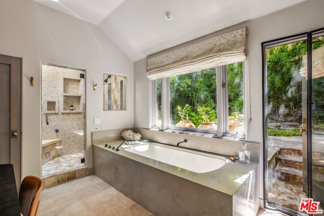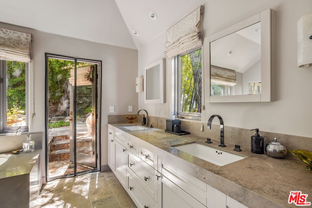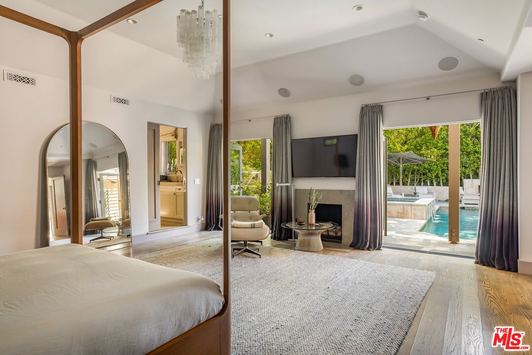 THE ULTIMATE BIRD STREETS PRIVATE OASIS. Featured in Architectural Digest and Elle Decor, this quintessential California residence offers unmatched indoor-outdoor living in one of the city's most coveted locations. Each bedroom opens to its own private outdoor space or the secluded backyard, which features mature lush landscaping, a pool/spa, a fully equipped outdoor kitchen, dining area, and fireplace. The three-bedroom home is outfitted with security cameras throughout and includes an automated Crestron system. A separate guest unit with full bath sits above the garage, completing this thoughtfully designed property. Gated entry plus additional parking in front. A rare paradise in the heart of the Bird Streets.