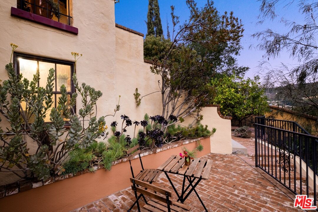 Set above the street in Verdugo Woodlands, this 1933 Spanish Colonial enjoys the kind of privacy and outlook usually found higher in the hills. Curved stucco lines, tiled steps, and wrought-iron railings guide the approach, hinting at the architecture waiting inside. The living room sets the tone with stenciled timber beams, a carved fireplace, arched thresholds, and windows that draw the landscape into the room.Just beyond it, the dining room connects naturally to a large modern kitchen with generous workspace, ample storage, and a broad window over the sink. A den and sunroom extends the living room and opens through French doors to the upper patio, where hillside views become part of daily life.The main floor includes two bedrooms, with the primary suite offering an adjoining alcove suited to an office or dressing area. The original bath remains beautifully intact with its mint tile, black trim, and period hardware. A second flexible room near the lower-level utilities provides another quiet corner for work or projects. The permitted ADU sits slightly downstairs from the main floor and includes its own entrance, patio, kitchenette, wet bar, living area, bedroom, and bath. It works easily as a guest suite or a more independent retreat for longer stays or focused work. Terraced spaces wind across the property, forming a series of landings and patios that feel tucked into the hillside. Mature plantings, gorgeous trees, shifting light, and the enchanted treehouse give the grounds a quiet, almost storybook quality, creating inviting spots for entertaining, unwinding, or spending time outdoors. A circular driveway and lower-level garage offer welcome convenience. Rooted in its 1933 architecture and surrounded by layered outdoor living, this Spanish Colonial feels both private and connected to the landscape, offering a quiet foothold in one of Verdugo Woodlands' most appealing pockets.