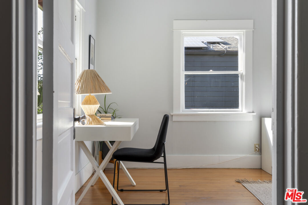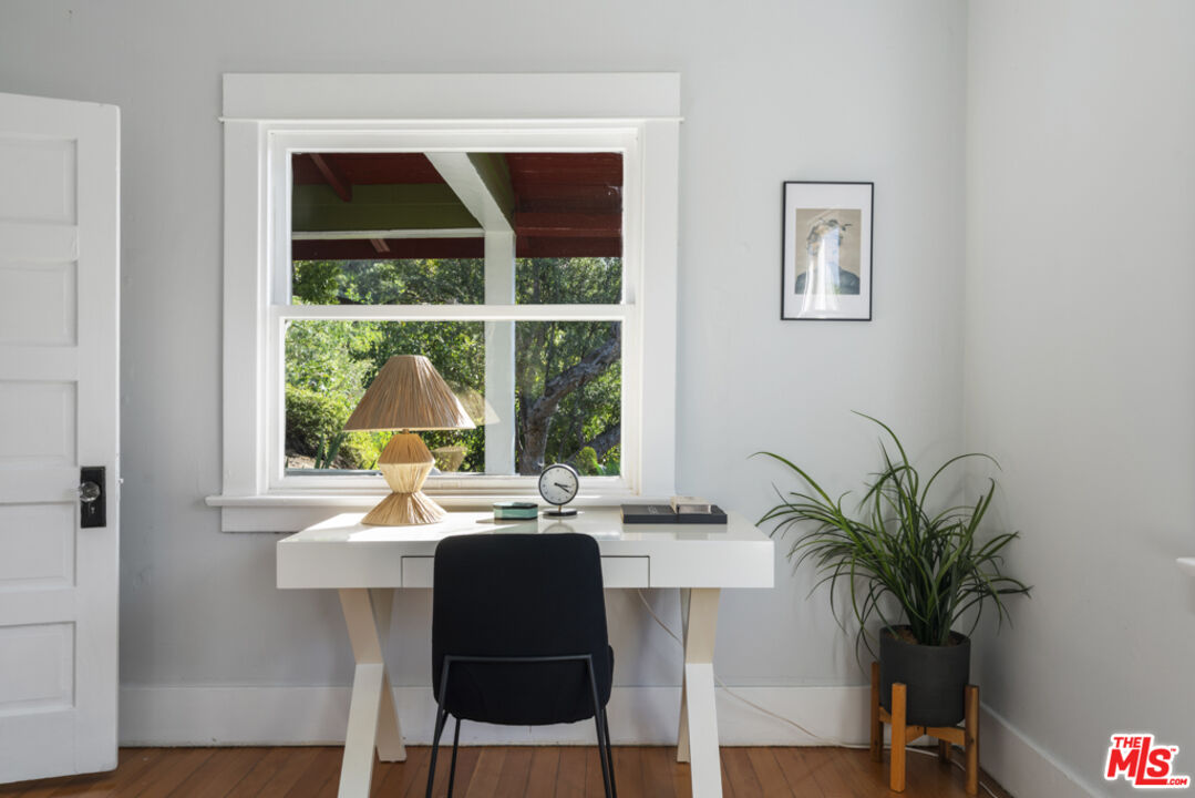 Perfect starter home in coveted Elysian Heights. Tucked into a quiet hillside with views to the north and south, this classic 1912 bungalow offers a rare opportunity to reimagine a piece of the neighborhood's early charm. A welcoming front porch invites slow mornings with coffee or relaxed evenings with a glass of wine, as owls call from the canyon and hawks ride the thermals above Kite Hill. The home has been recently painted inside and out, and the wood floors beautifully refinished. Enter directly into the living room, anchored by a whimsical decorative fireplace, and continue into the kitchen, a generous space awaiting your vision. The primary bedroom is unusually spacious and adaptable to a variety of uses. A second bedroom is tandem, more akin to a sleeping porch or study, offering a peaceful spot to take in the soft northern light and mountain vistas. The lower level, accessed from the backyard, is a perfect project room or workshop. And, the yard itself has both a gated dog-friendly area and an inviting space to entertain. Beyond, the wooded lot descends to Donaldson and presents a dream canvas for landscaping, with ample space to imagine the addition of an ADU. Avon Terrace is an opportunity to shape something truly your own in one of Elysian Heights' most beloved hillside enclaves.
