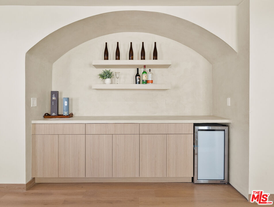 Organic Elegance in Every Detail. Nestled in a charming, close-knit pocket community within the award-winning Kester Elementary School District, step into this serene, design-forward 4-bedroom, 3.5-bath retreat with a bonus detached office, where natural textures and creamy tones set a calming tone throughout. The home features white oak flooring, custom white oak cabinetry, and a stunning white oak kitchen topped with a refined Boticcino marble slab. Sunlight floods the cozy living spaces through skylights and expansive windows, while French doors open to a tranquil backyard oasis complete with an outdoor BBQ, sunken fire pit, and lush landscaping perfect for entertaining or quiet evenings under the stars. Thoughtfully designed custom closets, a built-in bar, a detached office, and a private driveway with parking for three cars add functionality to this refined, organic home. A harmonious blend of warmth, minimalism, and natural light this is your sanctuary.