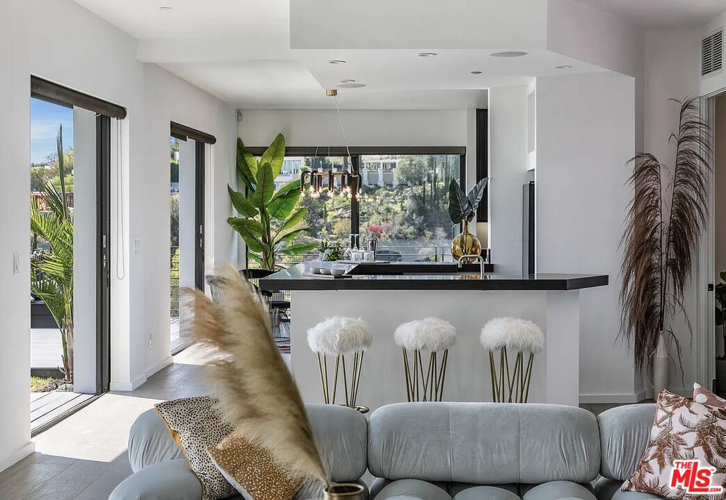 A newly reimagined contemporary estate showcasing dramatic 360-degree views, perched in the prestigious Bird Streets at the end of a serene cul-de-sac just above the Sunset Strip. Secure and secluded, the residence commands sweeping sightlines from Downtown Los Angeles to Century City and out to the Pacific coastline.Thoughtfully designed for effortless indoor-outdoor living, the main level features a bright, open layout with Fleetwood sliding glass walls that extend to more than 1,450 square feet of wraparound terrace space. Lush, mature landscaping surrounds the property, which also includes a direct-entry two-car garage and a separate service access to the kitchen.The outdoor setting evokes a private resort, highlighted by a rare flat grassy yard, a saltwater pebble-finish pool and spa, sunken fire lounge, outdoor sauna, built-in kitchen, and an entertaining pavilion. Inside, the chef's kitchen is appointed with top-tier Viking, Miele, and Sub-Zero appliances.The home offers four generously sized en-suite bedrooms, including a luxurious primary suite with dual spa-inspired bathrooms complete with a steam shower, soaking tub, and bidet, along with an expansive walk-in closet. A private approximately 850-square-foot rooftop-style terrace off the primary suite captures striking city and canyon views.Additional features include a dedicated screening room with projector and Sonos audio, an upper-level lounge, and elevator service to every floor. A rare opportunity to own a private retreat in one of Los Angeles' most sought-after hillside neighborhoods.