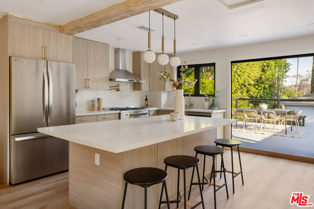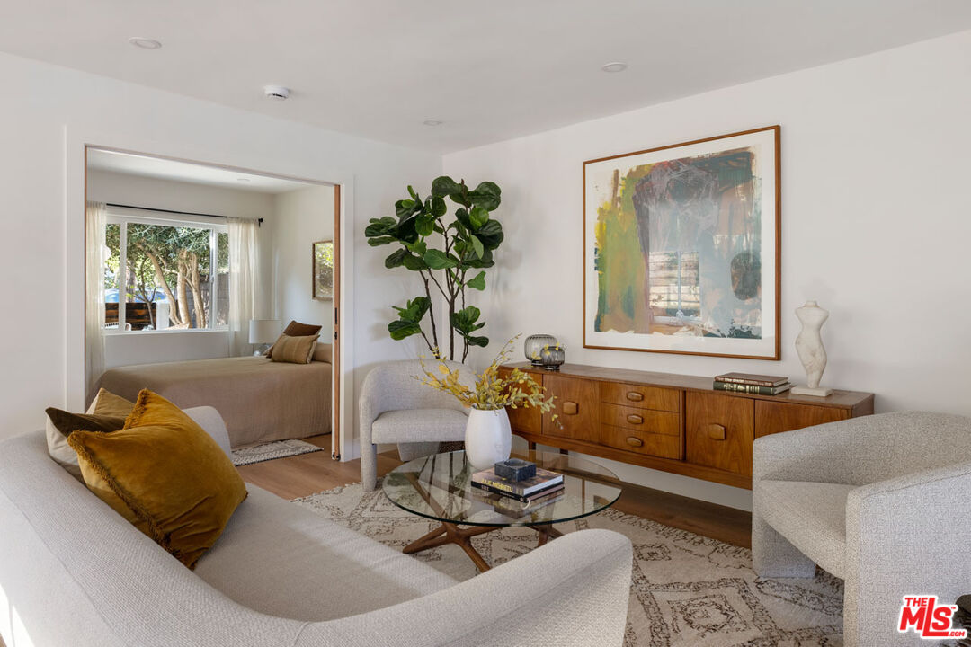 Have it all in Silver Lake with this updated compound featuring a spacious ADU and a lush private yard. The expansive layout flows across two levels, with a light-filled great room and wood floors throughout. The beautifully rendered kitchen provides a center island and stainless appliances; glass sliders open to a large deck, a sunny spot for coffee and meals. Three bedrooms and an additional flex space/office provide versatility for life and work; the bright en suite primary enjoys direct access to the backyard. The two-bedroom ADU with its own entrance is fully detached, a dream setup for guest quarters or rental with scenic views. Unwind or dine alfresco in the private, verdant backyard. Amenities include central AC, laundry, and a garage with EV charger. Access is easy to the Reservoir and Sunset Junction with countless options for food and beverages at L&E Oyster Bar, Bar Bandini, Van Leeuwen, and more.