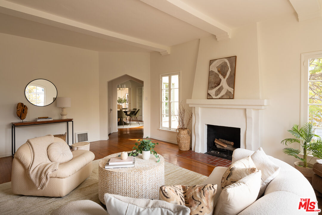 Incredible 1931 Spanish-style home filled with timeless charm and original details. The elevated front-facing living room features soaring, beamed ceilings and a picture window that floods the space with natural light. Entertain friends in the formal dining room or enjoy family meals in an inviting eat-in kitchen offering the perfect balance of style and function. The versatile floor plan offers two bedrooms upstairs and two downstairs, providing flexibility for family, guests, or a home office. A spacious family room flows seamlessly to a private outdoor patio with a built-in barbecue ideal for effortless entertaining. Beyond the patio, step up to a lush, romantic grassy yard, an inviting retreat for relaxation, meditation or the perfect play space for children. Positioned within the coveted Fairburn Avenue Elementary School neighborhood of the Los Angeles Unified School District, this home also is a short distance from UCLA campus and medical center, The Hammer Museum, Westwood Blvd shopping including upscale grocery shopping at Bristol Farms and Sprouts; acclaimed dining, Westfield Century City shopping, movies and dining, cultural landmarks, and everyday conveniences. Westwood's dynamic, sophisticated lifestyle is truly at your doorstep. Private Showings not available until after September 28th.