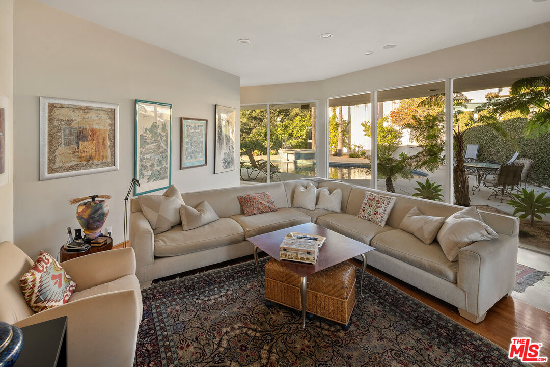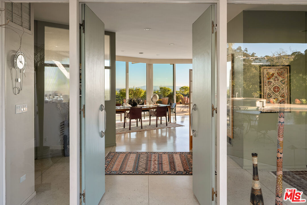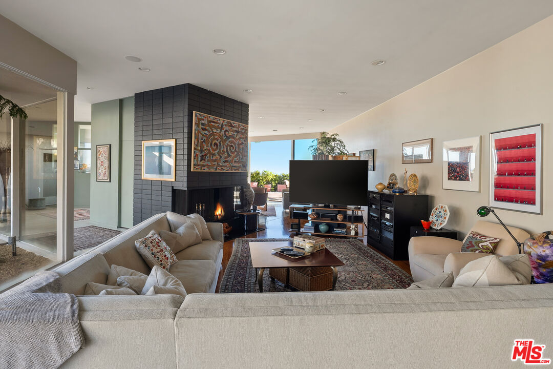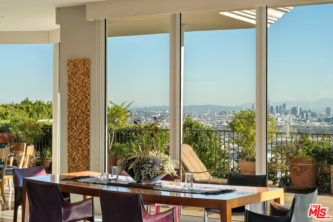 Set on a premier promontory above the city, 1515 Blue Jay Way commands sweeping, unobstructed views from downtown Los Angeles to the Pacific Ocean. A classic mid-century glass house, the residence is defined by expansive walls of glass, exceptional privacy, and a powerful connection to light, landscape, and sky. A large, gated motor court and gated loggia entry lead to loft-like living spaces filled with natural light and oriented entirely toward the view. The architecture is authentic and intact, with clean lines, generous volumes, and a distinctly mid-century sensibility that feels both timeless and personal. The home offers four bedrooms and three and one-half baths, including a generous primary suite with large closets. Outdoors, a private pool and pool deck hover above the city, creating a tranquil, elevated setting for indoor-outdoor living. Architectural, private, and view-driven, 1515 Blue Jay Way stands apart for its position, privacy, and outlook - an enduring presence on one of the most iconic streets in the Hollywood Hills.