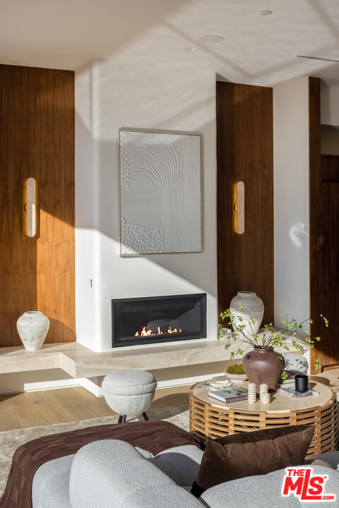A rare new construction offering above the legendary Chateau Marmont, below the iconic Stahl House, and just minutes from the vibrant Sunset Strip - 1525 Marlay Drive defines modern Hollywood Hills luxury living. This newly completed architectural masterpiece offers sweeping jetliner views from downtown to the ocean, seamlessly blending sophisticated design with effortless indoor - outdoor living. The thoughtfully designed floor plan features four en-suite bedrooms, a theater with wet bar, an elevator, an indoor green wall, and a top-level primary suite complete with a private lounge, a steam shower, and a Calacatta Viola clad spa-like bath. Expansive, fully retractable glass doors open to outdoor living spaces that include a sparkling pool, summer kitchen, fire pit sitting area, and panoramic city and Sunset Strip views. Designer finishes throughout feature walnut cabinetry, Taj Mahal quartz and leathered granite countertops, herringbone Italian lime flooring, custom travertine sinks, plaster walls, a striking all-brass kitchen vent, and a dramatic double-wide glass pivot entry door. Additional features include surround sound, a laundry chute, and a two-car garage with ample gated driveway parking. Each bedroom opens to its own balcony framing the skyline, while a separate downstairs guest suite offers privacy and its own wet bar. A true entertainer's paradise and serene retreat in one, this residence exemplifies prime Hollywood Hills living.