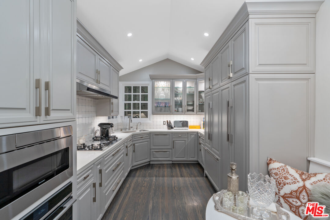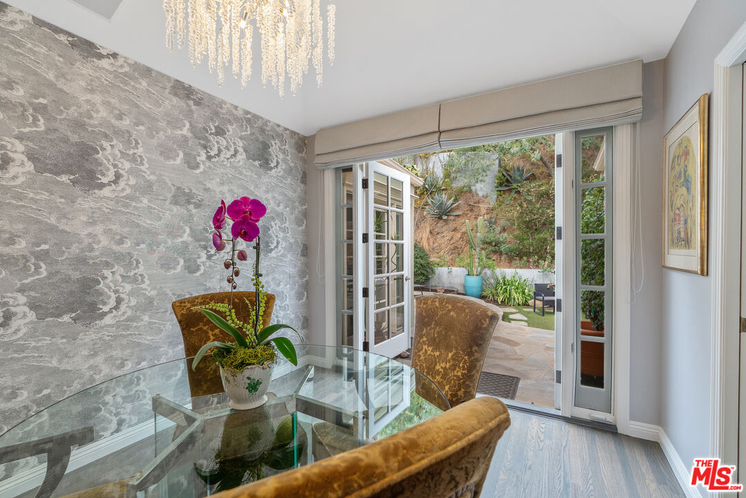 Stunning Sunset Strip Hideaway Tucked away on a quiet cul-de-sac in the heart Sunset Plaza, this completely reimagined Traditional blends timeless elegance with a fresh, updated modern feel. Step inside through a gracious entry into a sunlit living room featuring a marble fireplace, crown moldings, and expansive views of greenery and the cityscape in the distance. The formal dining room opens with French doors to a private outdoor oasis, perfect for intimate dinners or weekend brunches. A main feature of the home is a designer chef's kitchen, overlooking the yard and featuring custom finishes, a breakfast nook, and a full-sized laundry with abundant storage. Each of the three ensuite bedrooms is tucked in its own private wing for ultimate comfort. The primary retreat which overlooks the yard stuns with soaring ceilings, fireplace, a spa-like bath with oversized walk-in shower, soaking tub, and a dream-worthy closet. Outdoors, the lushly landscaped yard is made for entertaining, lounging, and soaking up the California sunshine. A chic patio off the guest suite offers additional views of the city lights - perfect for evening cocktails. Additional highlights include a powder room, central heat/air, hardwood floors, a walk-in tool shed, and a two-car garage. Located minutes from the legendary Sunset Strip, West Hollywood, and Beverly Hills, this is more than a home - it's a lifestyle. Truly a showstopper.
