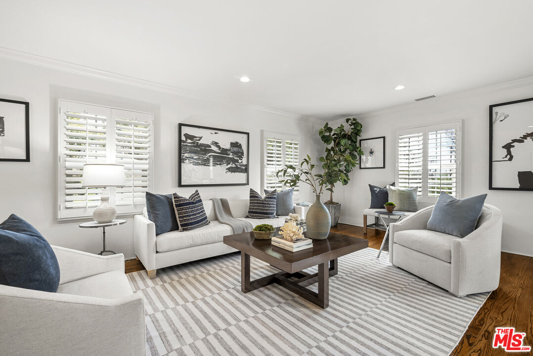 Charming turn-key 1-level traditional in sensational Palisades Via de la Paz Bluffs neighborhood. Property offers great curb appeal and is a short stroll to the Palisades Village. Tasteful updates include remodeled baths, kitchen, lighting, central heat, windows, automatic garage door, 2 tankless water heaters, washer/dryer and more! Lovely details throughout add to the charm: wood floors, wainscoting, moldings, and 2 attractive fireplaces. Excellent floor plan includes formal dining room, family room off the kitchen opening to the back yard, and a separate laundry room. Spacious 7471-foot lot adjacent to rear alley provides room for pool, play areas, out door dining, lounging, and gardens.