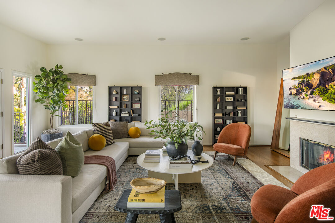 Set on a quiet cul-de-sac south of the Boulevard in the heart of Sherman Oaks, this beautiful tri-level estate captures sweeping city views from nearly every room, with multiple balconies designed to take full advantage of the setting. Offering 6 bedrooms and 4.5 baths, the home delivers a thoughtful, flexible layout that balances everyday comfort with effortless entertaining. The private entry level features a generous bedroom with en-suite bath and an expansive bonus room, ideal for guest quarters, home office, gym, playroom, or media space. The main living level is bright and open with windows throughout, anchored by a spacious family room with hardwood floors, built-in sound system, fireplace, and wet bar, flowing easily to balcony seating for indoor-outdoor living. A warm living room, dining area framed by city views, and contemporary kitchen with center island, built-in appliances, and granite countertops create a natural gathering space, with direct access to an outdoor patio for relaxed al fresco dining. An additional bedroom currently used as a home gym, full bath, and laundry room complete this level.Upstairs, four bedrooms and three full baths provide a true retreat, highlighted by a vaulted primary suite with fireplace, dual walk-in closets, hardwood flooring, and a beautifully remodeled spa bath with granite counters and freestanding soaking tub. A second primary bedroom with remodeled bath, along with additional bedrooms offering walk-in closets and balcony access, complete the upper level. Outdoors, a heated lap pool and multiple entertaining patios invite year-round enjoyment while taking in the surrounding views. An oversized two-car garage offers ample storage and everyday convenience.Located minutes from top-rated schools including The Buckley School, with easy access to Ventura, Sepulveda, Whole Foods, and nearby Los Encinos State Historic Park, this residence offers a rare blend of privacy, views, and central Sherman Oaks living.