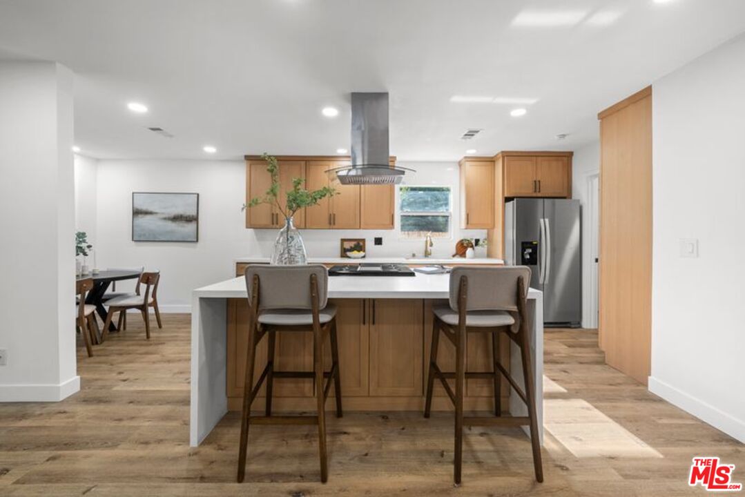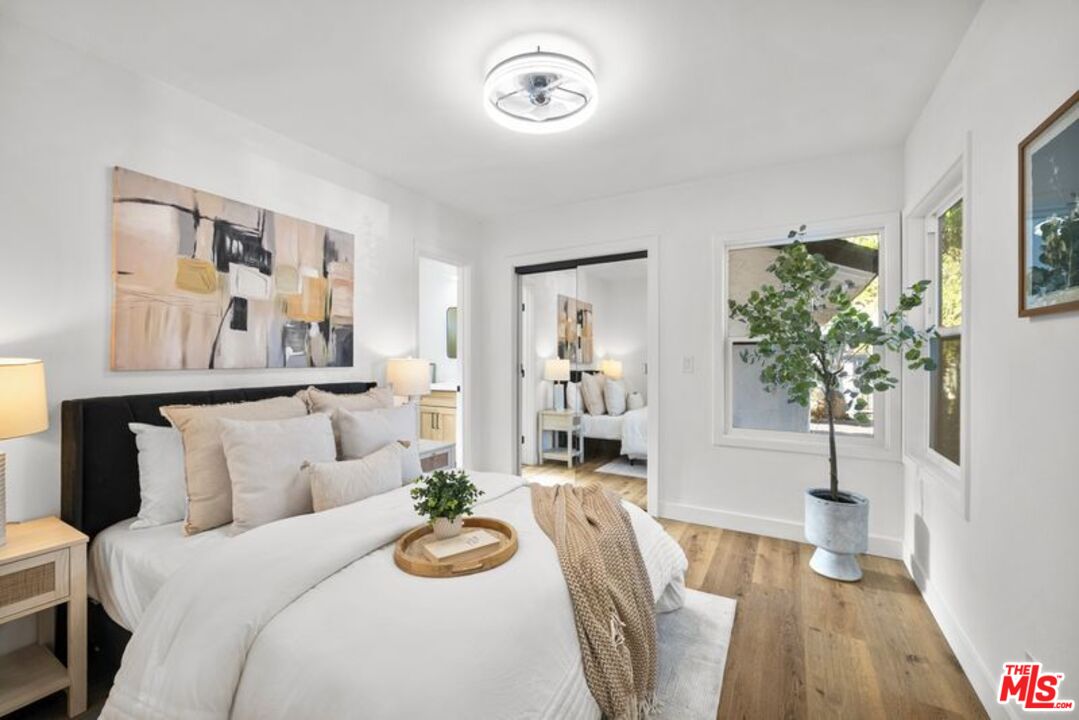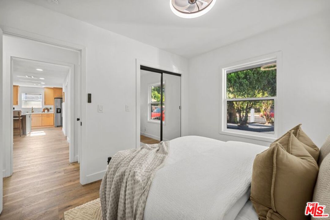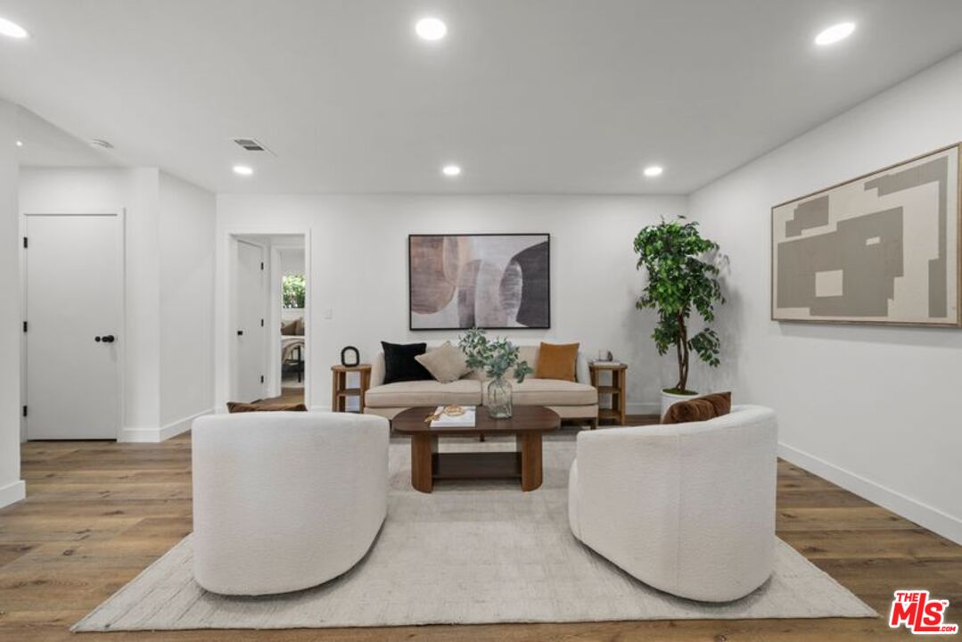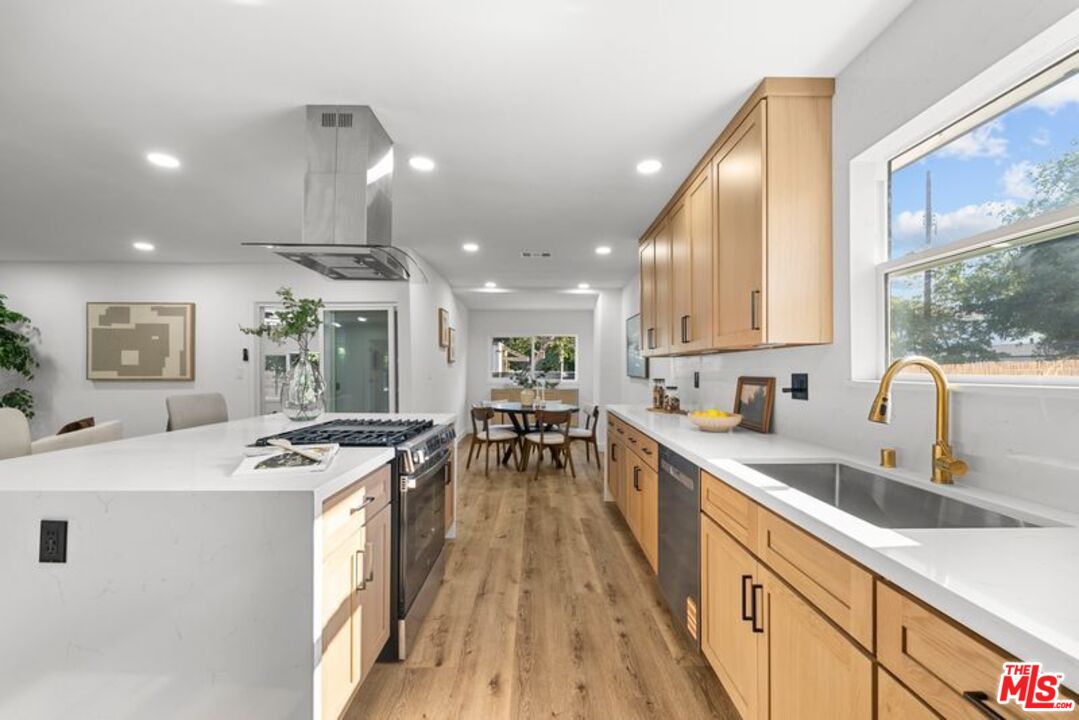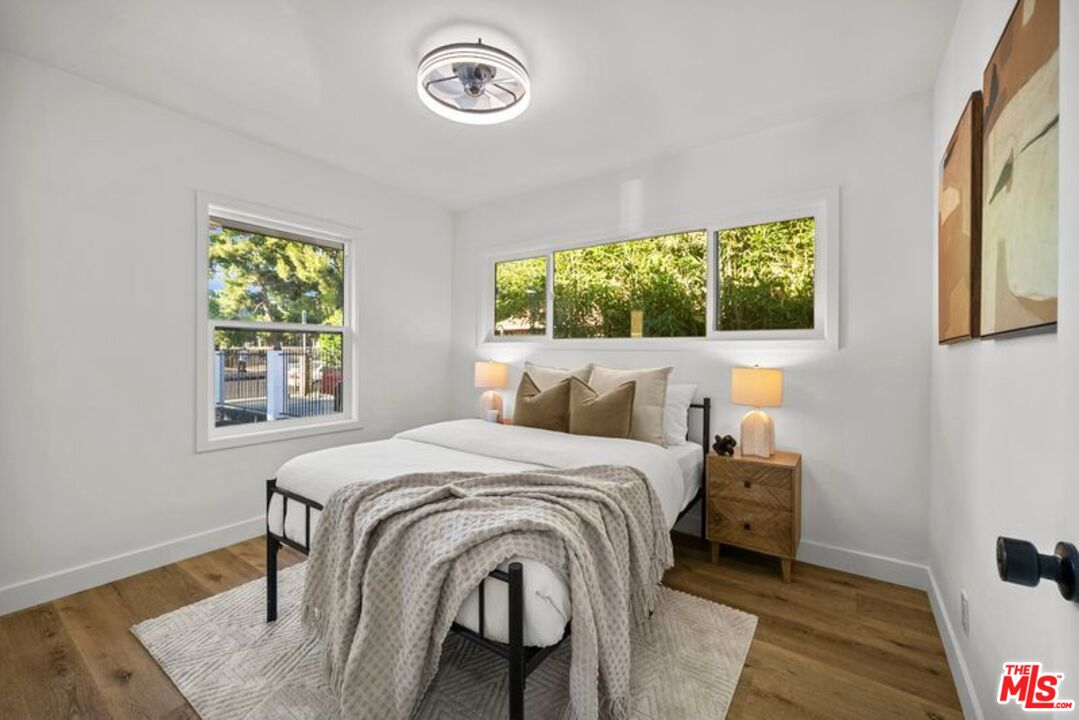 Welcome to the ultimate turnkey experience! This stunning, fully-gated modern home on a sprawling corner lot in Van Nuys offers unparalleled privacy and function perfect for a first-time buyer or growing family. Step into a bright, open-concept layout where the fully remodeled kitchen is the show-stopping heart of the home. It features a gleaming quartz waterfall island, top-of-the-line stainless steel appliances, and custom cabinetry with smart built-in USB/outlets making entertaining effortless. A formal dining area flows seamlessly from the kitchen. The versatile floor plan boasts a spacious primary suite with a luxurious en suite bath, plus two additional, well-sized bedrooms. Both bathrooms have been completely renovated for a spa-like feel. Enjoy a clean, contemporary aesthetic with new waterproof vinyl flooring, recessed lighting, and modern fans throughout. This home adapts to your life. A versatile bonus room can easily serve as a studio, playroom or fourth bedroom, complemented by a dedicated home office for remote work. The expansive, private backyard is a tranquil canvas with mature trees, ideal for al fresco dining under thoughtful dusk-to-dawn lighting. Multiple lounge areas throughout the front and back yard for maximum potential of this expansive corner lot. Every major system has been updated for comfort and efficiency: newer central HVAC (w/ Nest), a new 200-AMP electrical panel, updated plumbing, newer shingle roof, and double-pane tinted windows. Instant curb appeal is provided by the freshly painted exterior, newly paved driveway, and modern garage door. The garage is already updated with new drywall, paint, sensor lights, and an epoxy floor, making it perfectly poised for an easy ADU conversion. With the new 200 amp electrical panel and plumbing in place, you can quickly unlock potential rental income or create a private guesthouse. Parking is plentiful with a fully-gated driveway. Don't miss this opportunity to own a completely renovated Van Nuys gem!