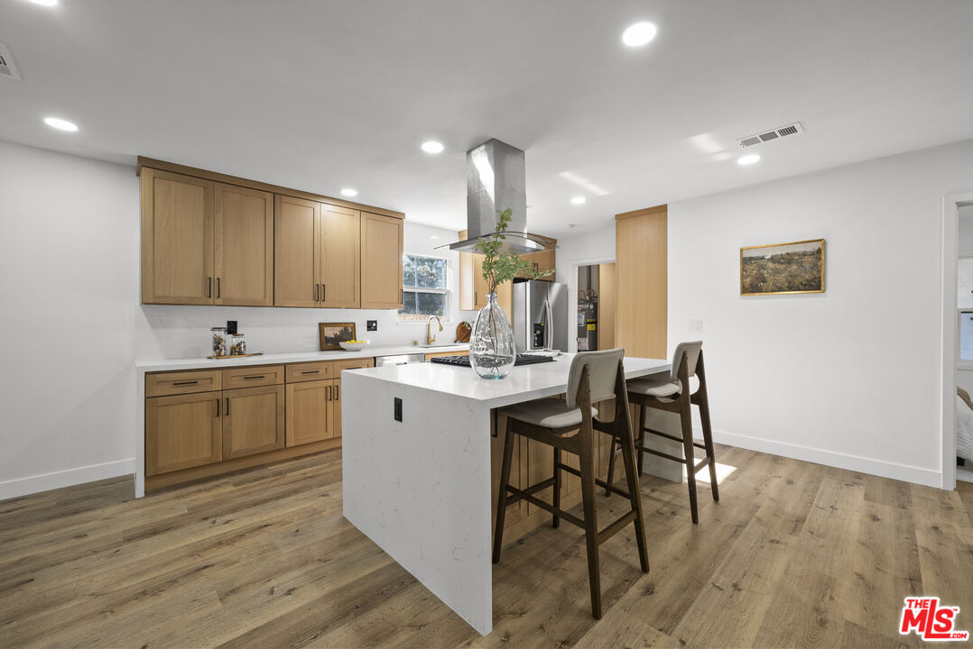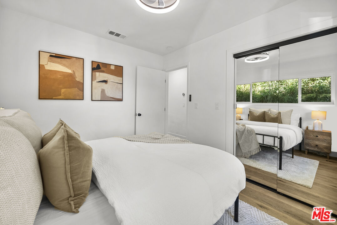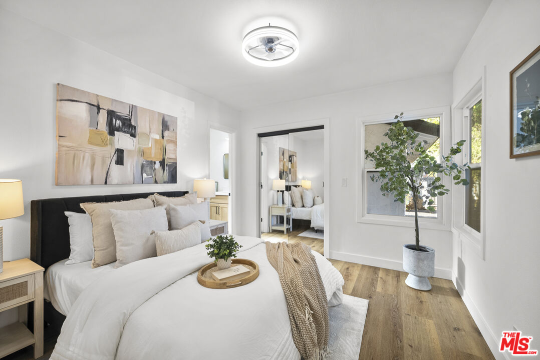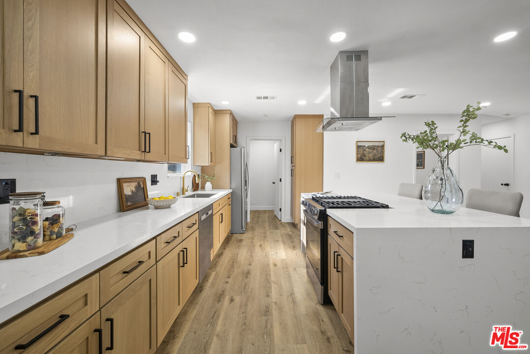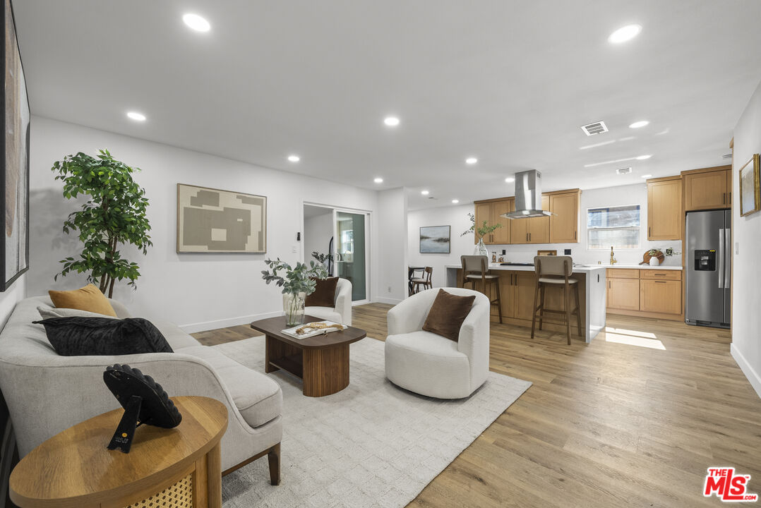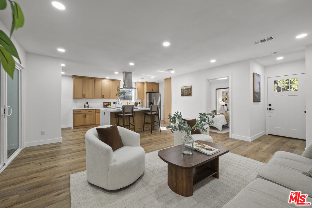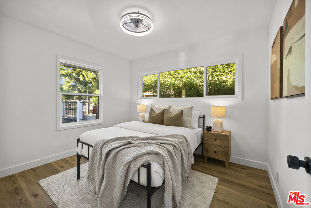 Welcome to this stunning, fully-gated modern masterpiece in Van Nuys, a home that offers the ultimate in privacy and functionality. Situated on a sprawling corner lot, this property is perfect for a first-time buyer or a growing family.Step inside and discover an open-concept layout that seamlessly connects the living spaces. The kitchen is truly the heart of the home, a fully remodeled showstopper where the gleaming quartz waterfall island and top-of-the-line stainless steel appliances make entertaining a breeze. You'll love the new custom cabinetry with under-mount lighting and the island's functional built-in USB ports and outlets, perfect for modern living and gathering with friends and family. Off the kitchen is a formal dining area that is perfect for entertaining.The versatile layout includes a spacious primary bedroom with a luxurious en suite bathroom and two additional, well-sized bedrooms. Both the primary and guest bathrooms have been completely renovated with new tile, vanities, and fixtures, creating a spa-like feel. You'll find new waterproof vinyl flooring, recessed lighting, and modern fans throughout the home, adding to the clean, contemporary aesthetic. The separate laundry area and newer water heater complete this truly turnkey opportunity.This home is designed for flexible living. A versatile bonus room can easily become a studio, playroom, or a fourth bedroom. Plus, a dedicated home office provides a quiet space for remote work. Outside, the expansive backyard is a blank canvas just waiting for your personal touch. Mature trees create a tranquil setting, while the back area is ideal for dining al fresco. The thoughtful dusk-to-dawn outdoor lighting creates a warm, inviting ambiance for evening gatherings.Every detail has been addressed for your comfort and peace of mind. The home features a newer central HVAC and heating system w/ Nest thermostat, a new 200-AMP electrical panel, and updated plumbing. A newer shingle roof and double-pane, tinted windows ensure energy efficiency and privacy. The freshly painted exterior, newly paved driveway, and modern garage door with an opener create instant curb appeal.For investors, this property offers a prime opportunity. The garage has been fully updated with new drywall, interior paint, sensor lights, and a durable epoxy floor, making it perfectly poised for conversion into an Accessory Dwelling Unit (ADU). With the new electrical panel and plumbing already in place, you can easily create potential rental income or a private guesthouse.Parking is never an issue with a gated driveway offering ample space for all your vehicles. Don't miss your chance to own this fully renovated Van Nuys gem, where modern elegance meets comfort and convenience.