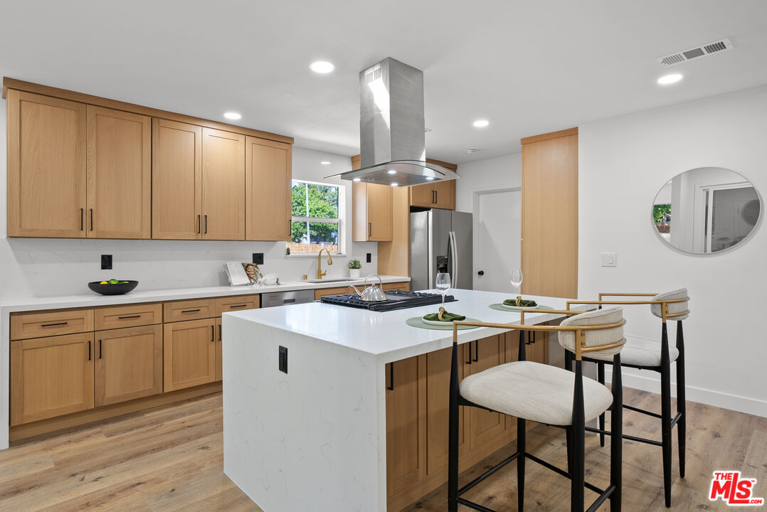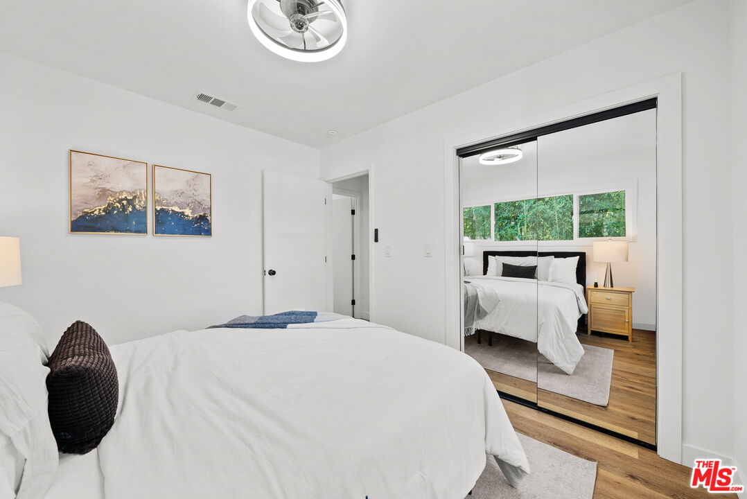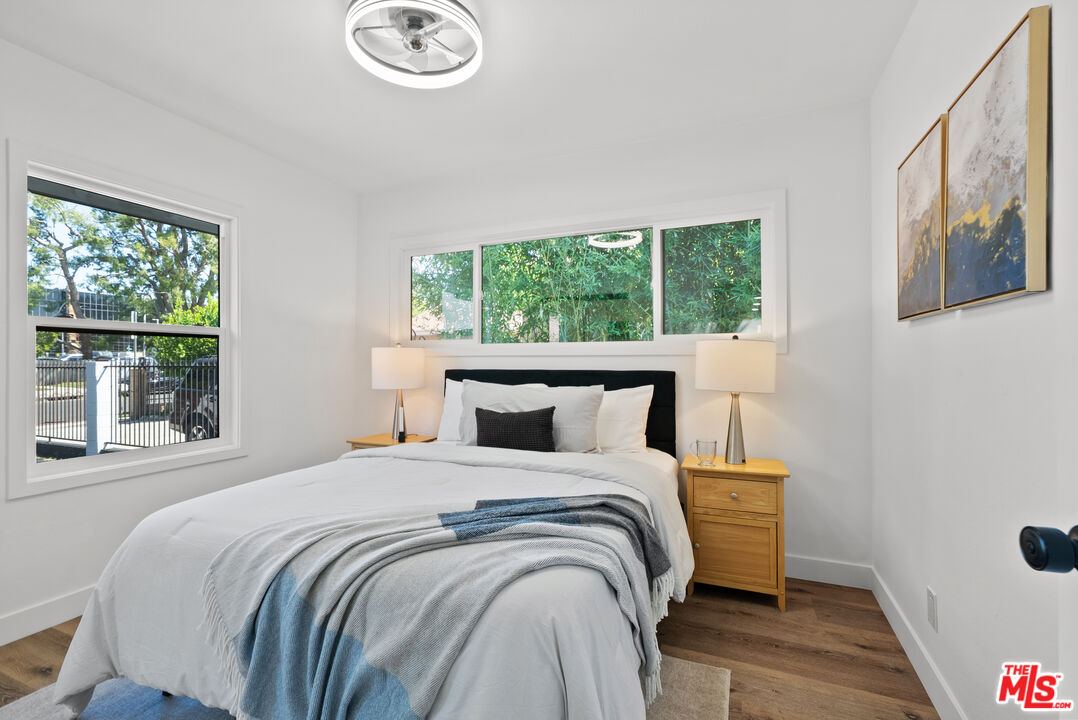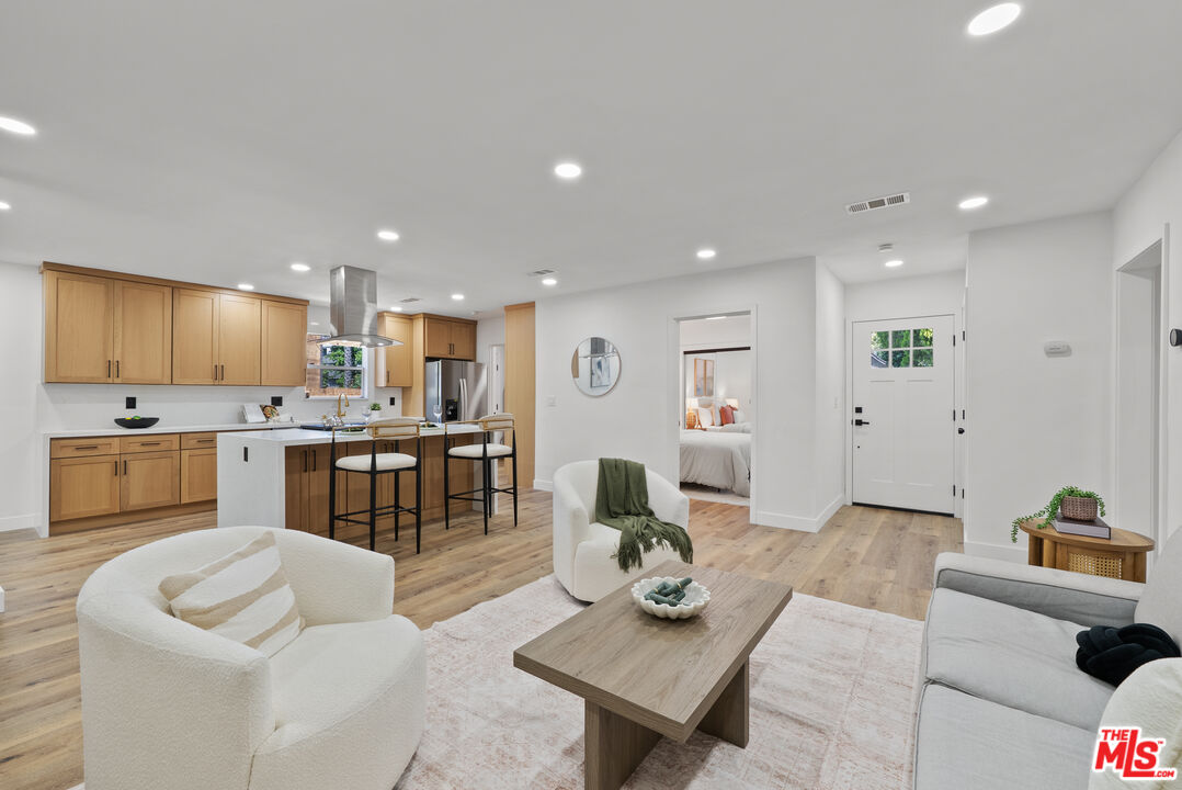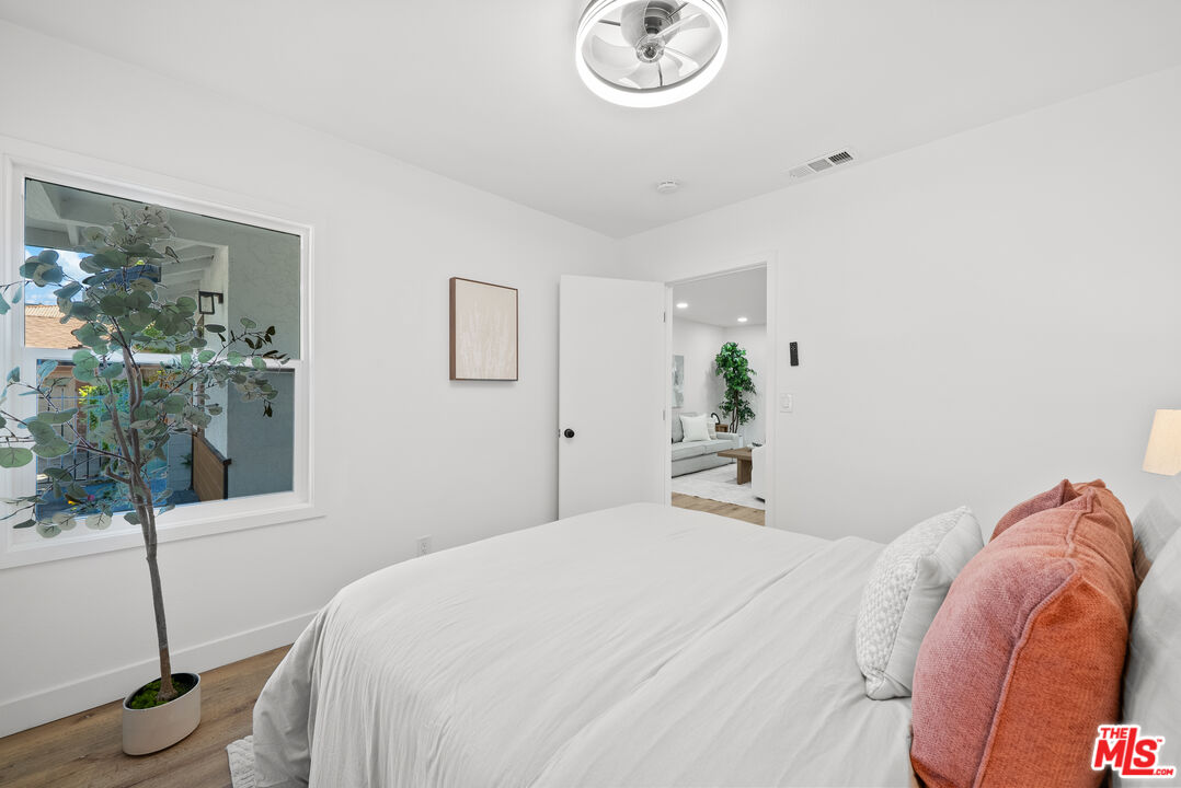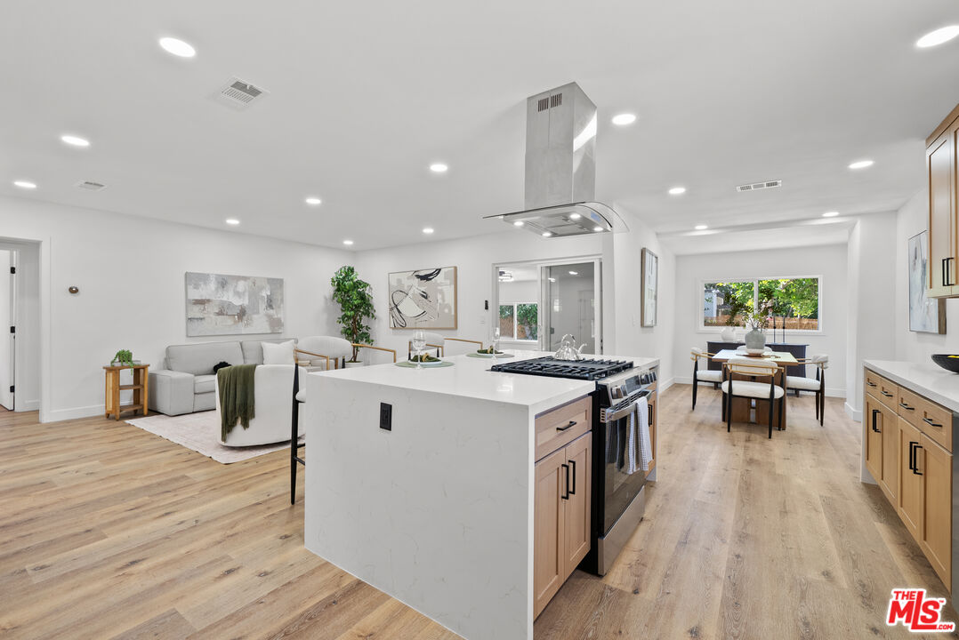 Welcome to your refreshed and redone, move-in-ready modern masterpiece! Set behind a fully gated, sprawling corner lot in Van Nuys, this turnkey property offers unmatched privacy and an exceptionally functional design suited for any lifestyle. Step inside to discover a bright, open-concept layout anchored by a spectacular, fully remodeled kitchen. Whether you love hosting grand events or enjoying quiet evenings at home, you will instantly appreciate the gleaming quartz waterfall island, premium stainless steel appliances, and custom cabinetry equipped with smart built-in USB outlets. This vibrant space flows seamlessly into the formal dining area, beautifully unified by brand-new waterproof vinyl flooring, elegant recessed lighting, and sleek modern fans that enhance the home's fresh, contemporary aesthetic. The versatile floor plan features an incredible private primary suite that serves as your personal everyday sanctuary. This exclusive retreat boasts a luxurious, spa-inspired en suite bathroom and an attached bonus flex space perfect for a private home office, a sprawling walk-in closet, a nursery, or a cozy reading nook. You will find two additional generously sized bedrooms alongside a completely renovated guest bathroom. Elevating the home's adaptability, the layout also includes a separate, flexible bonus room ideal for a creative studio, media room, a fourth bedroom or an office area, making remote work or pursuing your personal passions an absolute breeze. Step outside to discover your own tranquil, tree-canopied oasis. Multiple lounge areas scattered across the expansive front and back yards make al fresco dining and outdoor entertaining magical under thoughtful dusk-to-dawn lighting. The home radiates instant curb appeal from the street with a freshly painted exterior, an attached 2 car garage w/ new modern door, and a newly paved, fully gated driveway offering abundant parking for multiple vehicles. You can enjoy total peace of mind knowing every major system has already been upgraded: a newer central HVAC with a Nest thermostat, double-pane tinted windows, a newer shingle roof, updated plumbing, and a brand-new 200-AMP electrical panel. Maximizing the property's incredible value, the garage is perfectly primed for a rapid ADU conversion. Already outfitted with new drywall, fresh paint, sensor lighting, an epoxy floor, it is ready to be transformed into a private guesthouse, a multi-generational living space, or an income-producing rental. Don't let this stunning turnkey Van Nuys gem slip away!