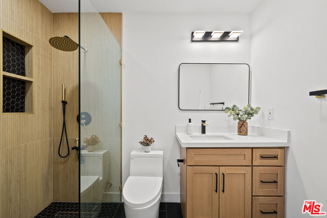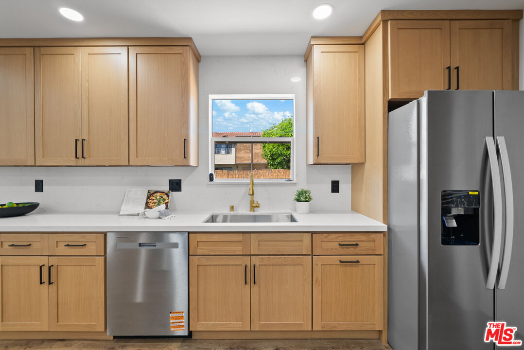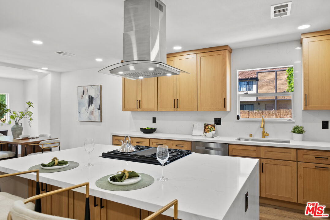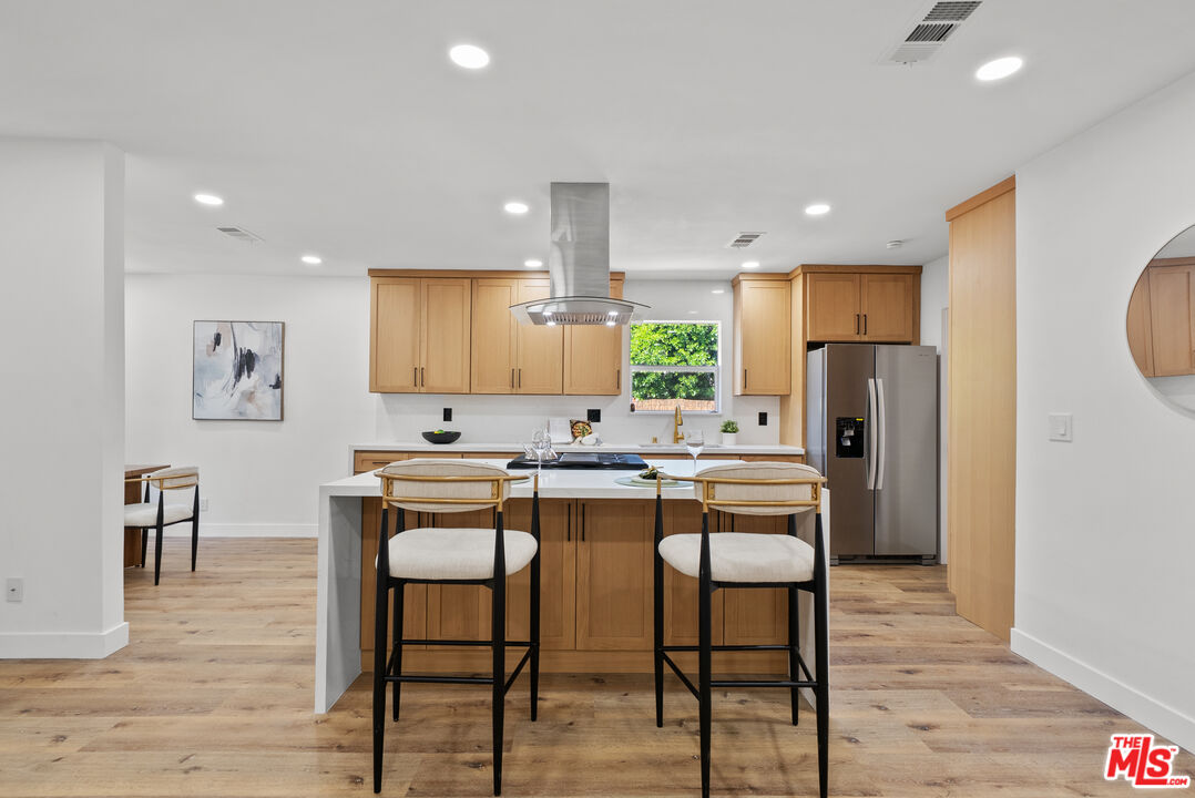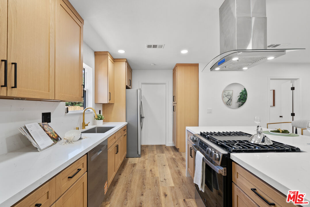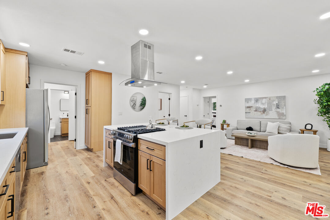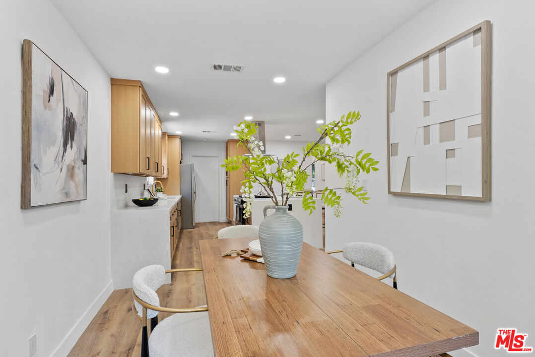 Welcome to your refreshed and redone, move-in-ready modern masterpiece! Set behind a fully gated, sprawling corner lot in Van Nuys, this turnkey property offers unmatched privacy and an exceptionally functional design suited for any lifestyle. Step inside to discover a bright, open-concept layout anchored by a spectacular, fully remodeled kitchen. Whether you love hosting grand events or enjoying quiet evenings at home, you will instantly appreciate the gleaming quartz waterfall island, premium stainless steel appliances, and custom cabinetry equipped with smart built-in USB outlets. This vibrant space flows seamlessly into the formal dining area, beautifully unified by brand-new waterproof vinyl flooring, elegant recessed lighting, and sleek modern fans that enhance the home's fresh, contemporary aesthetic. The versatile floor plan features an incredible private primary suite that serves as your personal everyday sanctuary. This exclusive retreat boasts a luxurious, spa-inspired en suite bathroom and an attached bonus flex space perfect for a private home office, a sprawling walk-in closet, a nursery, or a cozy reading nook. You will find two additional generously sized bedrooms alongside a completely renovated guest bathroom. Elevating the home's adaptability, the layout also includes a separate, flexible bonus room ideal for a creative studio, media room, a fourth bedroom or an office area, making remote work or pursuing your personal passions an absolute breeze. Step outside to discover your own tranquil, tree-canopied oasis. Multiple lounge areas scattered across the expansive front and back yards make al fresco dining and outdoor entertaining magical under thoughtful dusk-to-dawn lighting. The home radiates instant curb appeal from the street with a freshly painted exterior, an attached 2 car garage w/ new modern door, and a newly paved, fully gated driveway offering abundant parking for multiple vehicles. You can enjoy total peace of mind knowing every major system has already been upgraded: a newer central HVAC with a Nest thermostat, double-pane tinted windows, a newer shingle roof, updated plumbing, and a brand-new 200-AMP electrical panel. Maximizing the property's incredible value, the garage is perfectly primed for a rapid ADU conversion. Already outfitted with new drywall, fresh paint, sensor lighting, an epoxy floor, it is ready to be transformed into a private guesthouse, a multi-generational living space, or an income-producing rental. Don't let this stunning turnkey Van Nuys gem slip away!