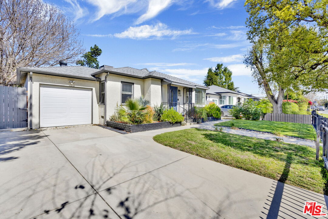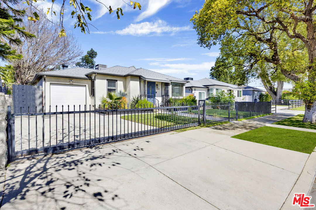 Welcome to this charming gated 3-bedroom, 2-bath home offering nearly 1,300 sq ft of comfortable living space, tucked away in a desirable pocket of Van Nuys. Bright and inviting open floor plan where the living room flows seamlessly into the dining area and kitchen, creating an ideal space for both everyday living and entertaining. The living room features recessed lighting and a large dual-pane window that fills the space with natural light. The updated kitchen features granite countertops, stainless steel appliances, a dishwasher, a microwave, and abundant cabinetry for storage. Two well-appointed guest bedrooms are served by a full hallway bathroom, while the spacious primary suite provides a relaxing retreat with recessed lighting, a walk-in closet, and an en-suite bathroom featuring a large dual-sink vanity. Step outside through the primary bedroom and discover a private backyard oasis perfect for entertaining or unwinding. Enjoy a heated pool and spa ideal for warm California summers, along with a lush avocado tree and patio space designed for outdoor dining and gatherings. Additional highlights include hardwood flooring throughout, New Exterior paint, Newer central A/C and heat, a newer roof, and a one-car garage with laundry and direct home access. Generous 6,100 sq ft lot. This home offers convenient access to the 405 freeway, shopping, and a variety of local dining options, making it a wonderful blend of comfort, privacy, and accessibility.