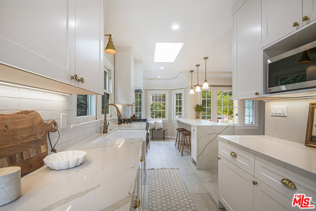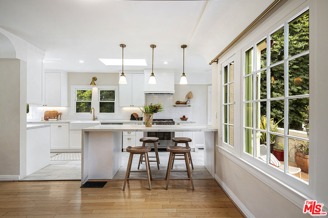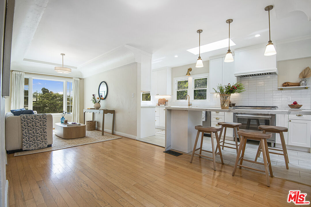 Tucked away in an exceptionally quiet hillside pocket north of Sunset Junction in Silver Lake, this 1930s character 3BR/3BA Spanish offers timeless charm paired with today's modern conveniences. With serene hillside views, the home welcomes you with a formal living room anchored by a decorative fireplace, a cozy den, and a recently renovated kitchen featuring a dining bar, upscale stainless-steel appliances, built-in wine refrigerator, and pantry. The primary suite includes a Juliet balcony, renovated bath, and generous walk-in closet, while a secondary bedroom and hallway bath complete the main level. The lower level offers a spacious permitted guest suite with its own renovated bath and walk-in closet, perfect as a private office, creative studio, or extended-stay retreat, thoughtfully separate from the main living areas .Entertain with ease on the expansive deck overlooking a private landscaped yard filled with lemon, orange, avocado, and Asian pear trees. All this, just moments from the Silver Lake Reservoir, dog park, and the vibrant heart of Sunset Junction with its endless mix of shops, restaurants, and cafes. Refer to "docs" link for detailed list of features.