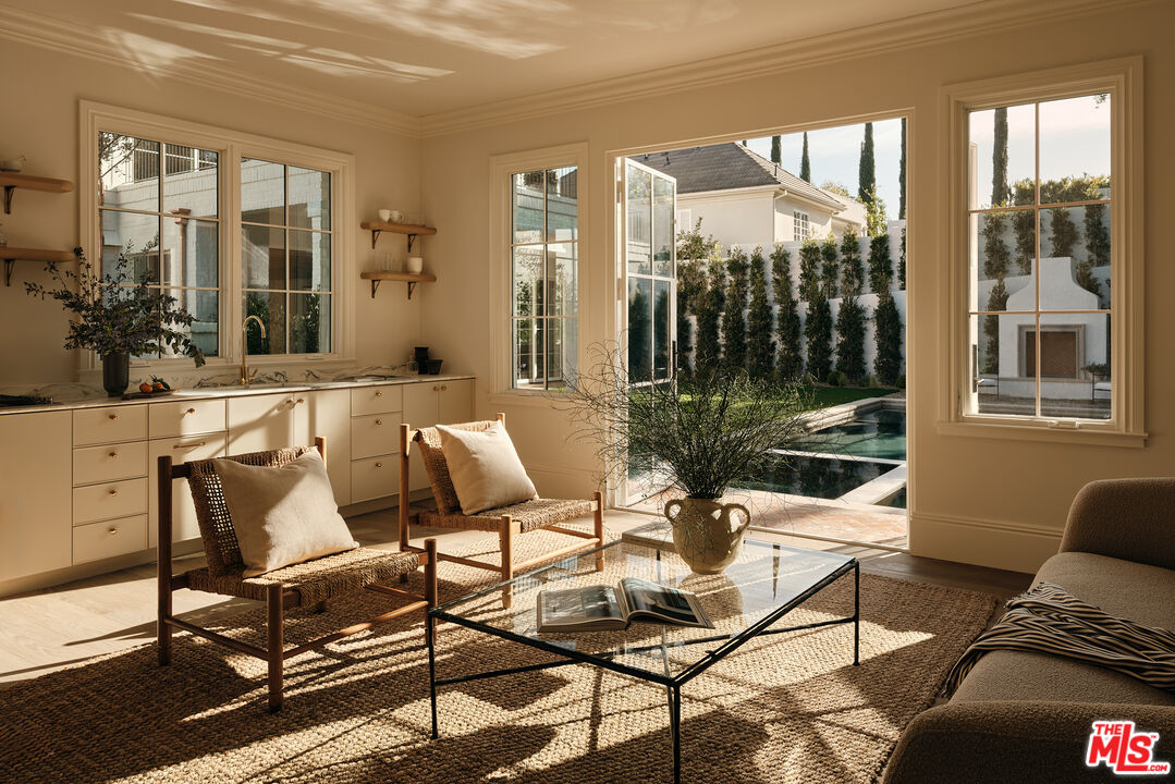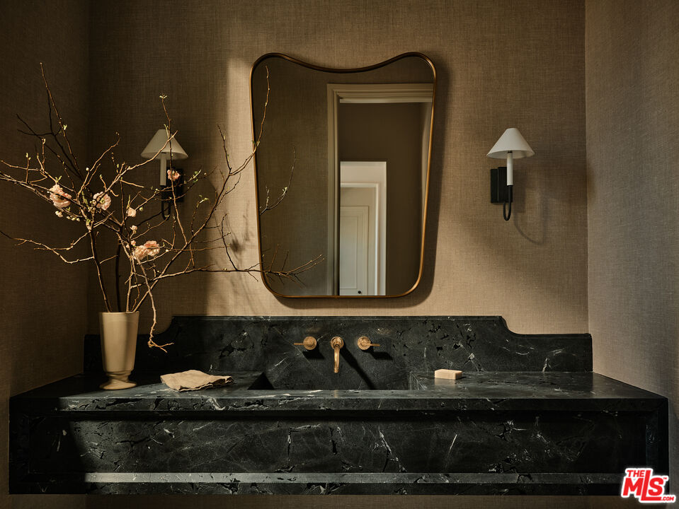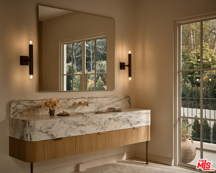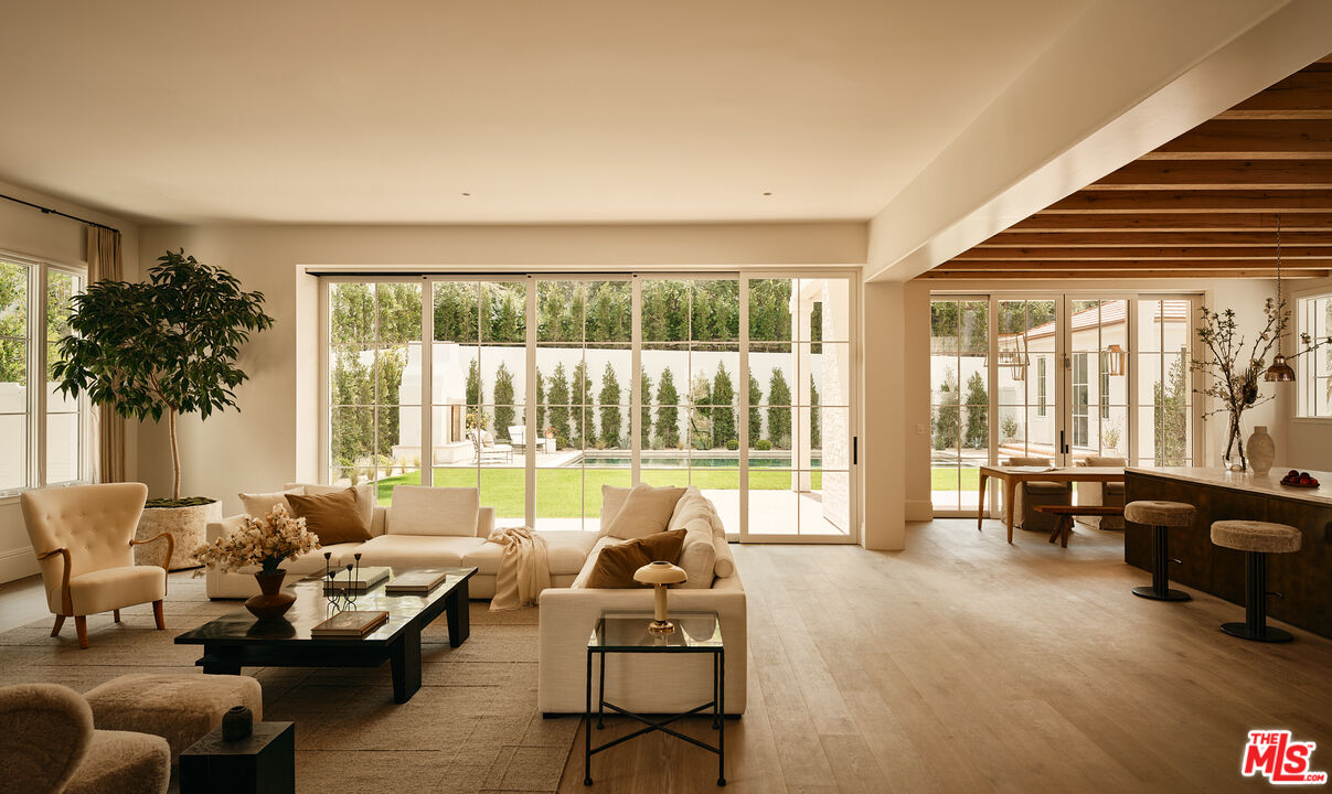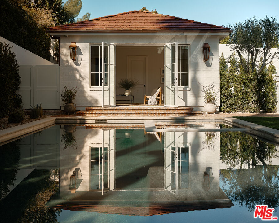 Built with meticulous craftsmanship by acclaimed development firm MODE Management, renowned for their attention to the highest quality construction. Visionary design by award-winning Christina Cole Studio, this Contemporary French chateau embodies an elegant and sophisticated lifestyle. You get a prime location on coveted Woodvale Road, perched atop a secure private knoll in Encino's Royal Oaks. Close to everything and everywhere. The interior spaces feature high ceilings, vintage lighting, and natural materials throughout, carefully designed to create an atmosphere of warmth and sophistication. Every countertop and bathroom throughout the home features unique, exotic stones with remarkable textures, adding to the feeling of opulence. The open-concept layout connects the living, dining, and kitchen areas. In the family room, La Cantina sliding doors open onto outdoor patios, where the fully equipped summer kitchen and lap pool with jacuzzi invite the beauty of the surrounding landscape indoors. The gourmet kitchen, consisting of top-of-the-line appliances and custom cabinetry, inspires culinary creativity. The separate prep kitchen with butcher block countertops offers even more functionality. In the main residence, there are 6 luxurious bedrooms and 8 bathrooms, along with a one-bedroom, full-bathroom ADU guest house with its own kitchen. The primary suite boasts a spa-like ensuite bathroom, complete with a soaking tub, dual bathrooms, and two spacious walk-in showers and closets. The lower level, with amazing natural light and an outdoor patio, is perfect for kids of all ages, as well as great for entertaining. The bar, the movie theater, and the gym with infrared sauna offer every luxury amenity you can imagine. A Control4 smart home system ensures convenient contemporary living.