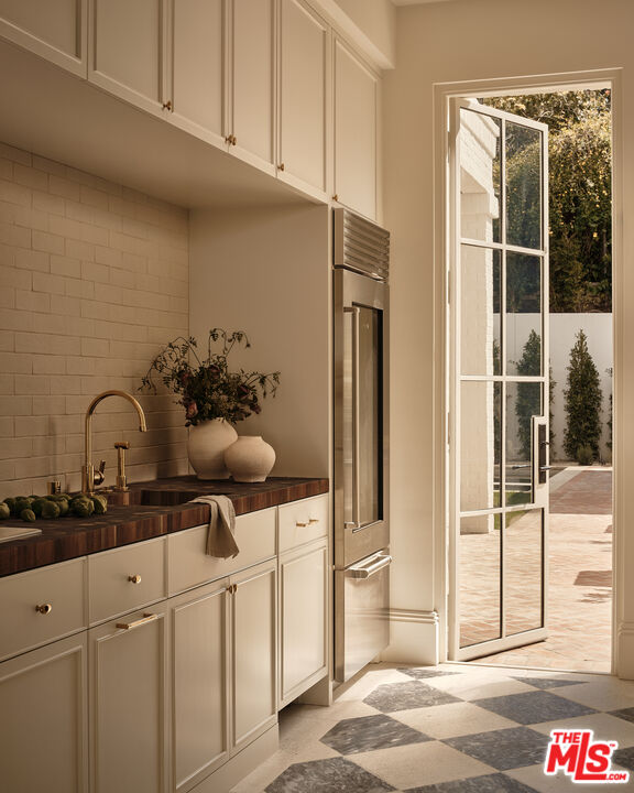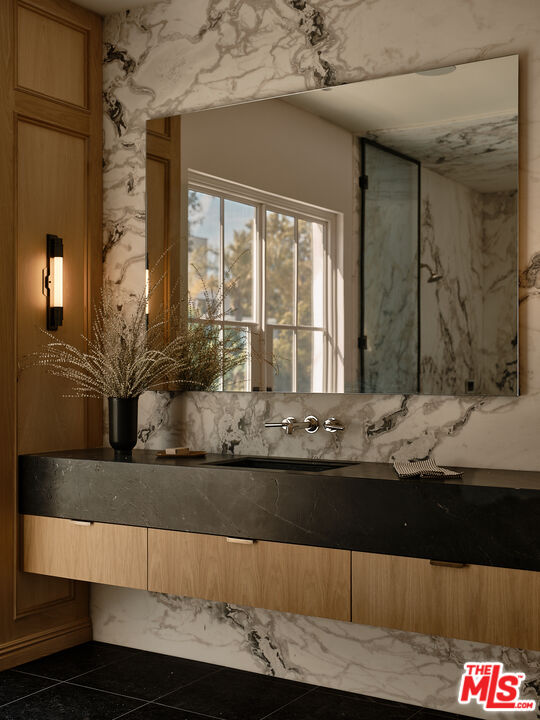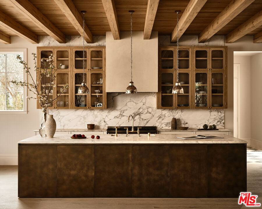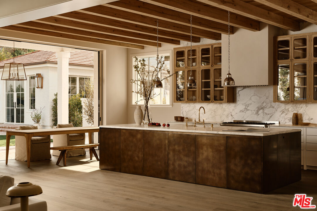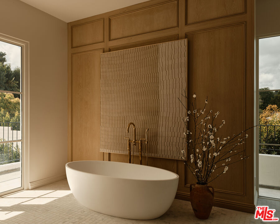 Built with meticulous craftsmanship by acclaimed development firm MODE Management, renowned for their attention to the highest quality construction. Visionary design by award-winning Christina Cole Studio, this Contemporary French chateau embodies an elegant and sophisticated lifestyle. You get a prime location on coveted Woodvale Road, perched atop a secure private knoll in Encino's Royal Oaks. Close to everything and everywhere. The interior spaces feature high ceilings, vintage lighting, and natural materials throughout, carefully designed to create an atmosphere of warmth and sophistication. Every countertop and bathroom throughout the home features unique, exotic stones with remarkable textures, adding to the feeling of opulence. The open-concept layout connects the living, dining, and kitchen areas. In the family room, La Cantina sliding doors open onto outdoor patios, where the fully equipped summer kitchen and lap pool with jacuzzi invite the beauty of the surrounding landscape indoors. The gourmet kitchen, consisting of top-of-the-line appliances and custom cabinetry, inspires culinary creativity. The separate prep kitchen with butcher block countertops offers even more functionality. In the main residence, there are 6 luxurious bedrooms and 8 bathrooms, along with a one-bedroom, full-bathroom ADU guest house with its own kitchen. The primary suite boasts a spa-like ensuite bathroom, complete with a soaking tub, dual bathrooms, and two spacious walk-in showers and closets. The lower level, with amazing natural light and an outdoor patio, is perfect for kids of all ages, as well as great for entertaining. The bar, the movie theater, and the gym with infrared sauna offer every luxury amenity you can imagine. A Control4 smart home system ensures convenient contemporary living.