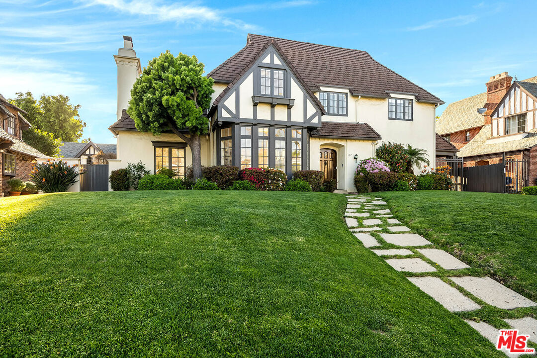 Location! Location! Location! Beautifully situated mid block, 157 North Las Palmas is a stunning English estate and is Hancock Park's finest! Enter into a two-story foyer with a flawless center-hall floor plan. To the south is a formal living room and reading nook with French doors opening to sparkling pool and lush gardens. To the right is palatial dinning room, with large kitchen, pantry and charming breakfast room. To the north is a paneled library, office/maids/gym and back stairs with access to side covered car porte and door. Upstairs has a grand primary suite complete with NEW primary bathroom, closets and dressing room. Upstairs also has 3 other spacious bedrooms and 2 bathrooms. The three-car garage and tool room is separate from the house and is a rarity in todays world. 157 North Las Palmas has updated systems, updated pool system, updated foundation and 2 remodeled upstairs bathrooms! Las Palmas is an ELEGANT house!