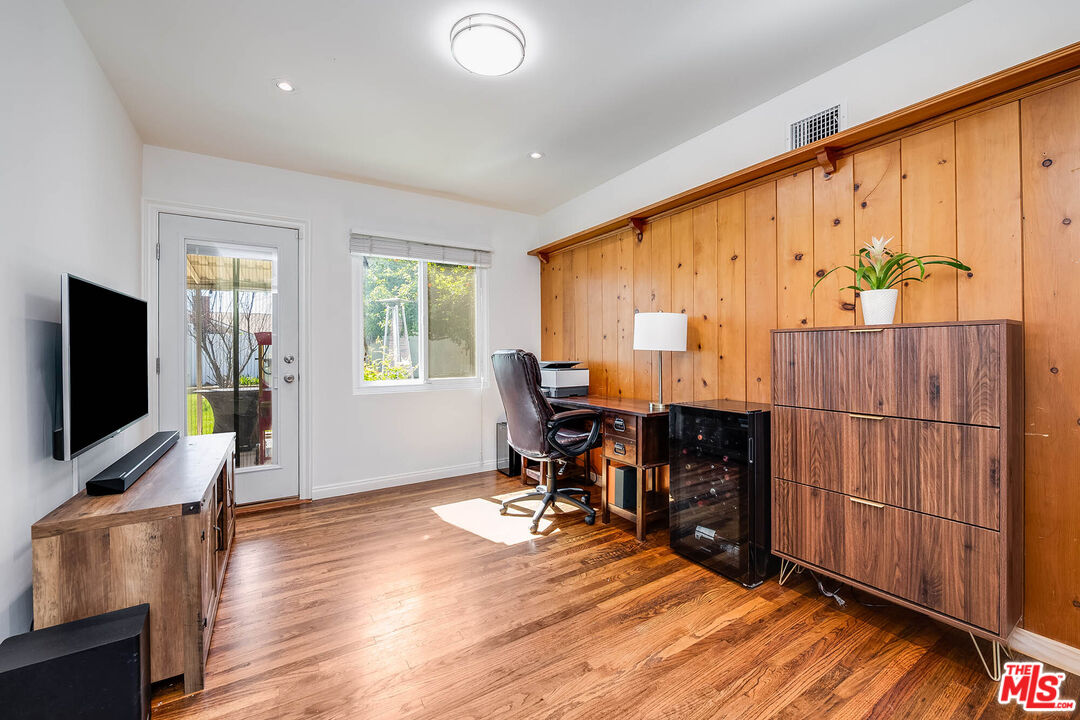 Beautifully maintained Granada Hills home is 4 bedrooms and 2 bathrooms. The updated kitchen showcases stainless steel appliances and modern finishes. Vaulted ceilings and a wood-burning fireplace create a welcoming focal point in the spacious living room, while the versatile fourth bedroom can also function as a home office, den, or playroom. The expansive backyard featuring a lush grassy lawn and an abundance of mature fruit trees, an ideal setting for entertaining, outdoor play, or simply relaxing in your own private retreat. Conveniently located with easy access to freeways, restaurants, and shopping, this home offers both comfort and everyday convenience.