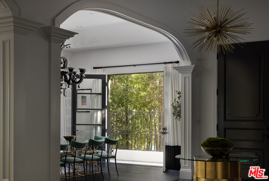 A Beverly Hills Masterpiece, Steps from Sunset... Discreetly positioned moments from the Beverly Hills Hotel, this Contemporary Mediterranean estate offers a rare convergence of professional design and effortless livability. Preston Lee's interior vision is realized throughout furniture and art by Jonathan Adler, Slim Aarons, and Fornasetti lending each room a collected, timeless character that photographs cannot fully capture. The open floor plan unfolds beneath soaring ceilings with recessed lighting, rich hardwood floors, and custom crown moldings. A dramatic black-and-white marble entry sets the tone before giving way to formal living and dining rooms sized for seated gatherings of any scale. The entertainer's family room flows naturally into a chef's kitchen anchored by an oversized center island the kind of layout where guests migrate effortlessly from cocktails to dinner without the party ever losing its momentum. French doors extend the entertaining footprint outdoors to a private patio with retractable awning, pool and waterfall, built-in BBQ, and outdoor fireplace. Whole-home surround sound covers every zone upstairs, downstairs, inside and out so the atmosphere travels with your guests wherever the evening takes them. Five bedrooms and six baths are distributed across two levels. Upstairs, the primary suite is a destination unto itself: a fireplace, generous walk-in closets, double vanities, sunken soaking tub, and an oversized shower. Three additional en-suite bedrooms with private balconies mean out-of-town guests arrive to hotel-level privacy and comfort. A dedicated gym and dance studio complete the upper floor equally useful the morning after a late night as it is for a more intentional occasion. Further amenities include a basketball court, trampoline area, three interior fireplaces, and a three-car garage. Whether you're hosting an intimate dinner, a poolside gathering, or a full weekend of guests, this home has the design, vibe and the pedigree to do it beautifully. Some homes must be experienced to be understood. This is one of them.