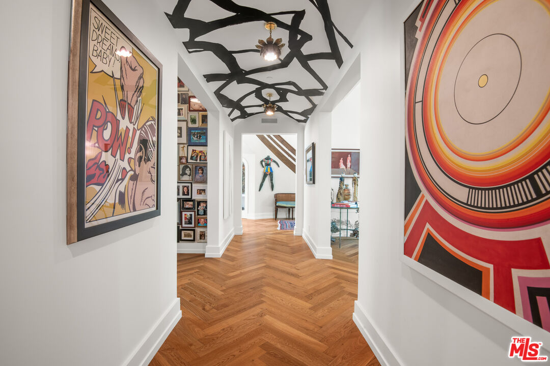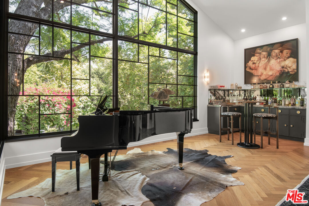 Introducing The Eden. This extraordinary, one-of-a-kind estate where refined elegance, artistic vision, and complete privacy converge in the heart of Encino's coveted Royal Oaks. Privately gated and set well back from the street, this rare 2.6+ acre sanctuary unfolds as a lush botanical retreat, surrounded by mature trees and impeccably curated gardens that create a serene, resort-like atmosphere. The residence is a masterful fusion of contemporary design and bespoke character, highlighted by striking custom Mondrian-inspired windows that bathe the interiors in natural light while framing sweeping views of the verdant, park-like grounds. Vintage 1940s Italian chandeliers cast a warm glow over the grand great room, anchored by a dramatic custom Ceppo marble fireplace mantle that exudes timeless sophistication. Designed for both everyday living and elevated entertaining, the chef's kitchen is a work of art featuring Poggenpohl custom cabinetry, a professional refrigerator and freezer, an 8-burner range with griddle, three ovens, a sculptural hammered-steel range hood, an expansive center island, and sumptuous leathered quartzite countertops. A museum-quality, fully enclosed sunroom offers the perfect setting for year-round al fresco dining. The primary suite is a private haven of understated luxury, complete with a dedicated sitting area, dual walk-in closets, and spa-like dual bathrooms. Her retreat showcases rose quartz countertops and vintage brass lighting, while his sanctuary offers an oversized steam shower and soaking tub for ultimate relaxation. Outdoors, the estate truly shines as an entertainer's paradise. The expansive grounds feature a resort-style swimmer's pool and spa, private hiking trails, a grove of mature fruit trees, a fully enclosed dog run, and an impressive cabana equipped with a BBQ kitchen, wet bar, fireplace, and outdoor shower perfect for hosting unforgettable gatherings. World-class amenities abound, including a secure safe room with ballistic door, state-of-the-art movie theater, fully equipped gym, pristine sauna and steam room, game room, 300-bottle wine storage, advanced security and sound systems, formal office, and a detached guest house with a kitchenette and a balcony overlooking a dramatic 100-foot rock-lined stream and water feature. Completing the property is a three-car garage with abundant storage and a workbench, along with extensive additional parking. Meticulously engineered with state-of-the-art retaining walls, drainage systems, and infrastructure, every element of The Eden reflects uncompromising attention to detail. More than a residence, this is a singular masterpiece testament to inspired design, exceptional craftsmanship, and a truly unparalleled lifestyle.