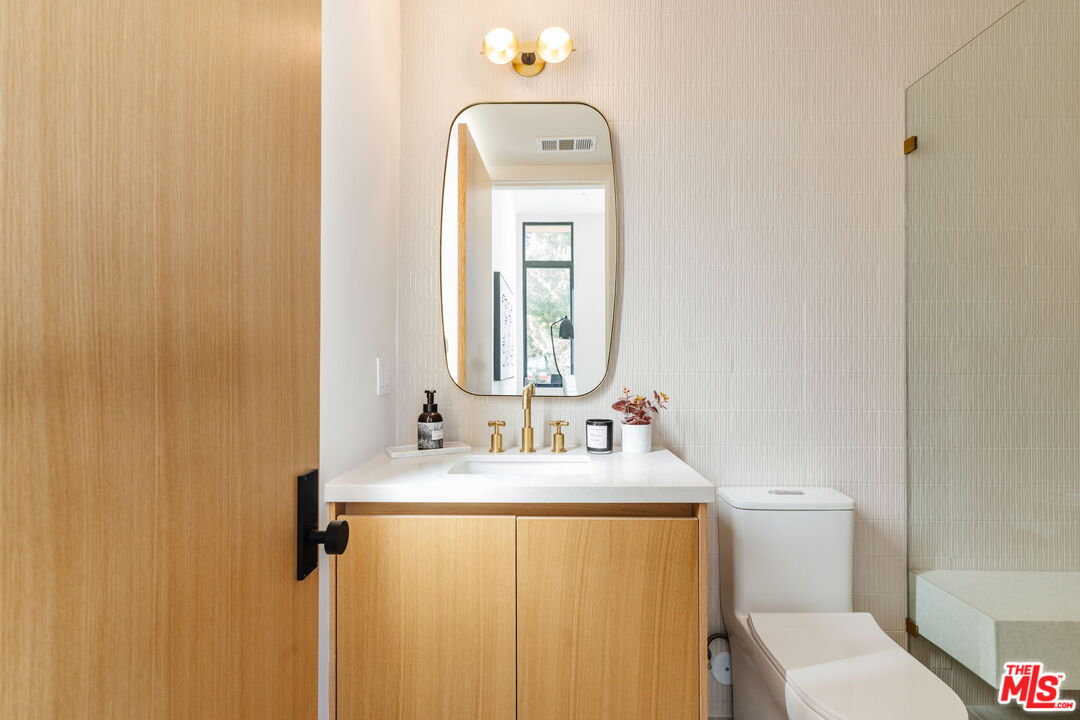 A sun-filled modern masterpiece designed for effortless entertaining and elevated everyday living. Spanning approximately 4,260 square feet, this exceptional home offers six bedrooms and six-and-a-half bathrooms with a thoughtfully designed, open layout ideal for both comfort and style. Skylights and expansive windows throughout flood the home with natural light, creating a bright, airy ambiance. A stunning formal dining room with large windows serves as a true showpiece perfect for hosting memorable gatherings while enjoying abundant daylight. The chef's kitchen is outfitted with top-of-the-line stainless steel appliances, custom white oak cabinetry, white oak flooring, a walk-in pantry, three sinks, two dishwashers, and a full-size refrigerator and freezer. Large sliding doors from the kitchen and breakfast area open to the backyard, while expansive sliding pocket doors off the living room create seamless indoor-outdoor flow, ideal for entertaining and relaxed California living. A striking wine display adds a refined architectural focal point. The versatile floor plan includes four bedrooms upstairs and two downstairs, along with a dedicated office. The primary suite is a luxurious retreat featuring a spacious walk-in closet, a spa-inspired bathroom with dual sinks, dual shower heads, a soaking tub, and access to a generous private balcony. An additional front-facing bedroom also enjoys its own expansive balcony. Crowning the home is an impressive rooftop deck offering breathtaking 360-degree views of the mountains, Century City skyline, and the surrounding cityscape an exceptional space for entertaining or unwinding above it all. Additional highlights include a gated front entry and custom cabinetry throughout. Ideally located in a highly central Los Angeles setting, the property offers convenient access to Beverly Hills, Century City, Culver City, and beyond, as well as nearby places of worship, dining, and premier retail. A light-filled, spacious modern home designed for elevated living and unforgettable entertaining.