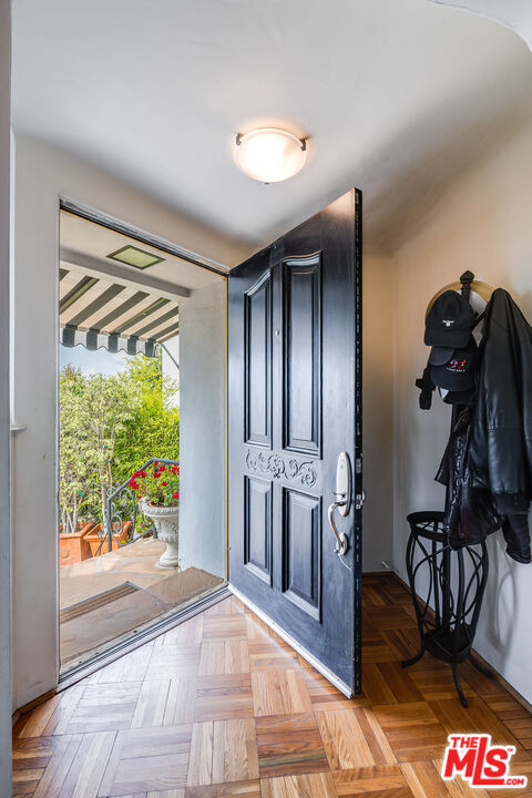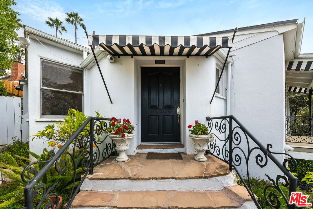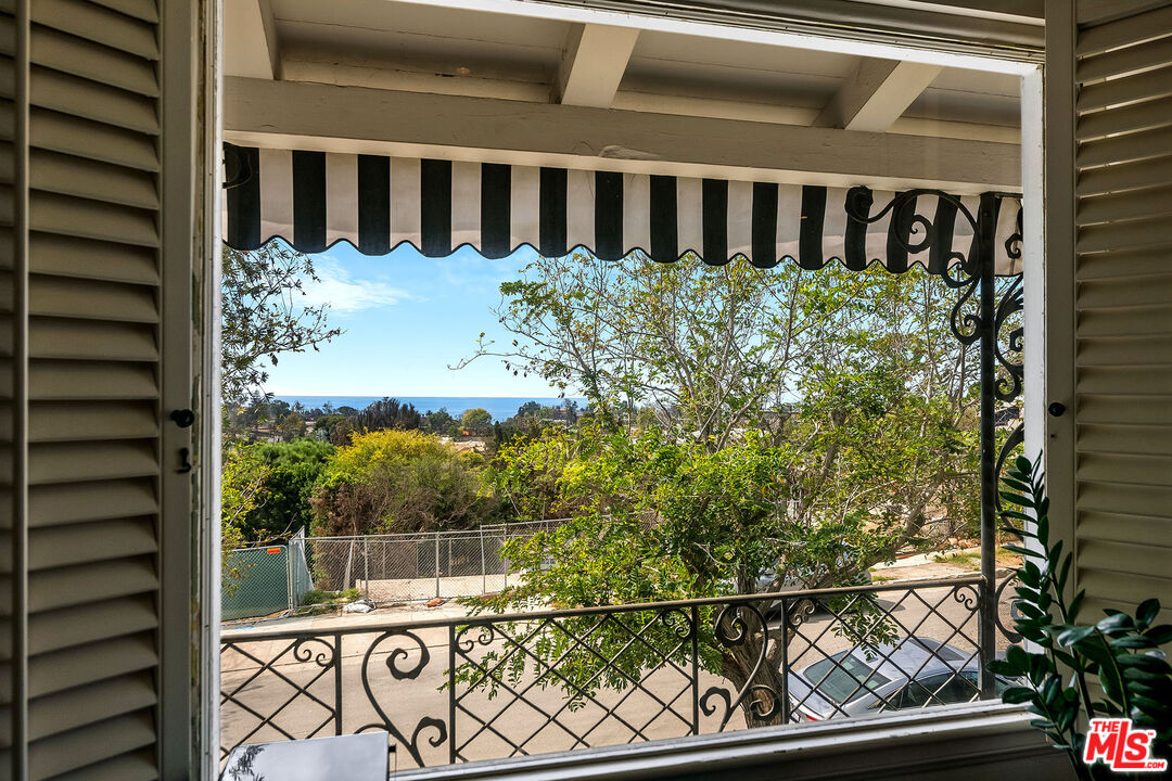 Enjoy beautiful ocean views from this light-filled Pacific Palisades residence that blends warmth, charm, and coastal tranquility. With just under 2,000 sq.ft. of living space, the home sits on a beautifully landscaped, elevated lot that enhances its privacy and natural light. At the heart of the home is an enchanting central courtyard, accessible from most rooms, creating a seamless indoor-outdoor flow perfect for relaxed California living. The main level features a spacious living room, a formal dining room, and a well-appointed kitchen with a breakfast area. The primary suite offers its own private patio with a soothing fountain and a remodeled en-suite bath. Upstairs are two additional bedrooms, including one currently used as an office with a Juliette balcony and ocean view, along with a bonus room and two additional bathrooms. Other highlights include a laundry room, an oversized two-car garage, and a new roof (done in 2022). A rare opportunity to own a warm and tranquil home, combining coastal charm with timeless comfort.