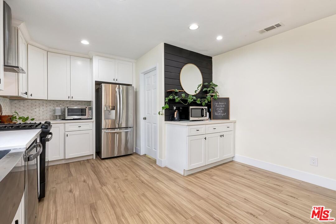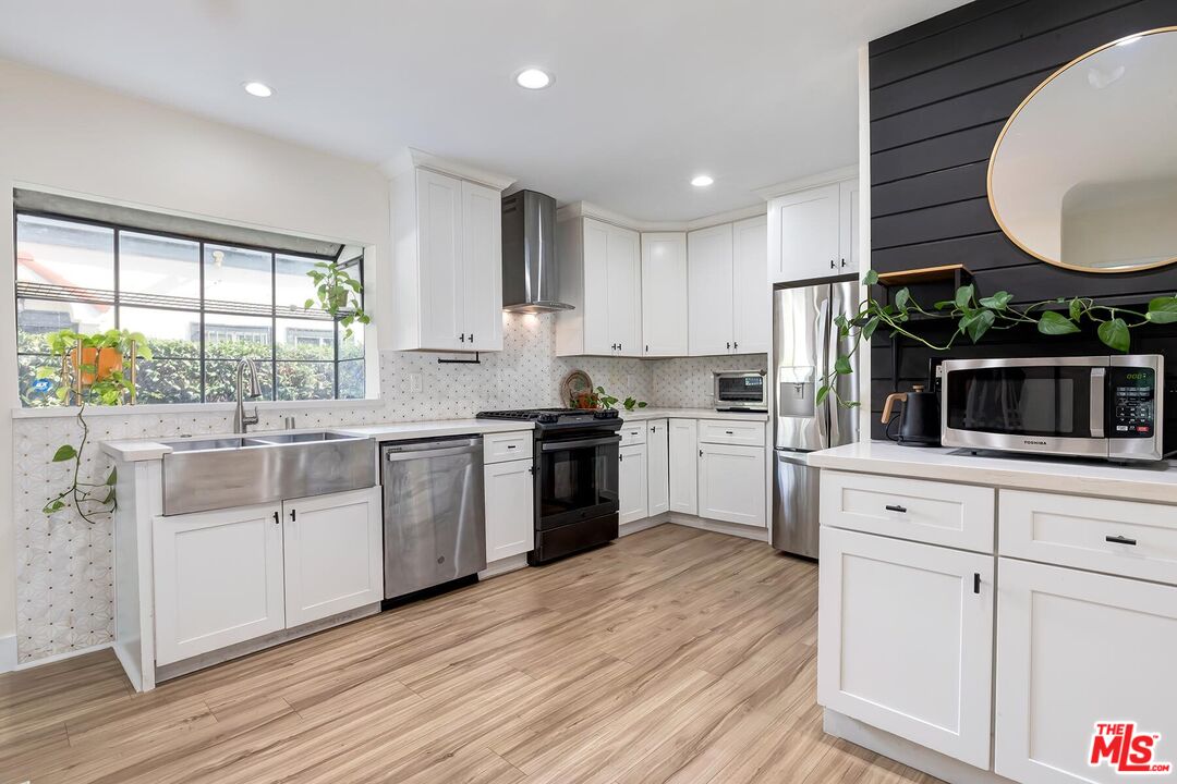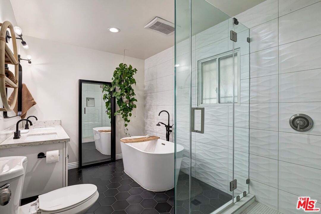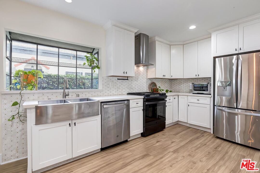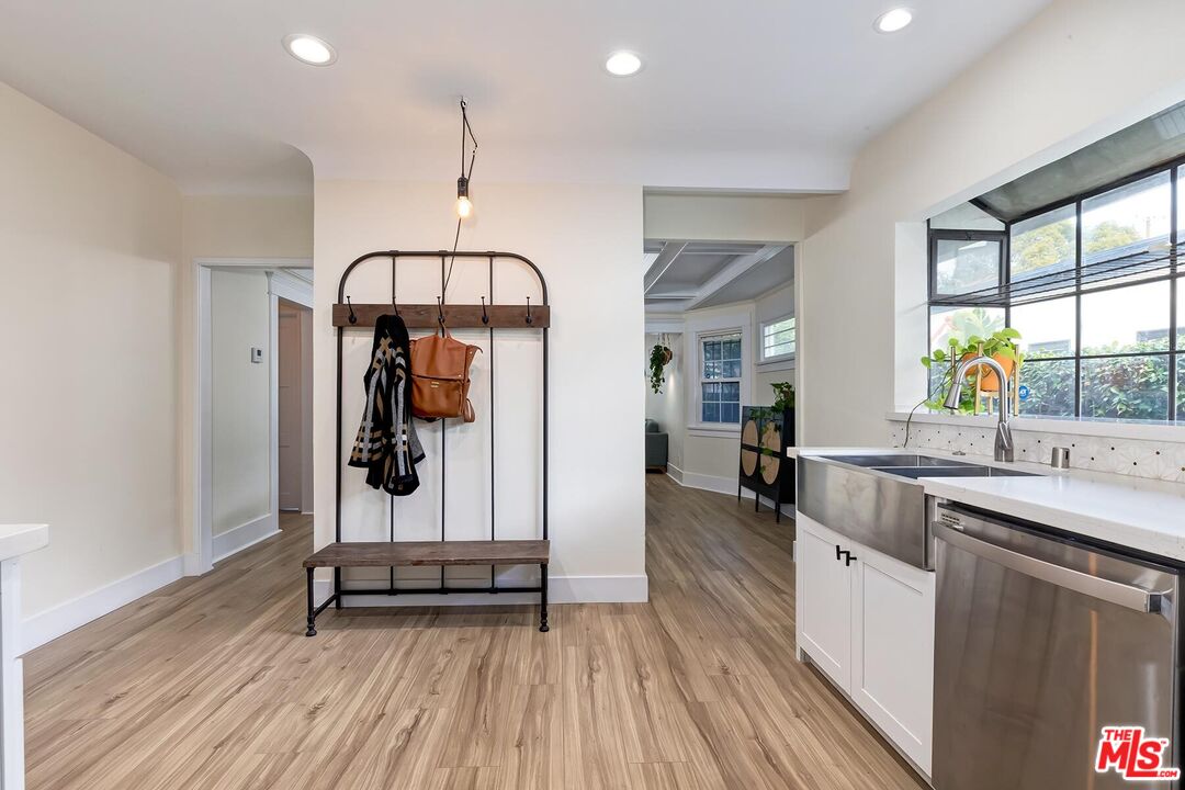 Beautifully Remodeled 1921 Craftsman on a Quiet, Tree-Lined Street! This charming home welcomes you with a classic covered wood porch and a gated front lawn, setting the tone for its warm curb appeal. Inside, the bright and airy living room features engineered hardwood floors, crown molding, recessed lighting, and large picture windows framing views of the peaceful neighborhood. The spacious dining room showcases a striking coffered ceiling, perfect for entertaining. The updated gourmet kitchen boasts new shaker cabinets, quartz countertops, and stainless-steel appliances. The stunning primary bathroom impresses with hexagon tile floors, floor-to-ceiling tilework, an oversized soaking tub, and a separate tiled shower. The stylish guest bathroom features marbled quartz counters and vibrant floor-to-ceiling sun-splash tile. The expansive backyard offers multiple spaces to relax and play, including a covered tile patio, grassy yard, brick barbecue, and a trampoline. A detached garage provides excellent potential for a home office, studio, or future ADU. Fantastic central location a mile west of USC, Exposition Park, the LA Coliseum, the Natural History Museum, the California Science Center, and the brand-new Lucas Museum of Narrative Art!
