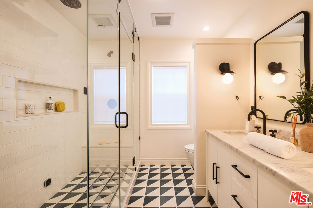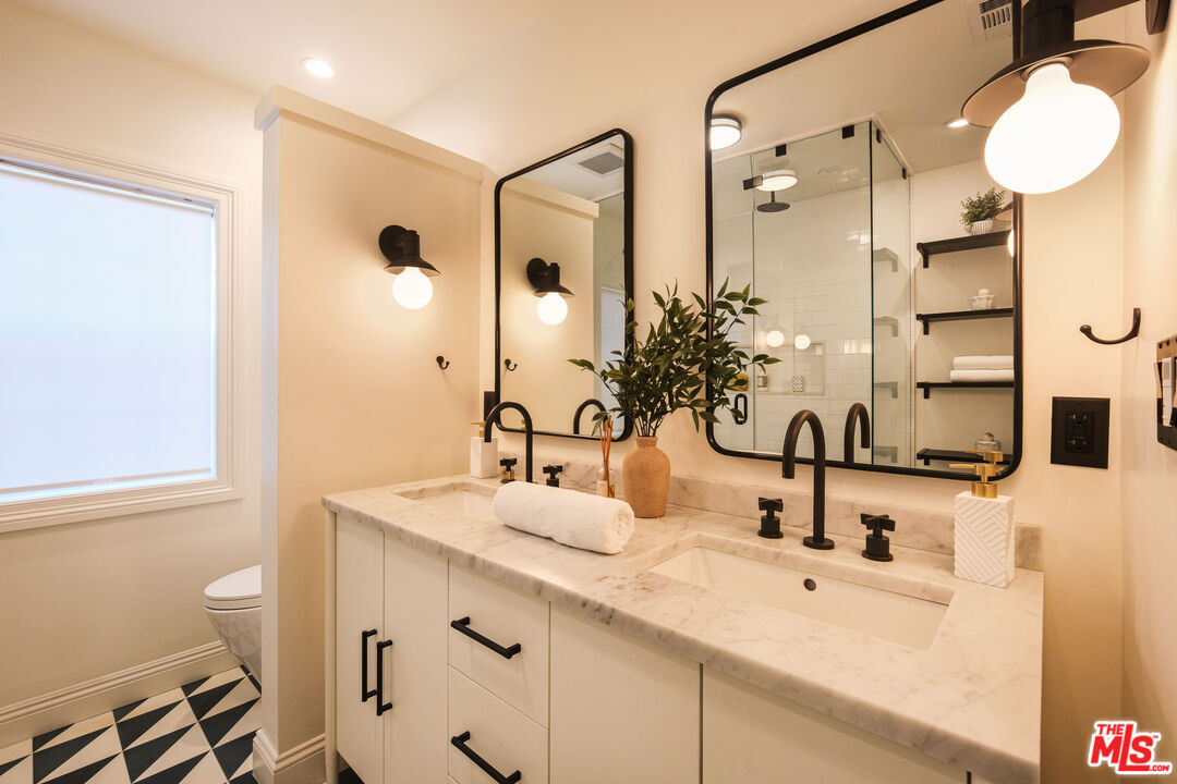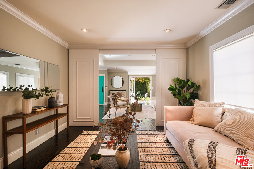 This beautiful light and bright remodeled 1920's bungalow is hedged and gated on a tree-lined, quiet street conveniently located only blocks away from West Hollywood and the Hollywood Hills in the Sunset Square (HPOZ) area of Los Angeles. This special dream home has all the modern updates while maintaining significant character often lost when a home is remodeled. Features include an open floor plan conducive for entertaining, or just relaxing both inside the home or in the private front and rear yards. Additionally, it boasts a modern well-appointed kitchen with stainless steel appliances including Wolf stove/oven, three bedrooms (2 with walk-in closets) and one has the versatility as either an open den/media room or as a 3rd bedroom. The large primary suite at the back of the home with French doors leads out to a private Trex deck featuring a pergola with remote control to open and close to let light through and a private grassy yard with room for pool. The remodeled bathrooms are comprised of the primary with double sinks with a large fully equipped steam shower and guest bath has tub and rain shower and there is a separate laundry room inside the home. Parking for many cars in the driveway on the property. Close enough to enjoy the nearby shops (Bristol Farms), restaurants (Horses, El Compadre, Griddle Cafe), parks (Wattles Park, Plummer Park), hiking (Runyon Canyon) and nightlife, yet still quiet.