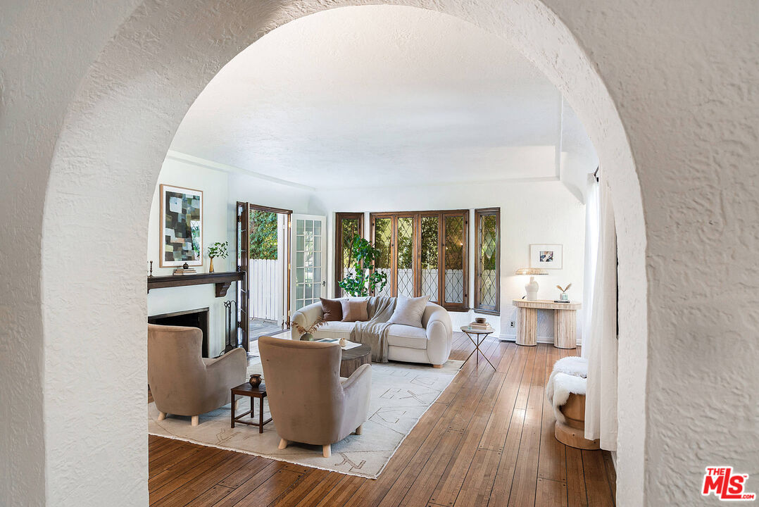 Gorgeous 1924 Tudor on tree-lined Orange Grove Ave in coveted Sunset Square. Preserved by the local HPOZ, the neighborhood is comprised of historical and architecturally significant homes brimming with character. First time on the market in 30+ years, this cherished home is full of original details. Hardwood floors, crown molding, coved archways and leaded-glass windows are found throughout. Two stories, 2900 sq feet with 4 bedrooms + 3 bathrooms on a flat 7,500 sq ft lot. On the first floor is a spacious living room with wood-burning fireplace (considered decorative), a gracious formal dining room and a cozy breakfast room. Charming kitchen w/butlers pantry and laundry room. A bedroom and full bathroom complete the first level. Upstairs enter the stunning primary suite through gorgeous wood doors. The expansive room feels like a castle with cathedral beamed ceilings, stained glass windows, sconce lighting, a Juliette balcony and built ins. Two separate closets plus a period-tiled primary bathroom. Two additional large and sunny bedrooms share a hallway bath. Homeowners have done many upgrades over the years, including bolted foundation, 200-amp electric panel, copper plumbing, dual-zone HVAC and the sewer was replaced (on the property) with ABS plastic. Drought-tolerant landscape in front and back blankets the sprawling and flat lot. 2-car garage with upper loft area has endless possibilities. Bring your imagination and add your personal touches to this beautiful canvas.