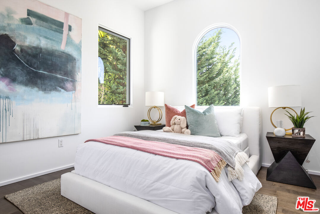 Nestled on a quiet cul-de-sac just minutes from the iconic Beverly Hills Hotel, this European-style contemporary offers sleek sophistication across four light-filled levels. With 4 bedrooms, 4.5 bathrooms, and 3,744 square feet of thoughtfully designed living space, the home seamlessly blends elegant form with everyday functionality. The main level features an open-concept floor plan with warm hardwood floors, recessed lighting, and walls of glass that frame serene treetop and canyon views. The expansive great room includes two sitting areas, a gas fireplace, and a chic dining area that flows effortlessly to a sun-drenched terrace perfect for indoor-outdoor entertaining. The sleek kitchen is equipped with stainless steel appliances, a large center island with bar seating, and ample natural light from oversized windows. Upstairs, the spacious primary suite is a tranquil retreat with a private balcony, fireplace, large walk-in closet, and spa-like bath. Two additional ensuite bedrooms complete the top floor. The lower level offers a private bedroom and bath, laundry area, and a stylish screening room perfect for movie nights or entertaining guests, all on the same floor. The level below includes storage closets and a spacious 3-car garage. Outdoors, the backyard offers a peaceful escape with a sparkling pool, spa, and cascading waterfall surrounded by lush greenery. Whether as a full-time residence, a pied-a-terre, or an investment with a strong rental history, this Beverly Hills gem offers elevated living in a coveted location near hiking trails, world-class shopping, and fine dining.
